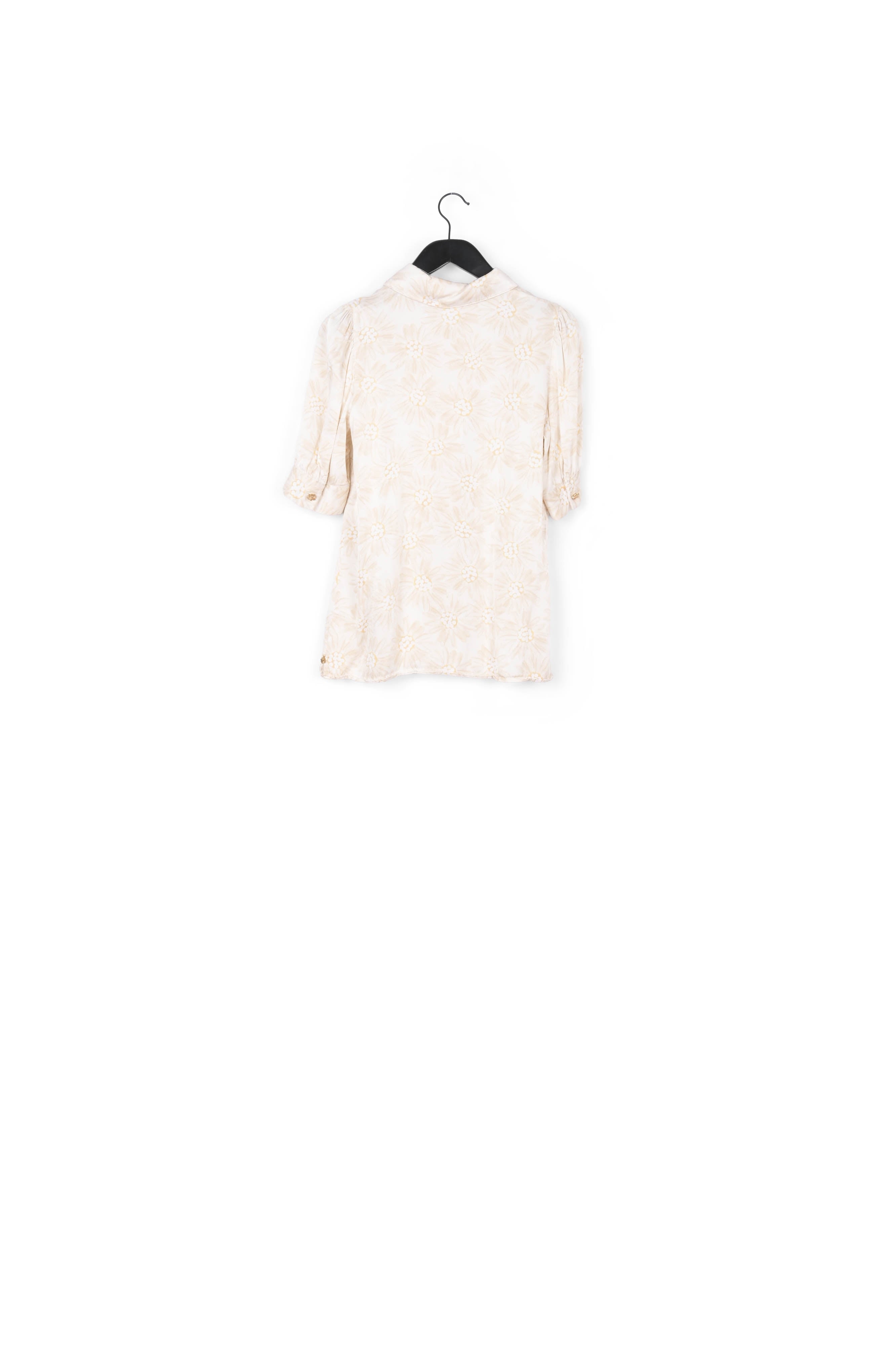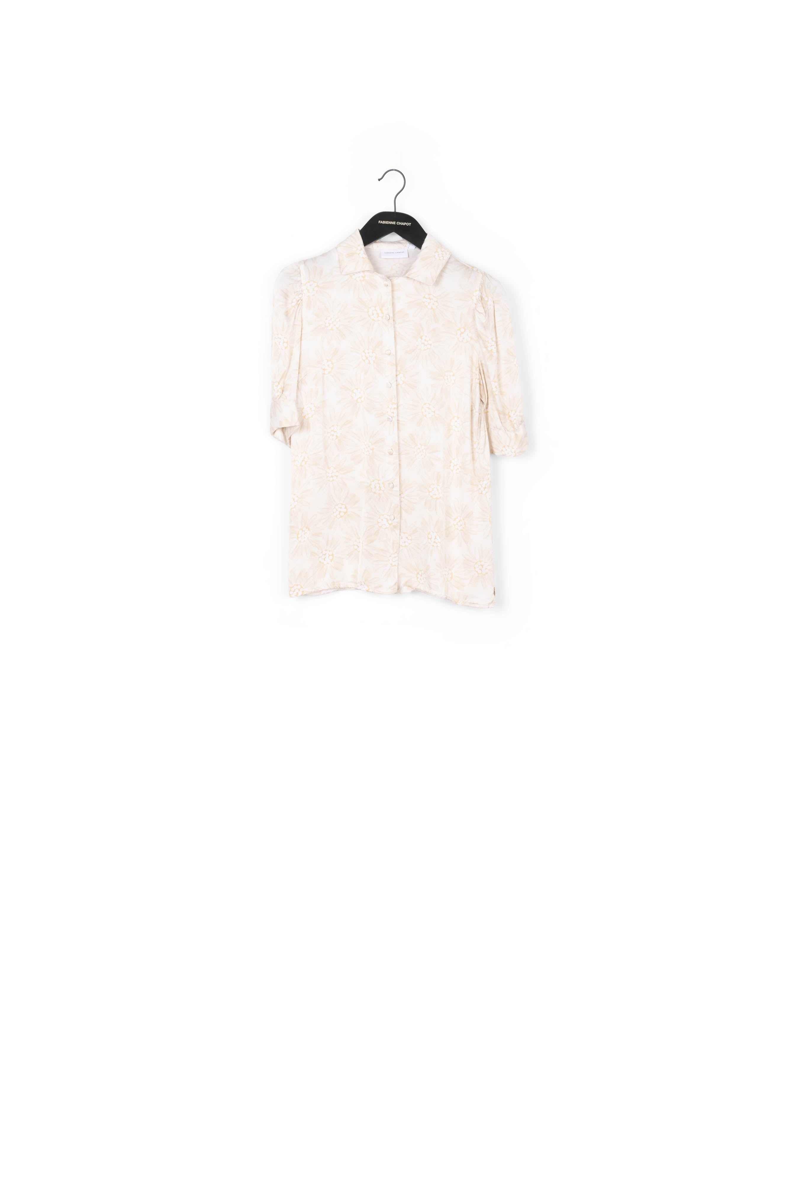 Blouse with classic collar, short puff sleeves and button closure with fabric buttons. Emma Cato Blouse is made of a luxurious satin viscose fabric.