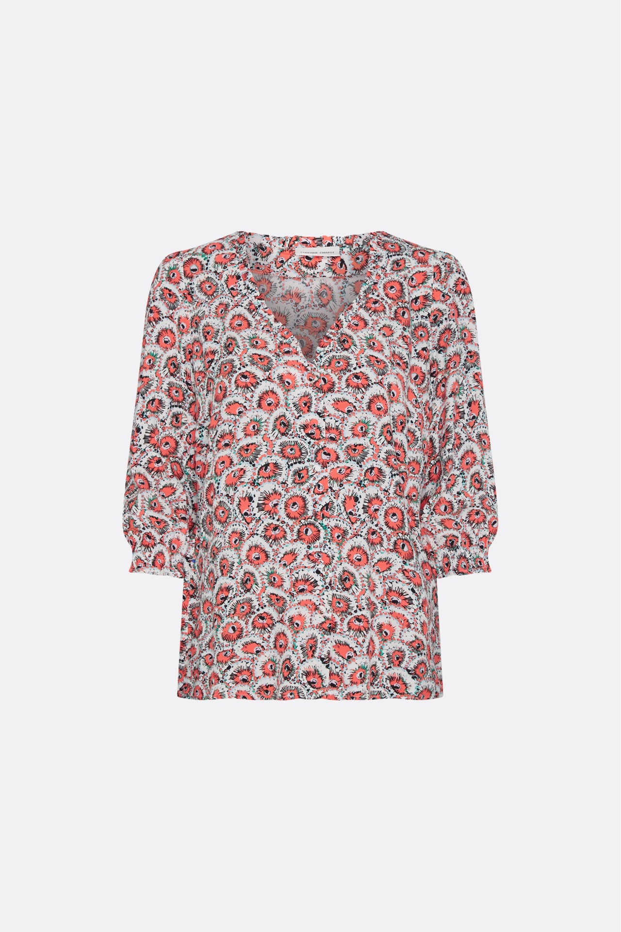 Blouse with button closure and three-quarter sleeves. Bay Blouse has ruffle details around the neck and elastic at the cuffs. This item is made of 100% Viscose (LENZINGâ„¢ ECOVEROâ„¢). LENZINGâ„¢ and ECOVEROâ„¢ are trademarks of Lenzing AG. -