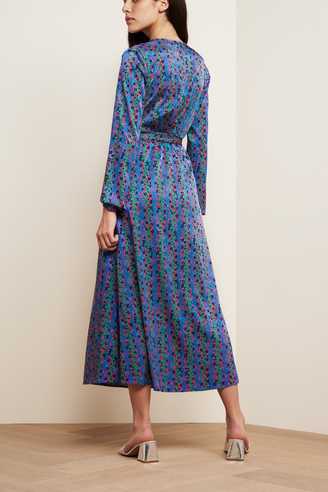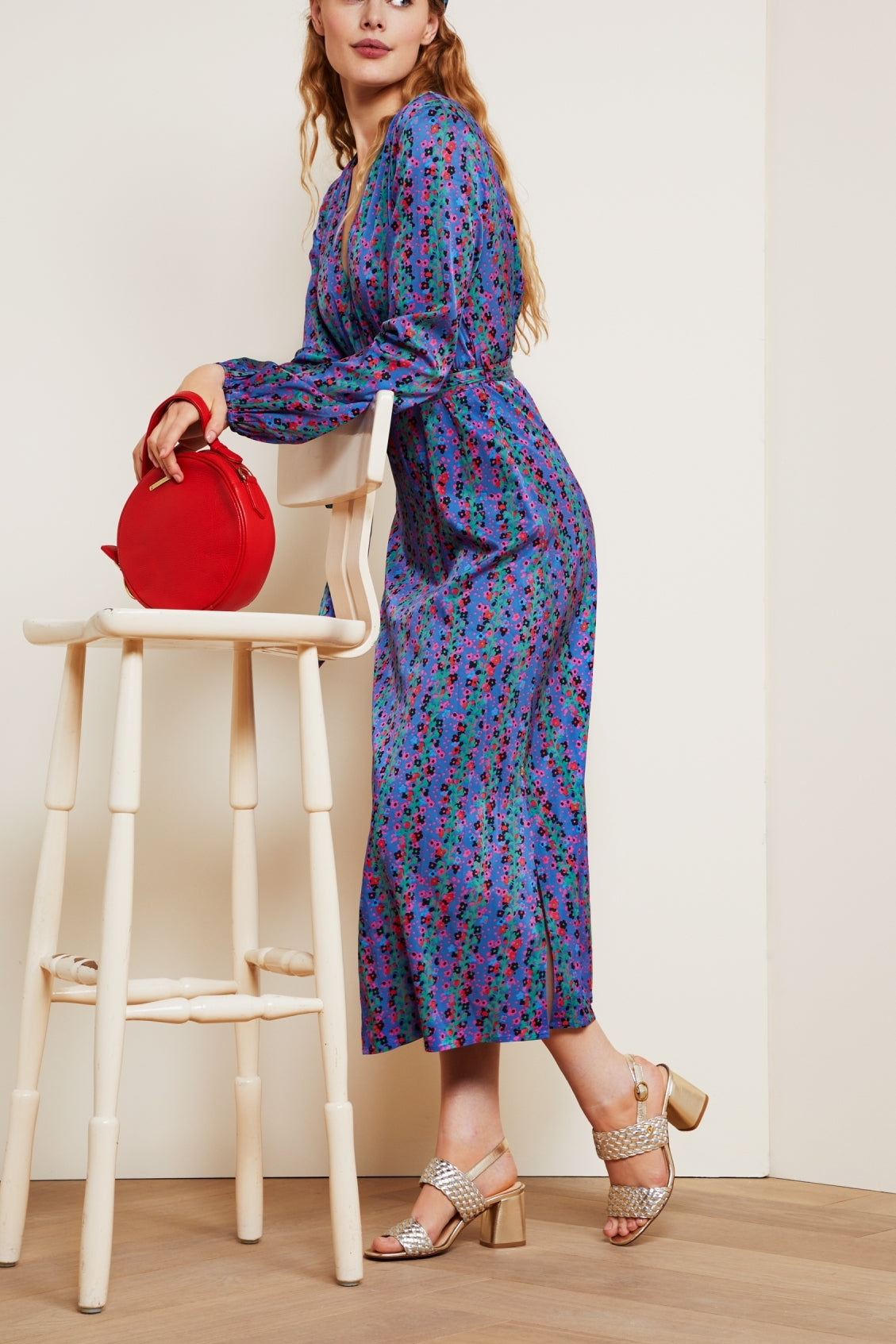 Midi dress with a V neck, waist belt, long sleeves and a button down closure to the waist. Isabel Lou Dress has loose fit on the top part of the dress and is made from luxurious viscose which makes the fabric breathable.