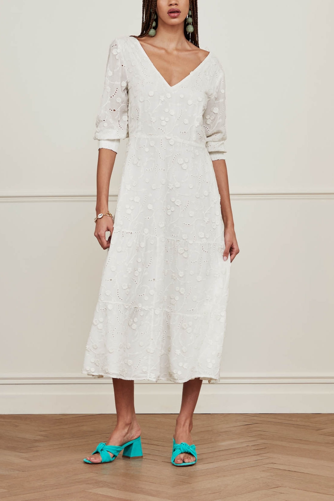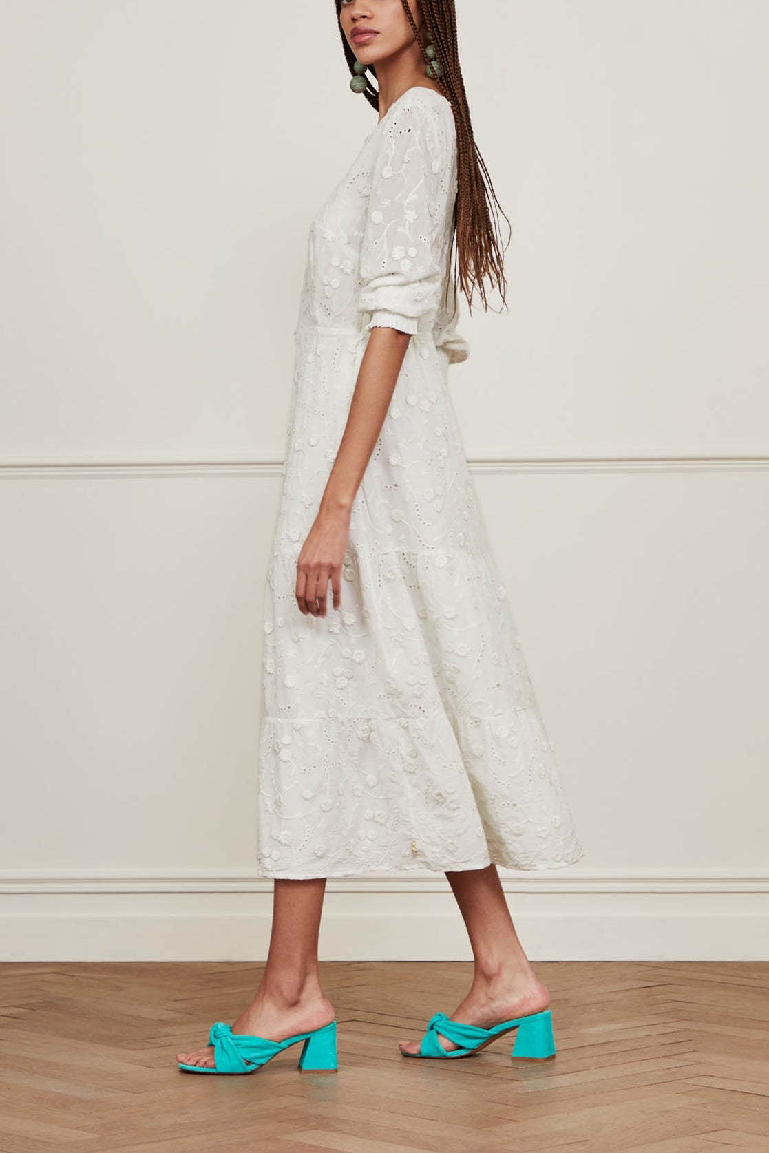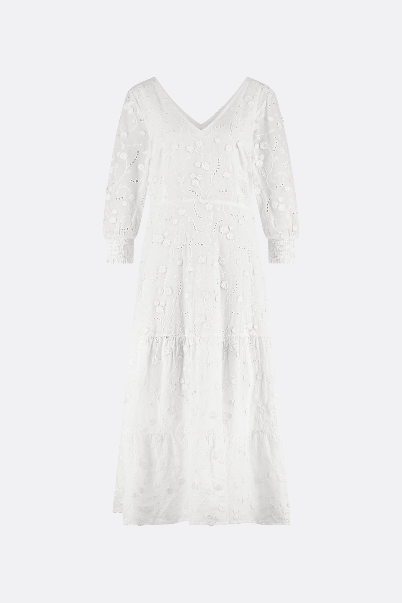 Midi dress with low V-neckline and long sleeves. Joni Midi Dress has a hidden zipper on the side and is made of a beautiful fabric. It is a 3D translation of our unique prints in a beautiful embroidery technique, which makes the flowers seem to grow out of the fabric. -