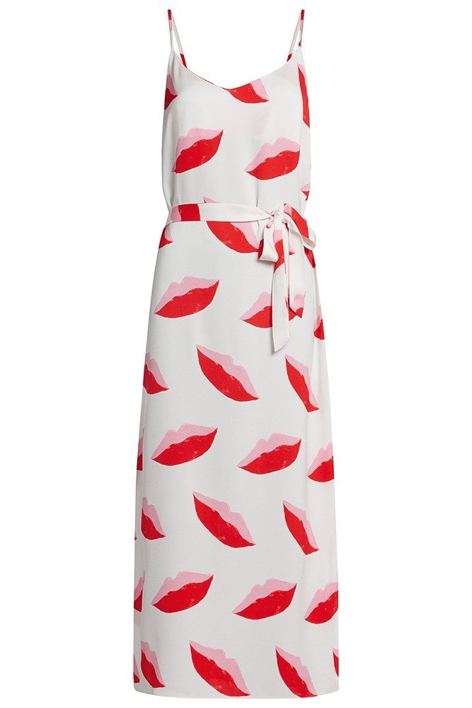 Flowing dress with a round neck, spaghetti straps and tie belt. Sun Set Dress has a split on both sides.