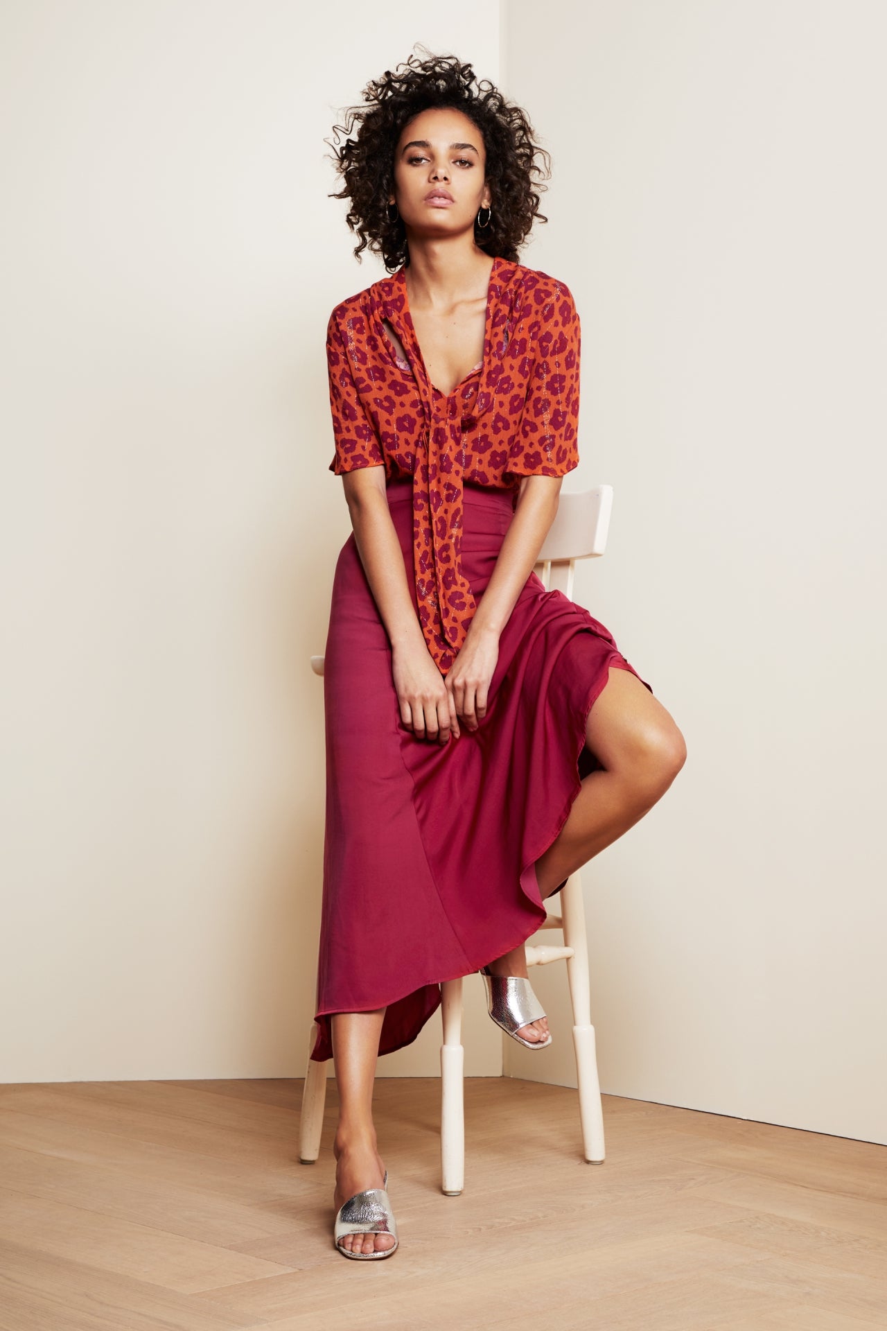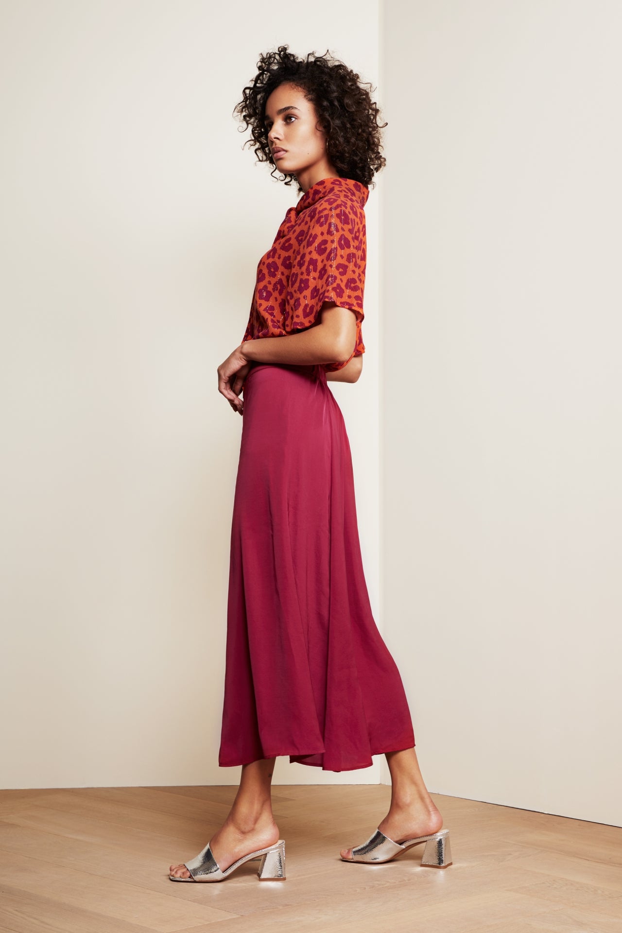 Flowing A line skirt with elastic waistband. Megan skirt is made of gerycled polyester. -