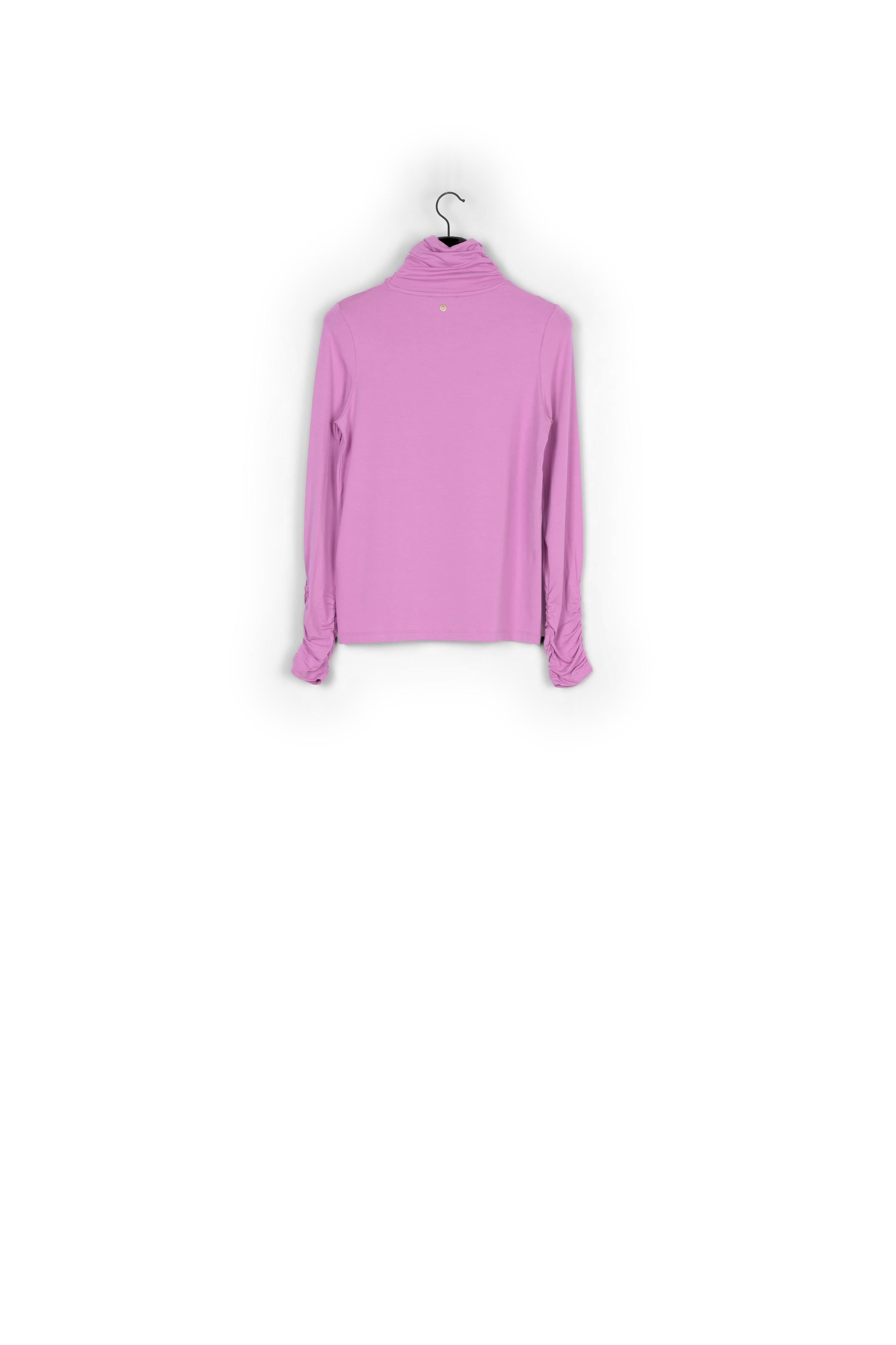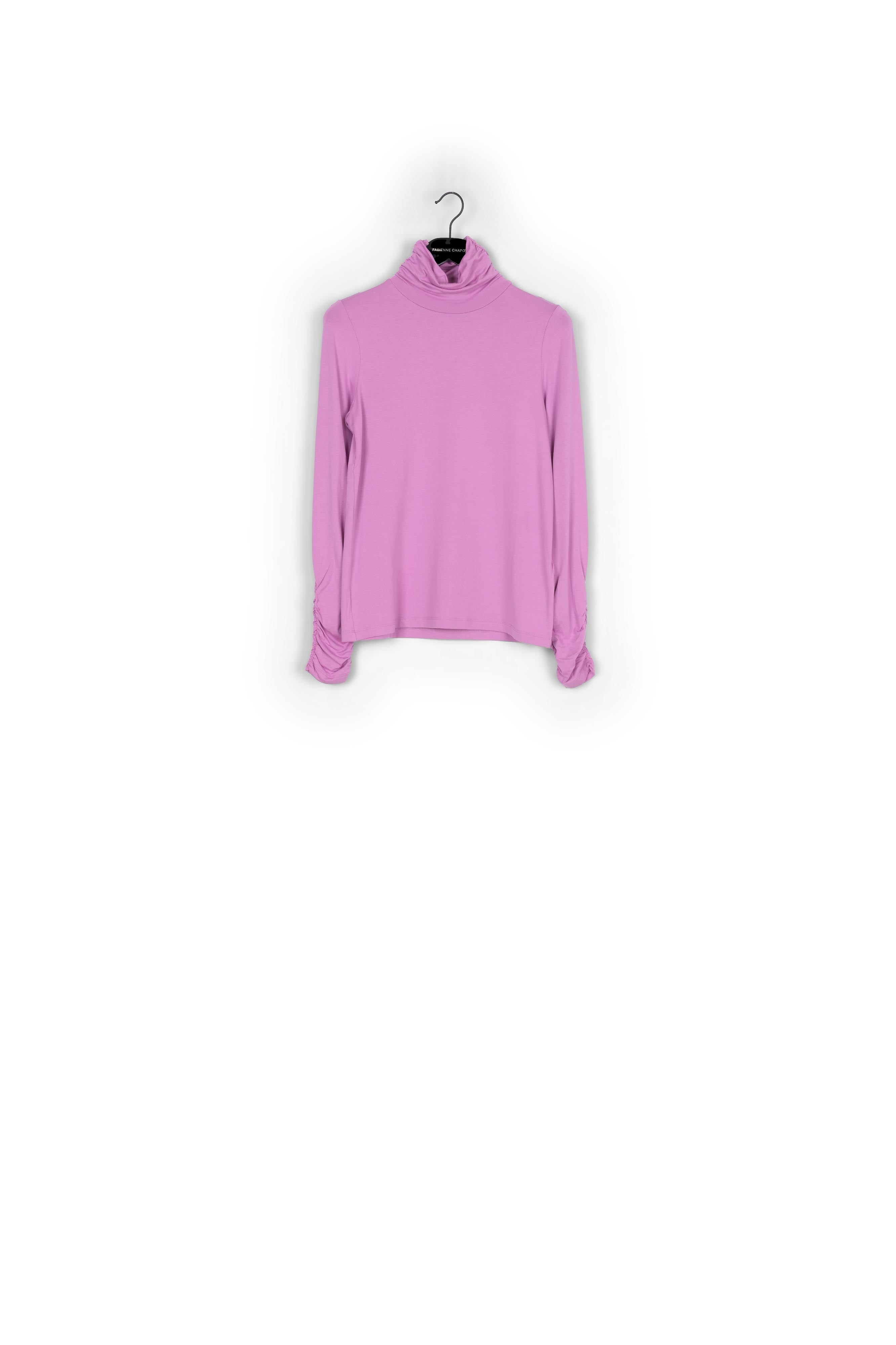 Long-sleeved top with a high turtleneck. Jill top has pleated details on the sleeves.