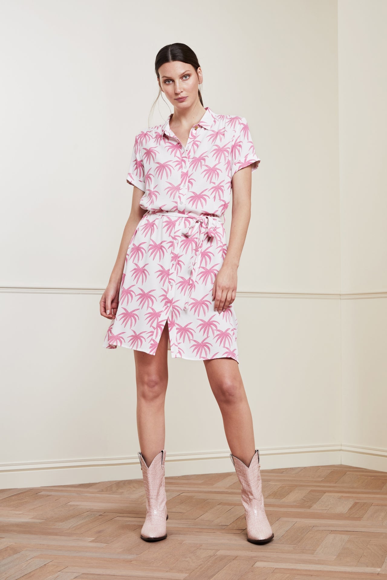 Oversized dress with tie belt, full length button closure and short turn-up sleeves. Boyfriend Dress has a gold-coloured button on the neck trim. This item is made of 53% Lenzing™ EcoVero™ Viscose: breezy, supple and conscious.