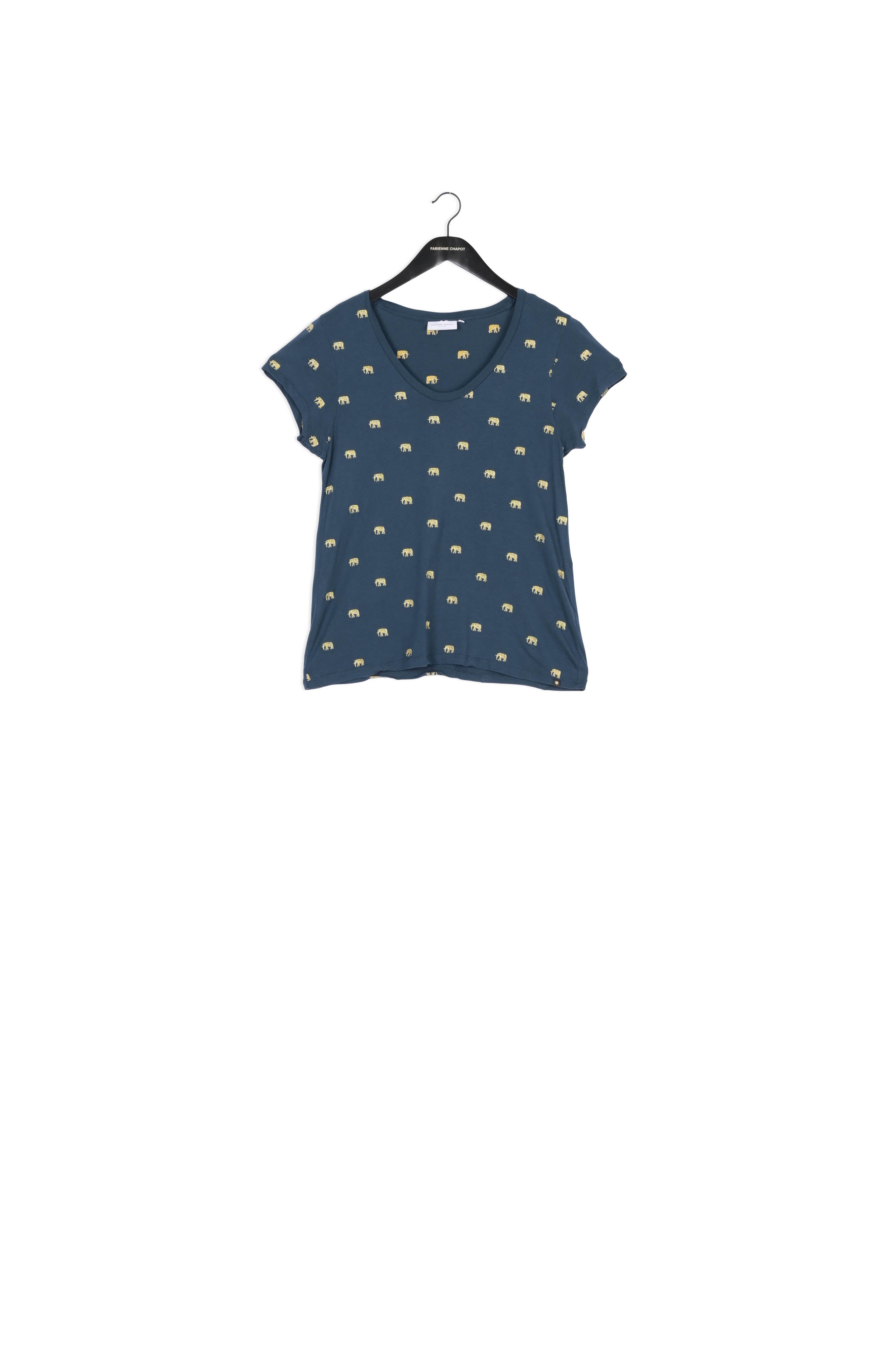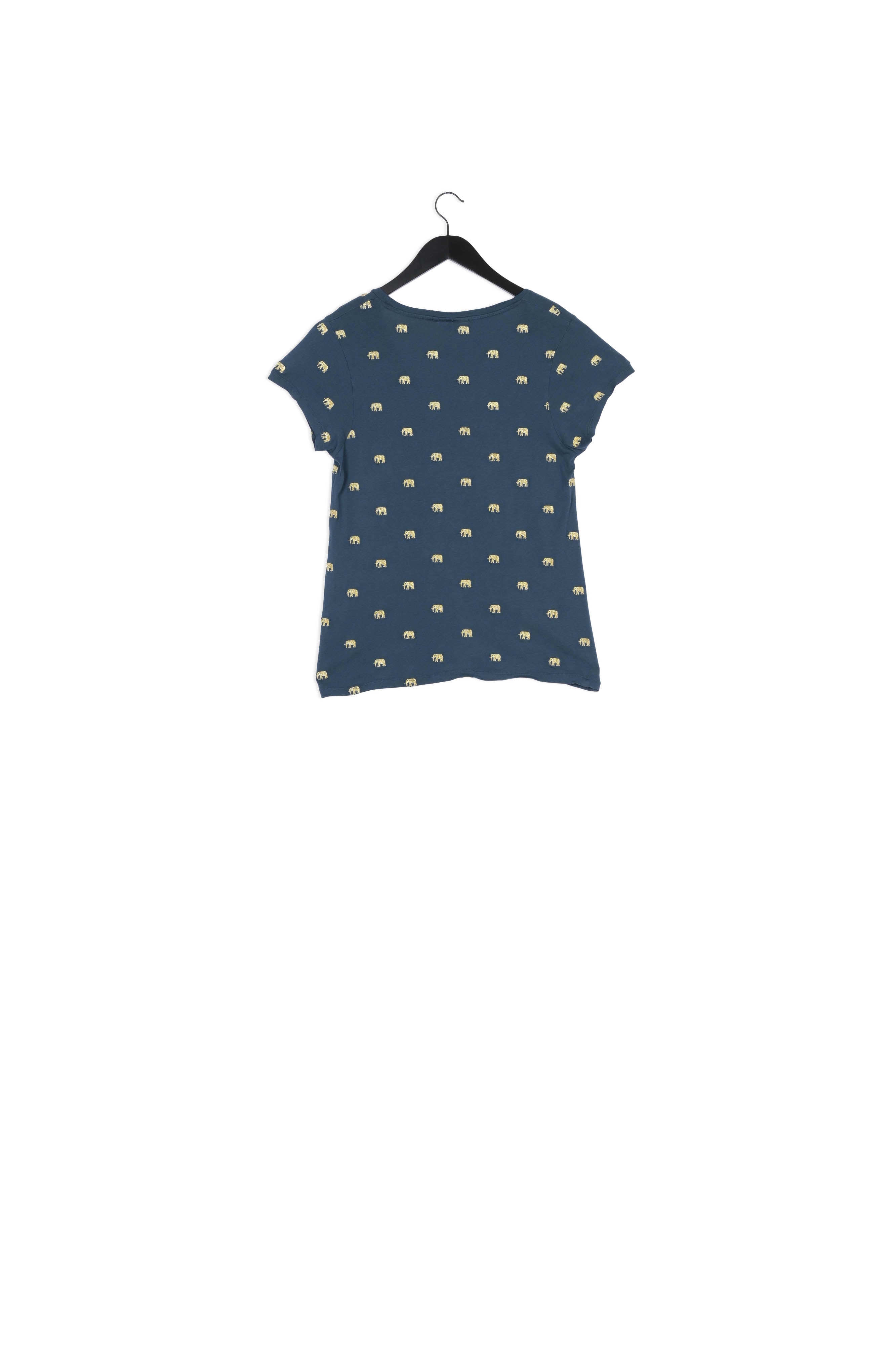 Cotton T-shirt with a round neck and embroidered gold-coloured elephants. -