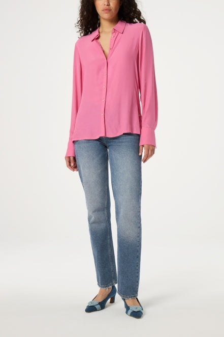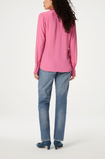 This women's blouse in pink features feminine heart buttons, long sleeves, a classic collar, and a regular fit. Made from 100% Viscose (FSC™), it is one of our more responsible styles. Pair it with one of our jeans for an effortlessly chic everyday look. -