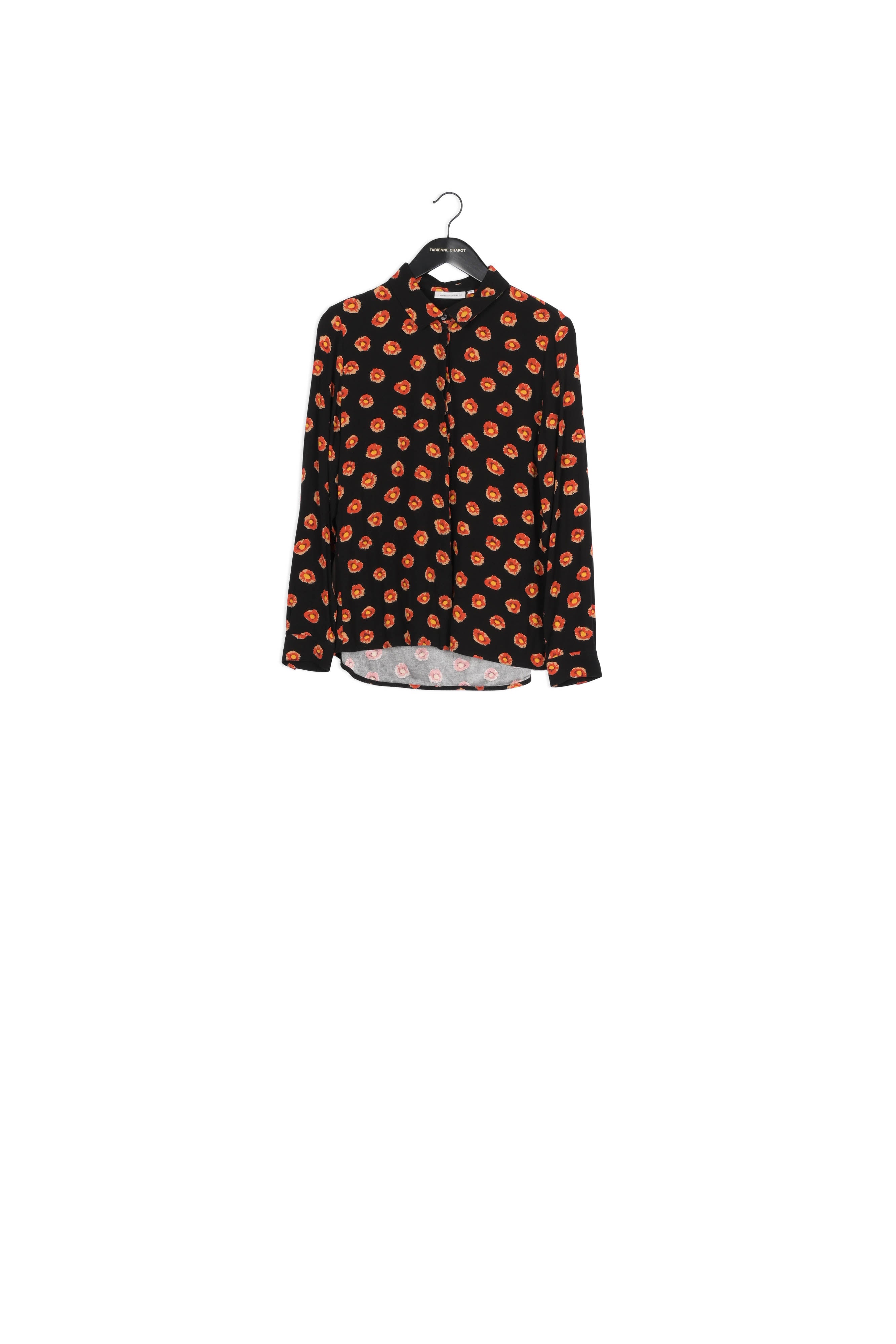 Flowing blouse with classic collar, concealed button closure and gold-coloured button on the cuffs. Perfect Blouse is rounded at the back.