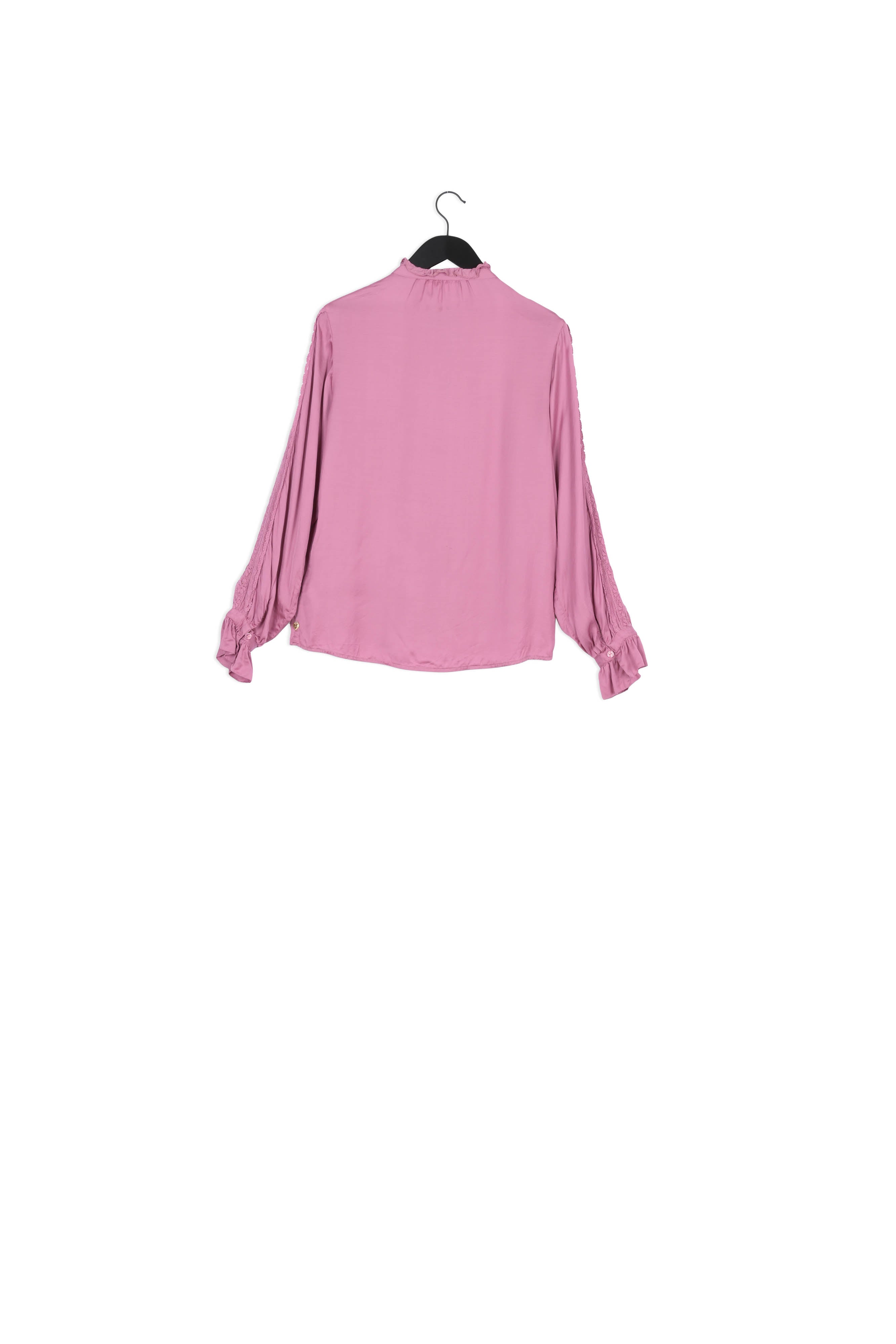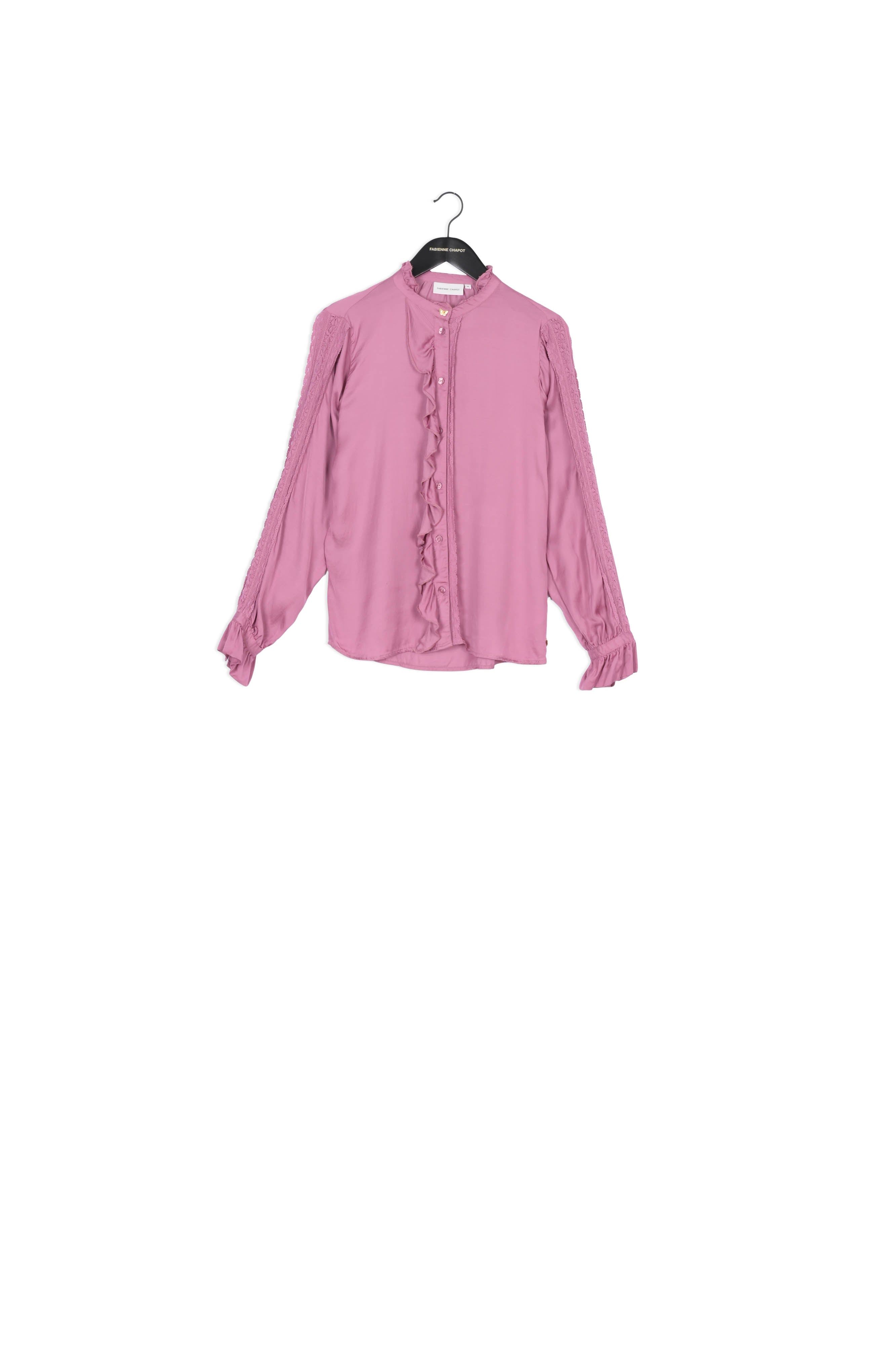 Blouse with button closure that you can wear open or high-closed. Mimi Blouse has ruffles and lace details along the button closure, ruffles at the collar and at the end of the sleeves and lace details along the entire length of the sleeve.