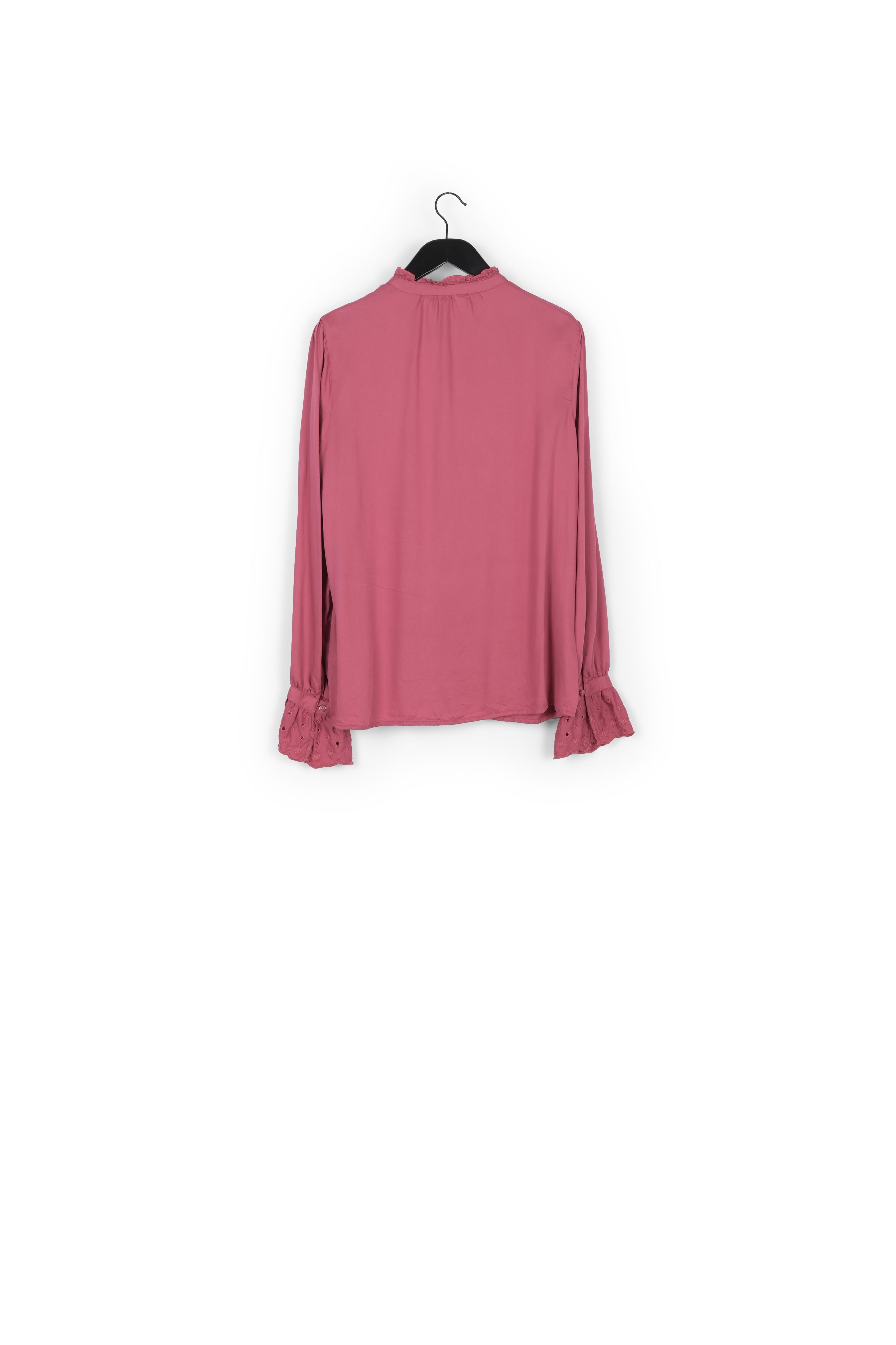 Blouse with raised board with ruffle. Baba Blouse has openwork details on the flared cuffs and a Fabienne Chapot button on the collar. -