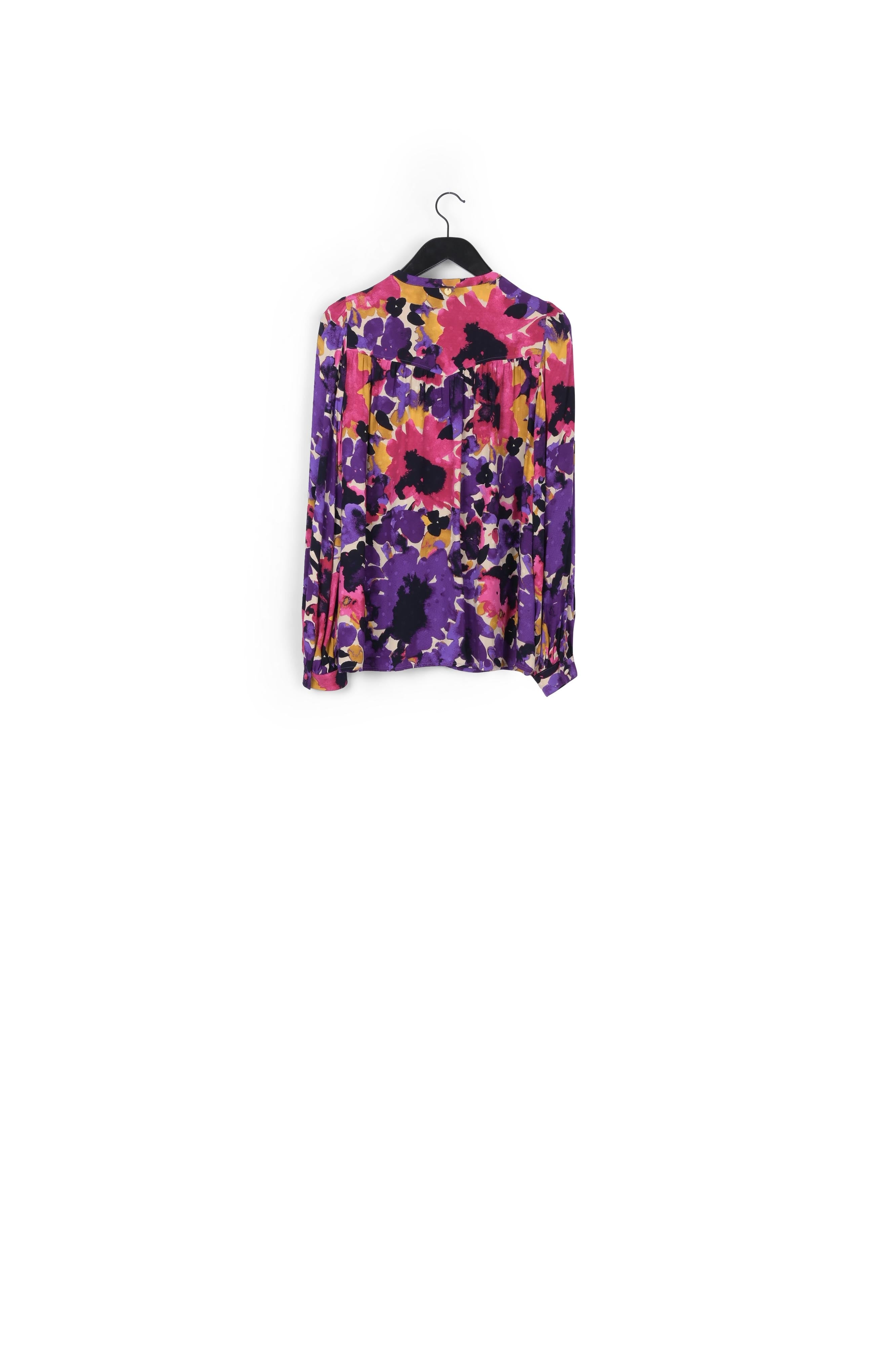 Blouse with flat collar. Resa Blouse has a covered button closure and has an all over 'Cherry Bloomsberry' print