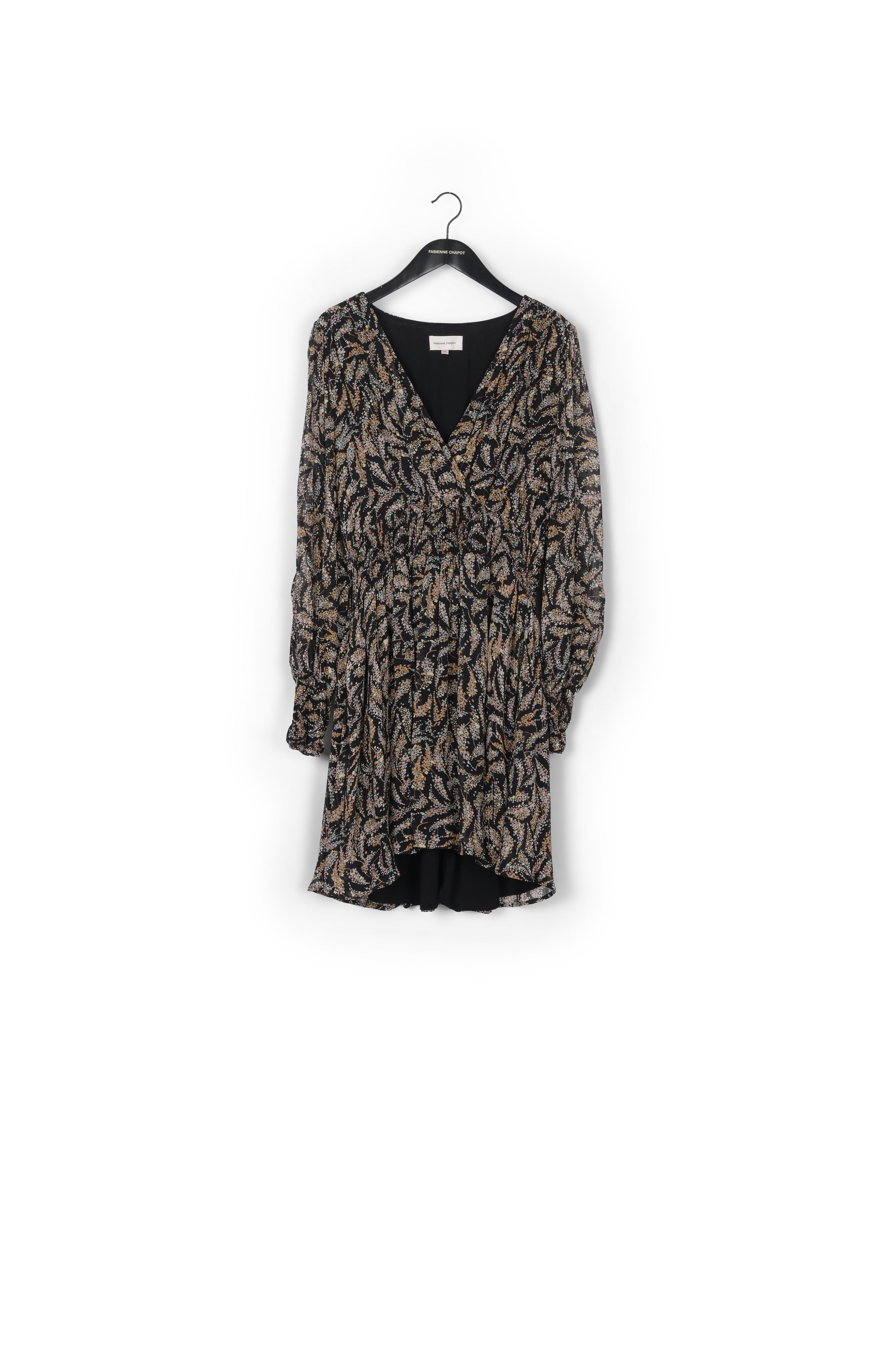 Flowing short dress with v-neckline and slightly see-trough sleeves. Anjuna Dress has an elasticated waist and cuffs. -