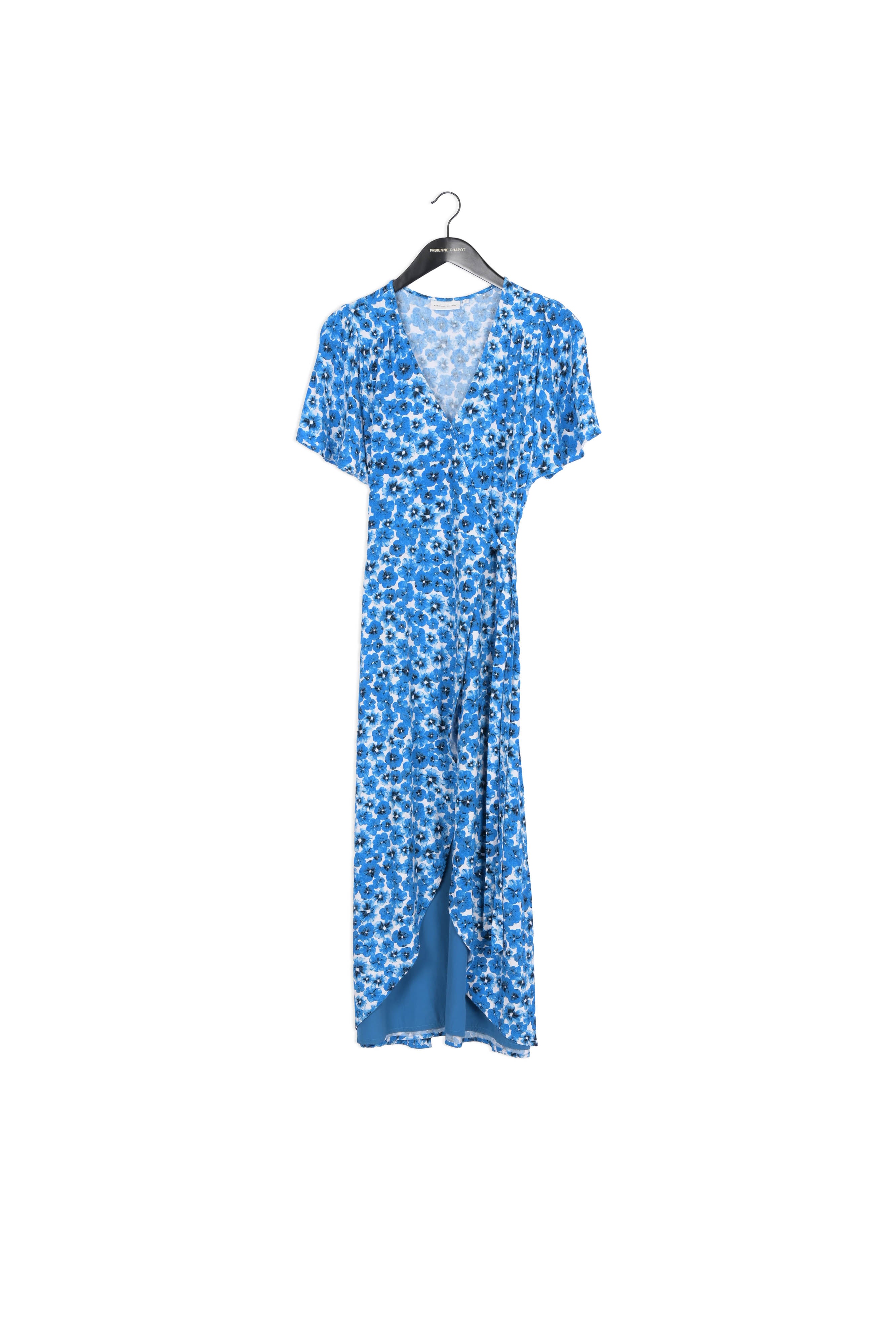 Wrap dress with V-neck and beautiful feminine short butterfly sleeves. Archana Sleeve Dress has a secret button at the neckline.