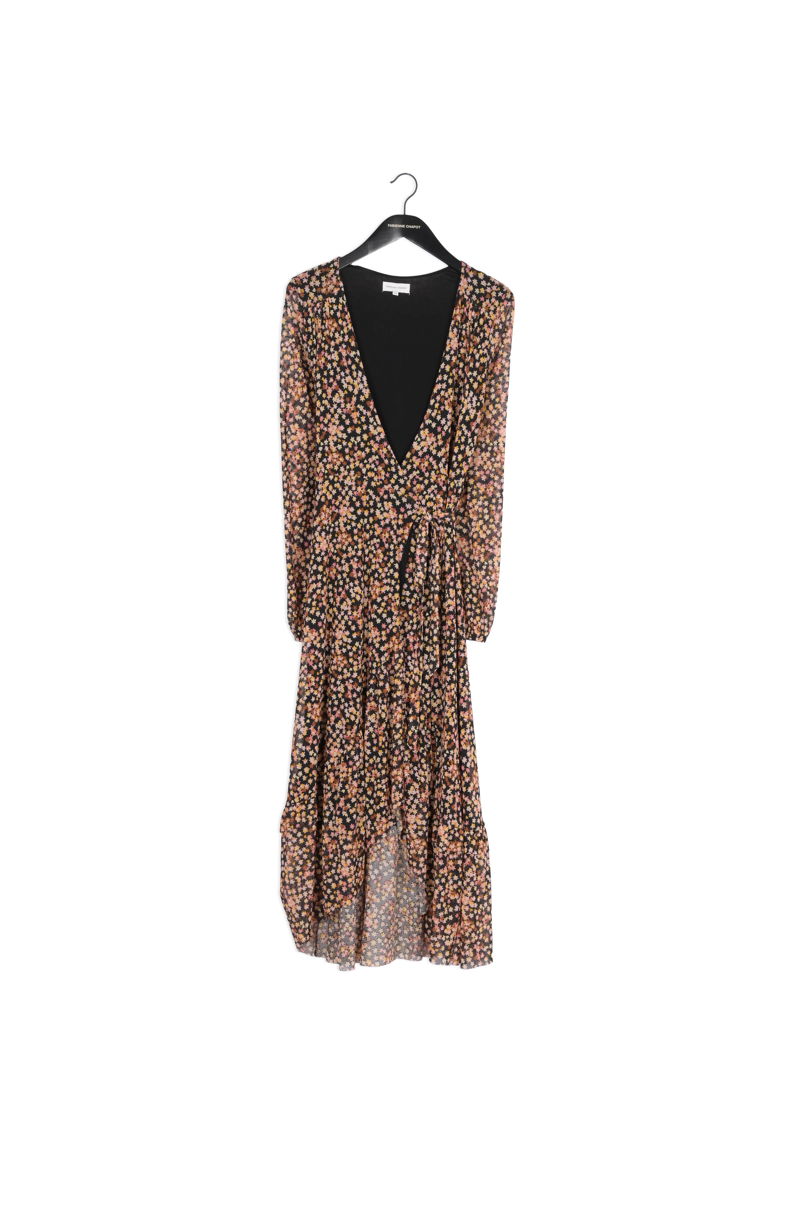 Long wrap dress with V-neck in stretchy mesh material. Natasja Dress has long sleeves with elastic on the cuffs. This item is made of Mesh (recycled polyester): stretchy, creaseproof and conscious. Discover how many bottles are recycled to make your garment inside the care label.