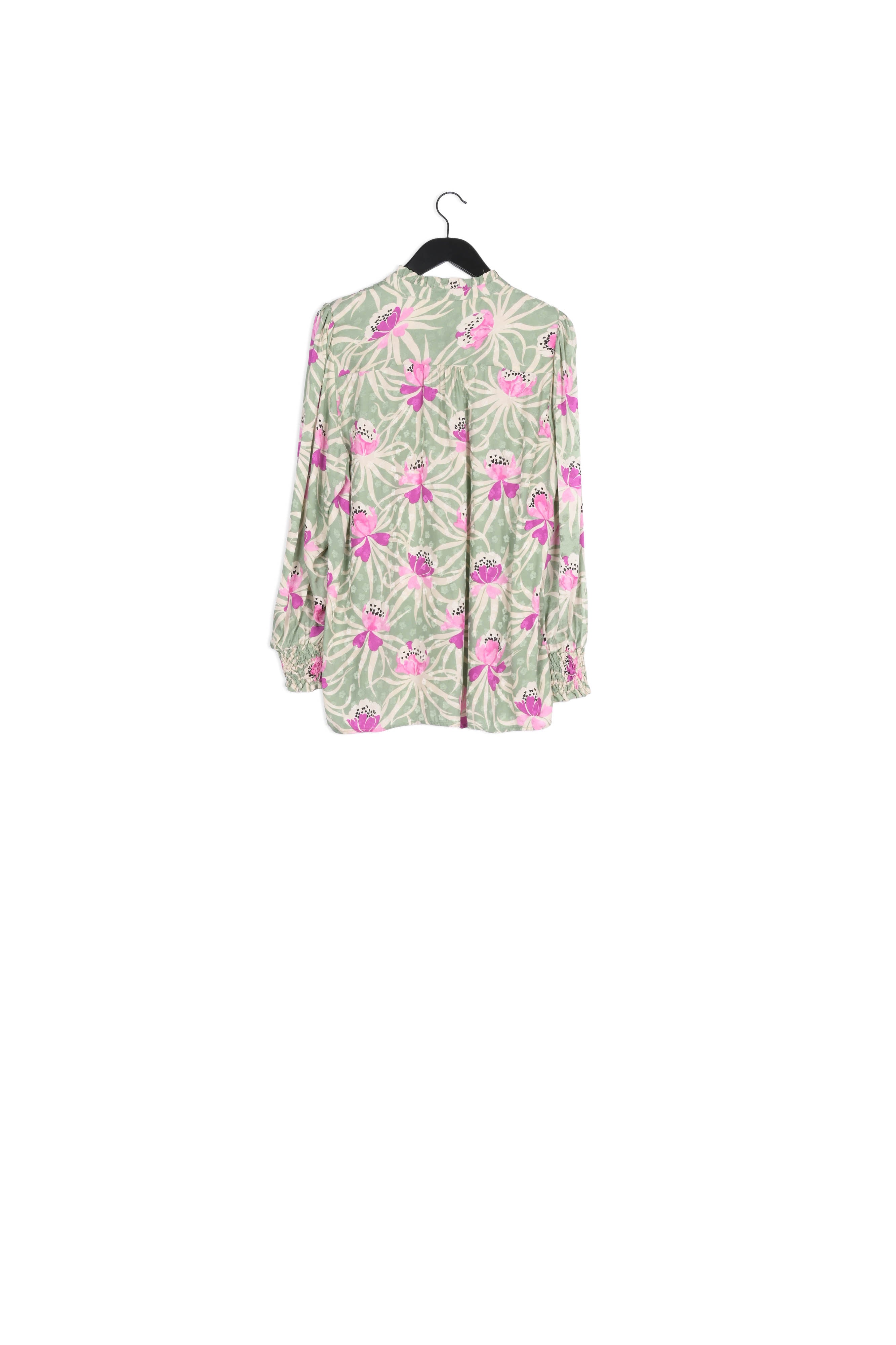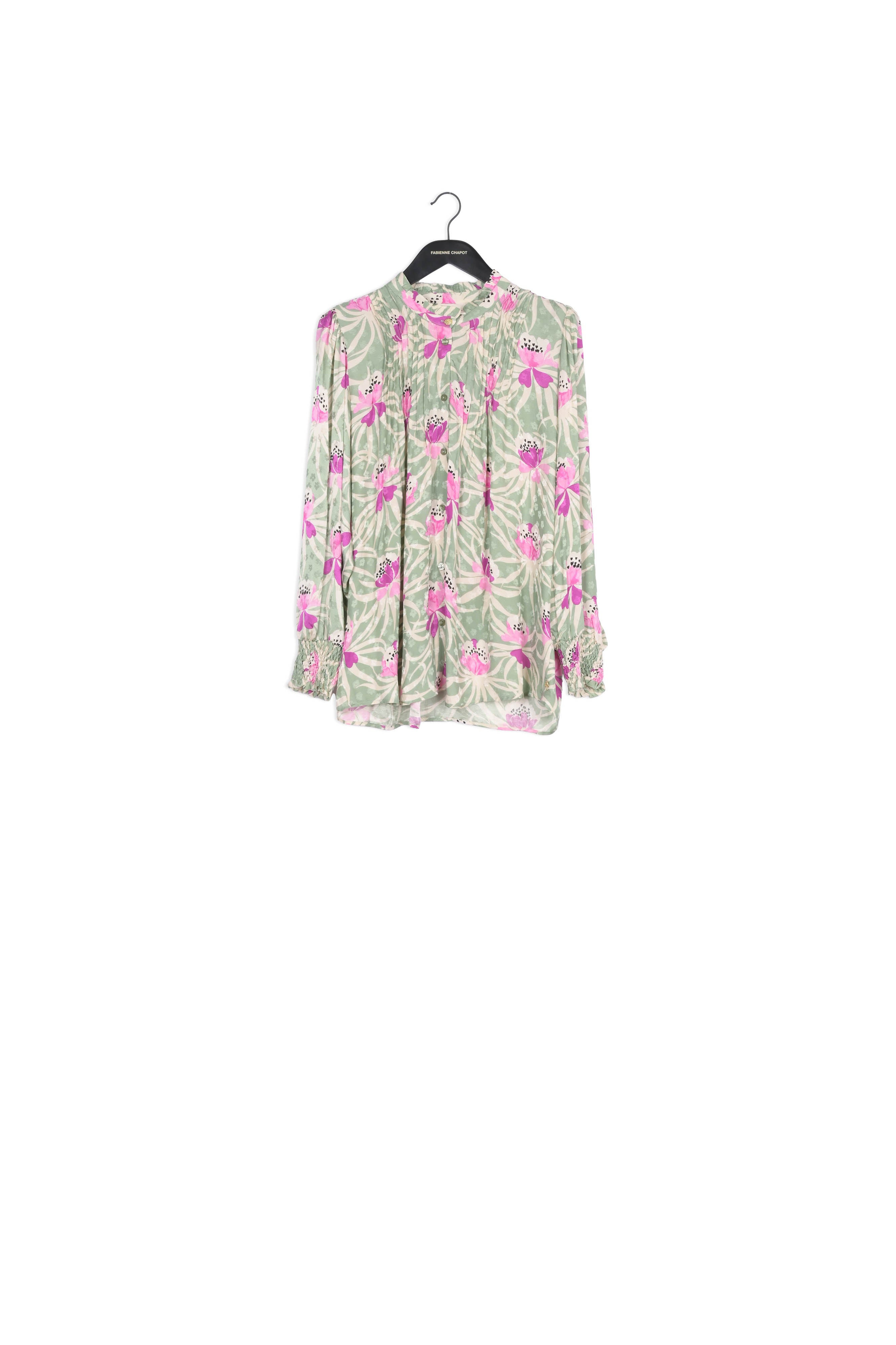 Blouse with button closure, smocked cuffs and gold-coloured button on collar. Lucky Tess Blouse has pleated details on the breast and an all over jaquard print with flowers. -
