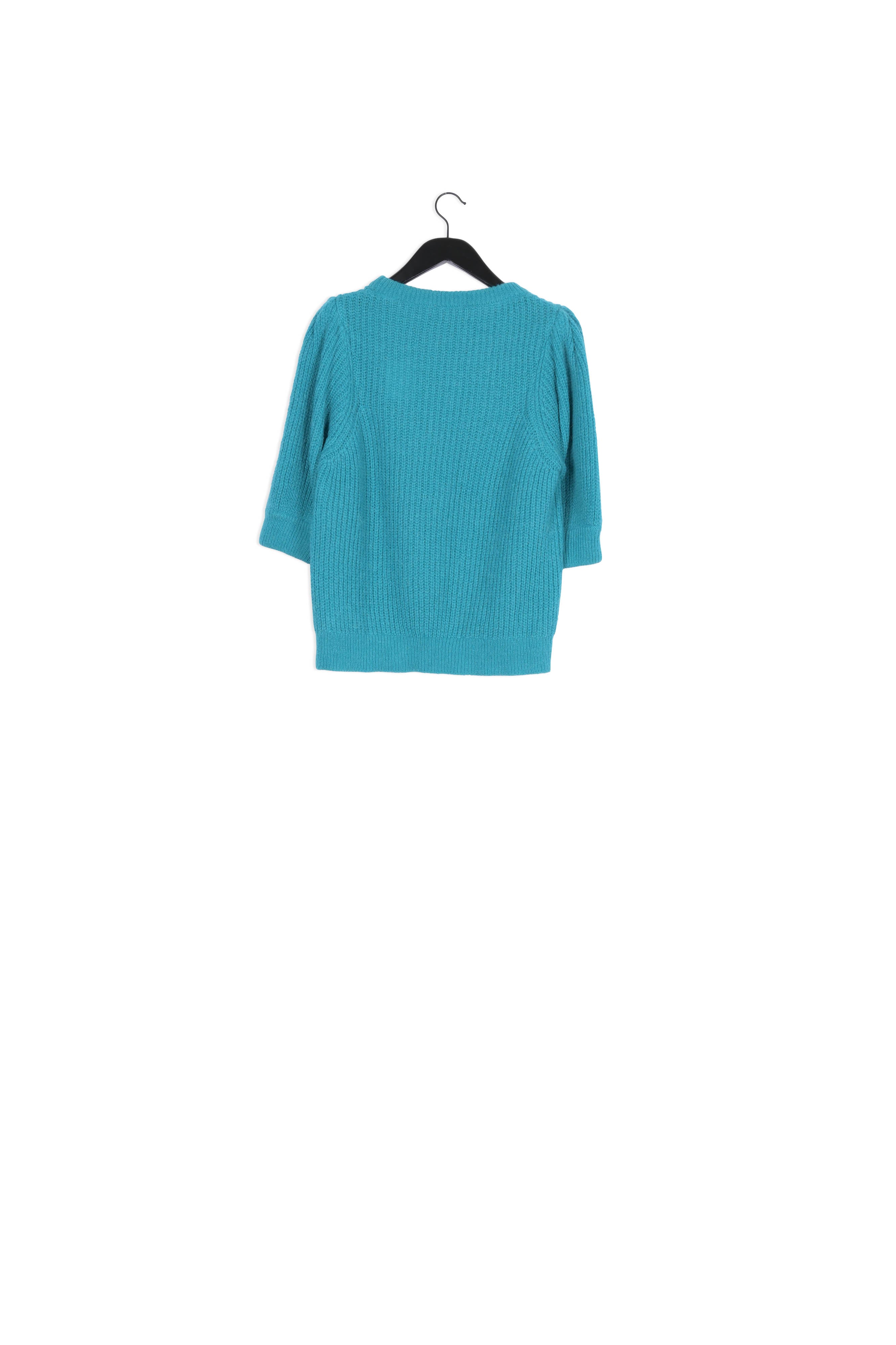 Soft knitted pullover with round neck. Jet Pullover has slightly puffed short sleeves and a gold-coloured brooch. This pullover is made from an alpaca wool blend.