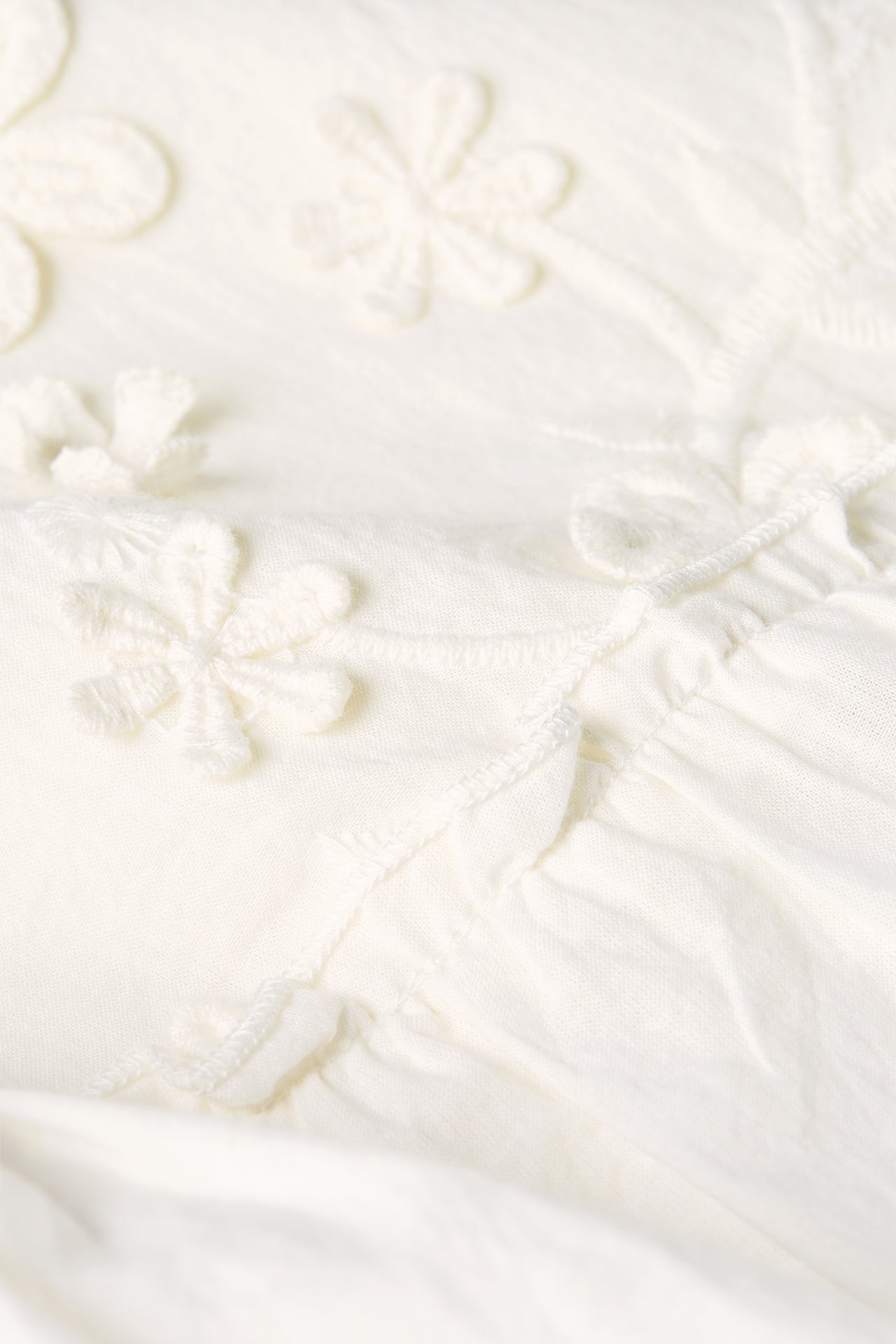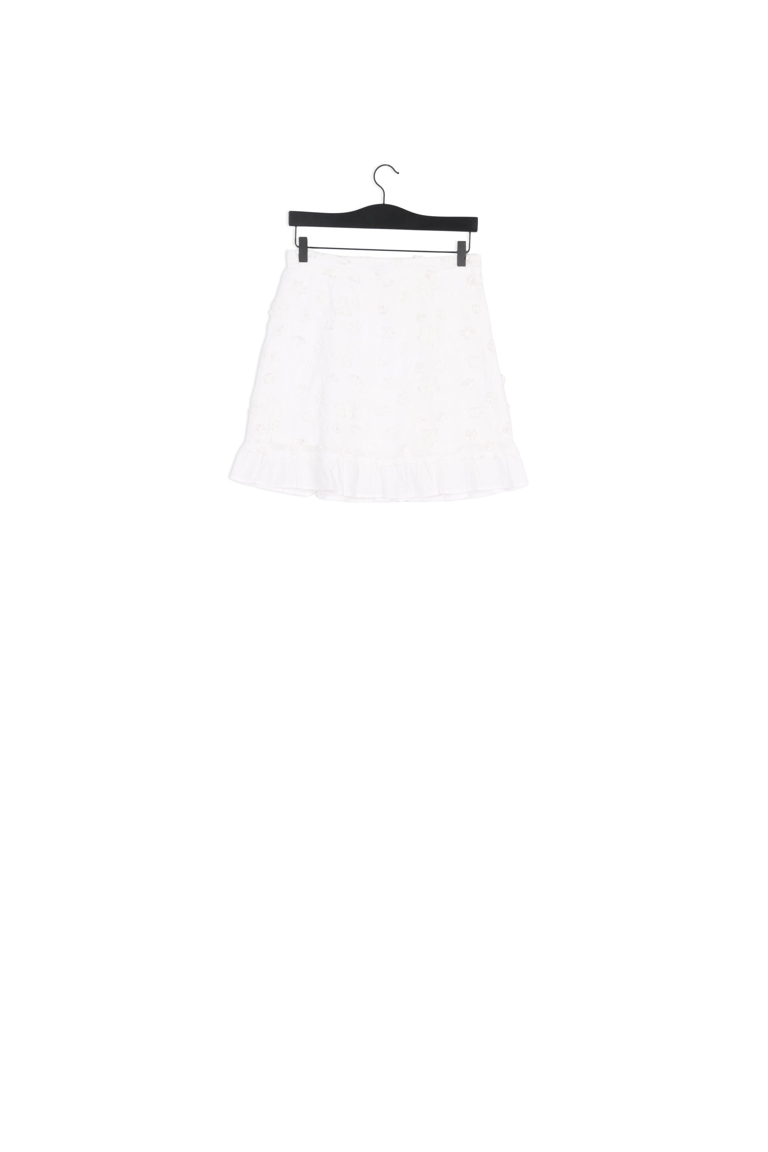 Fitted short skirt with elastic band at the back, blind zipper at the side and ruffles at the bottom. Flower Frill Skirt is made of a beautiful fabric. It is a 3D translation of our unique prints in a beautiful embroidery technique, making the flowers seem to grow out of the fabric. Combine this skirt with the Leo Blouse made from the same fabric! -