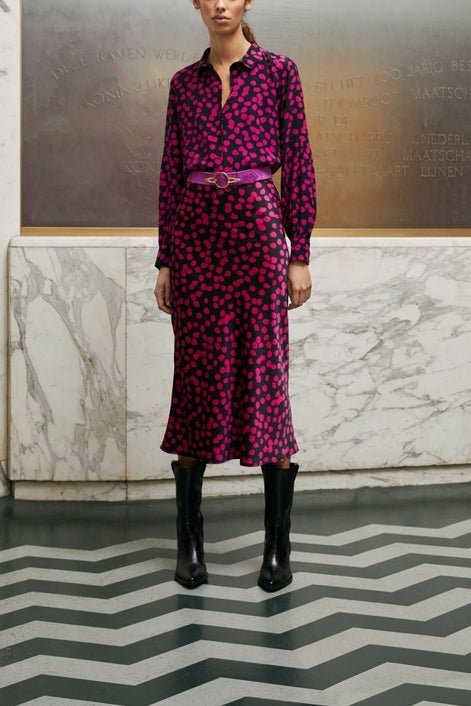 Flowing blouse with a V neck and a classic collar in the Dolly Dots print.