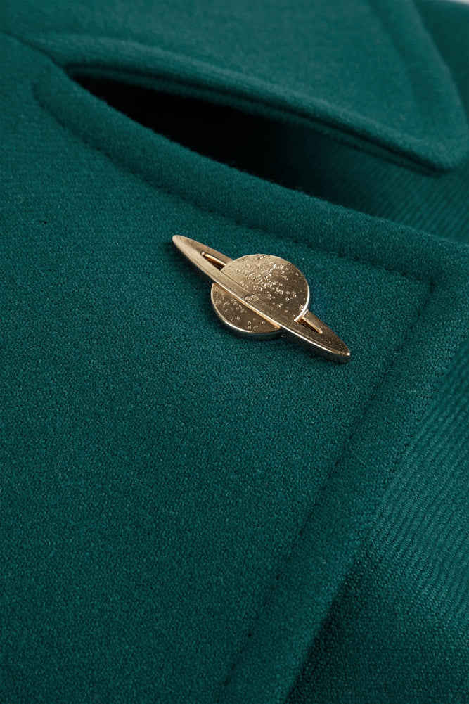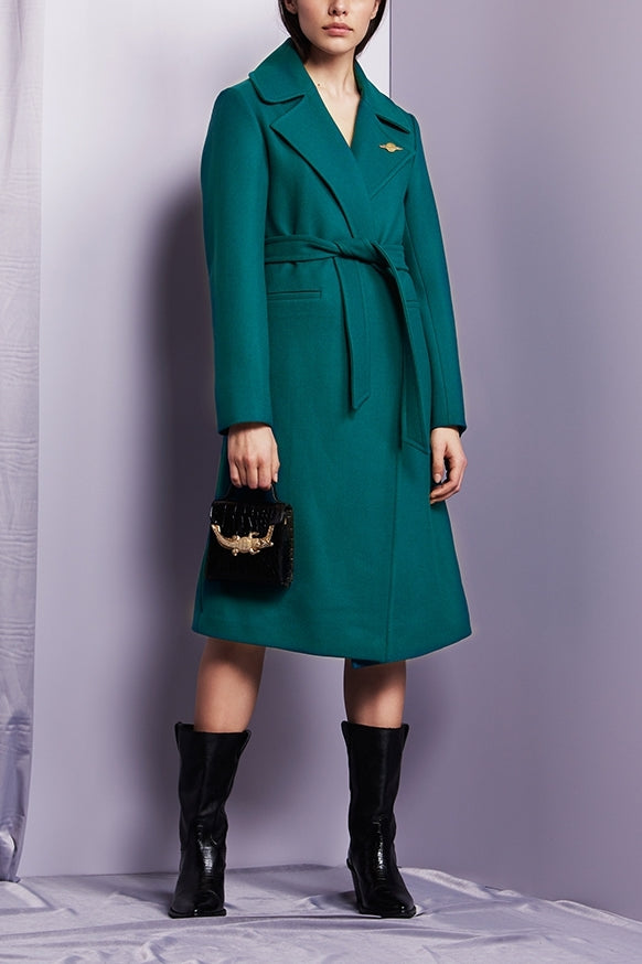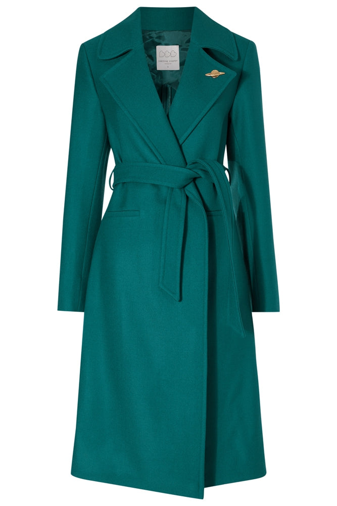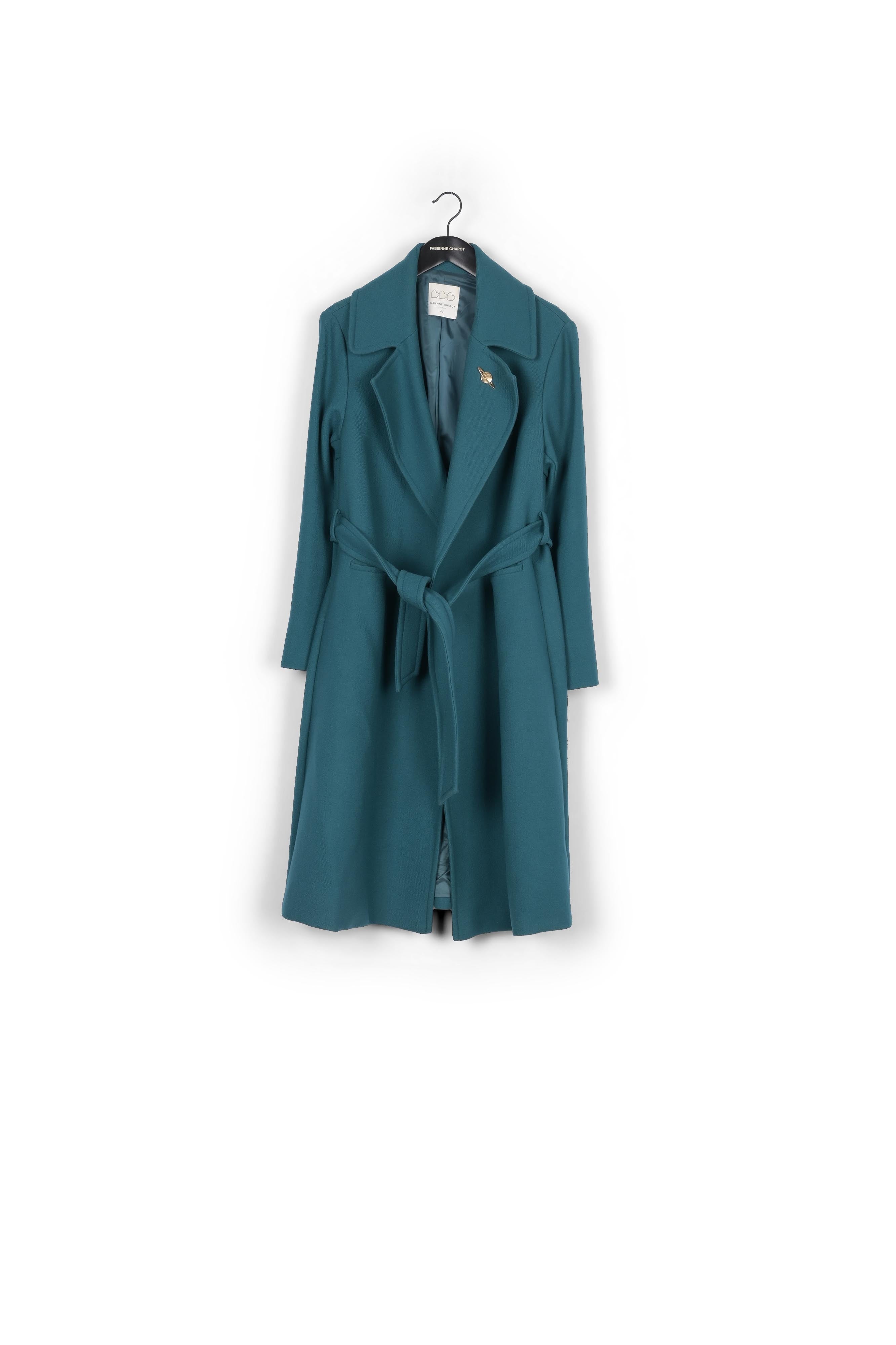 Update your in-between season edit with this modern version of the classic trench coat. The Chapot Coat is made of 100% wool with lining, has a matching waist belt, two welt pockets and a gold-coloured UFO brooch. -