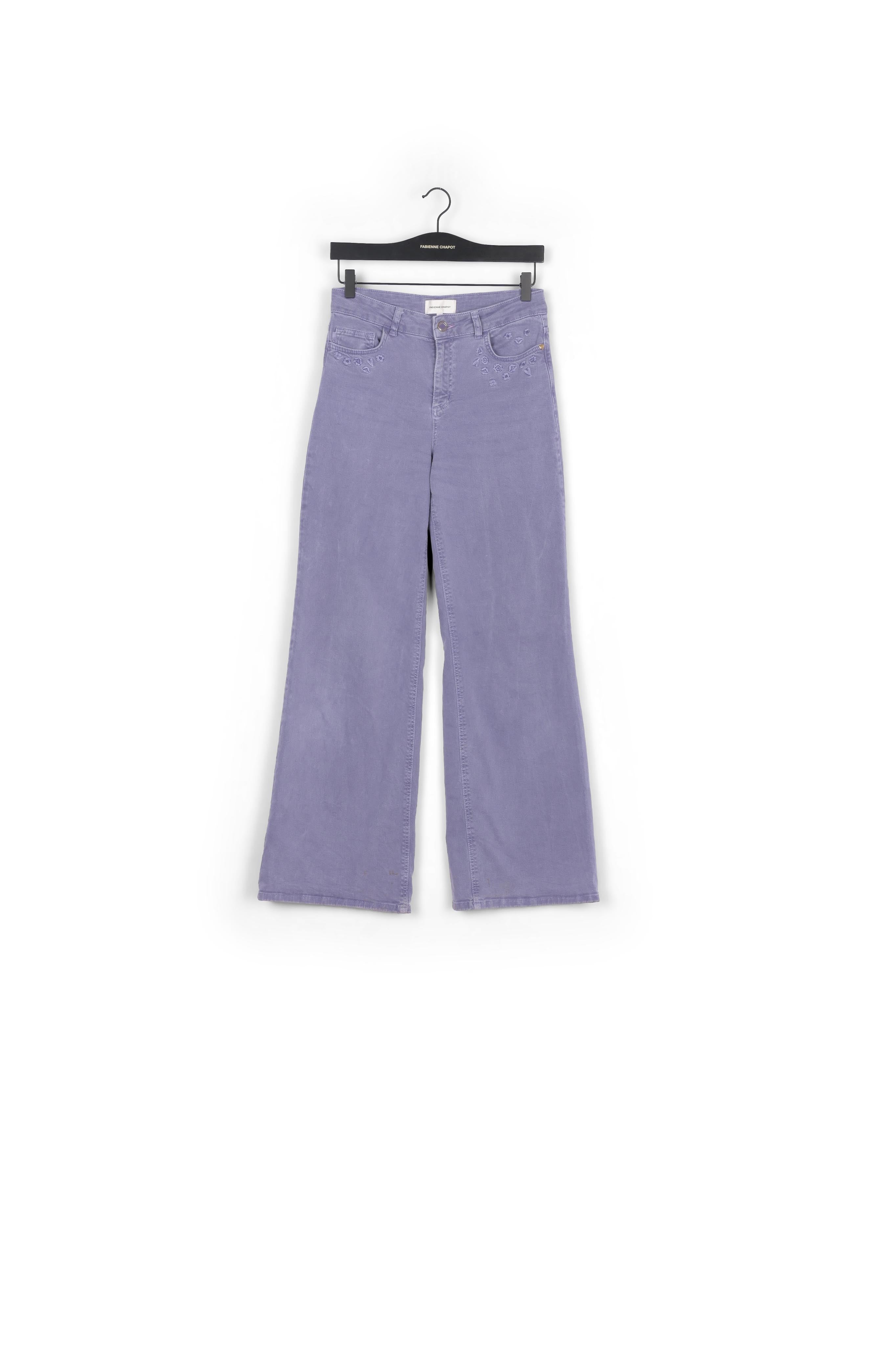 Uniek, however you choose to style it. Size up, size down; er zijn geen regels. Paarse mid-rise denim broek met de ultimate fit! Eva Wide heeft een gemiddelde taillehoogte, wijde pijpen en geborduurde bloemen details bij de zakken. Deze broek is gemaakt van stretch denim.