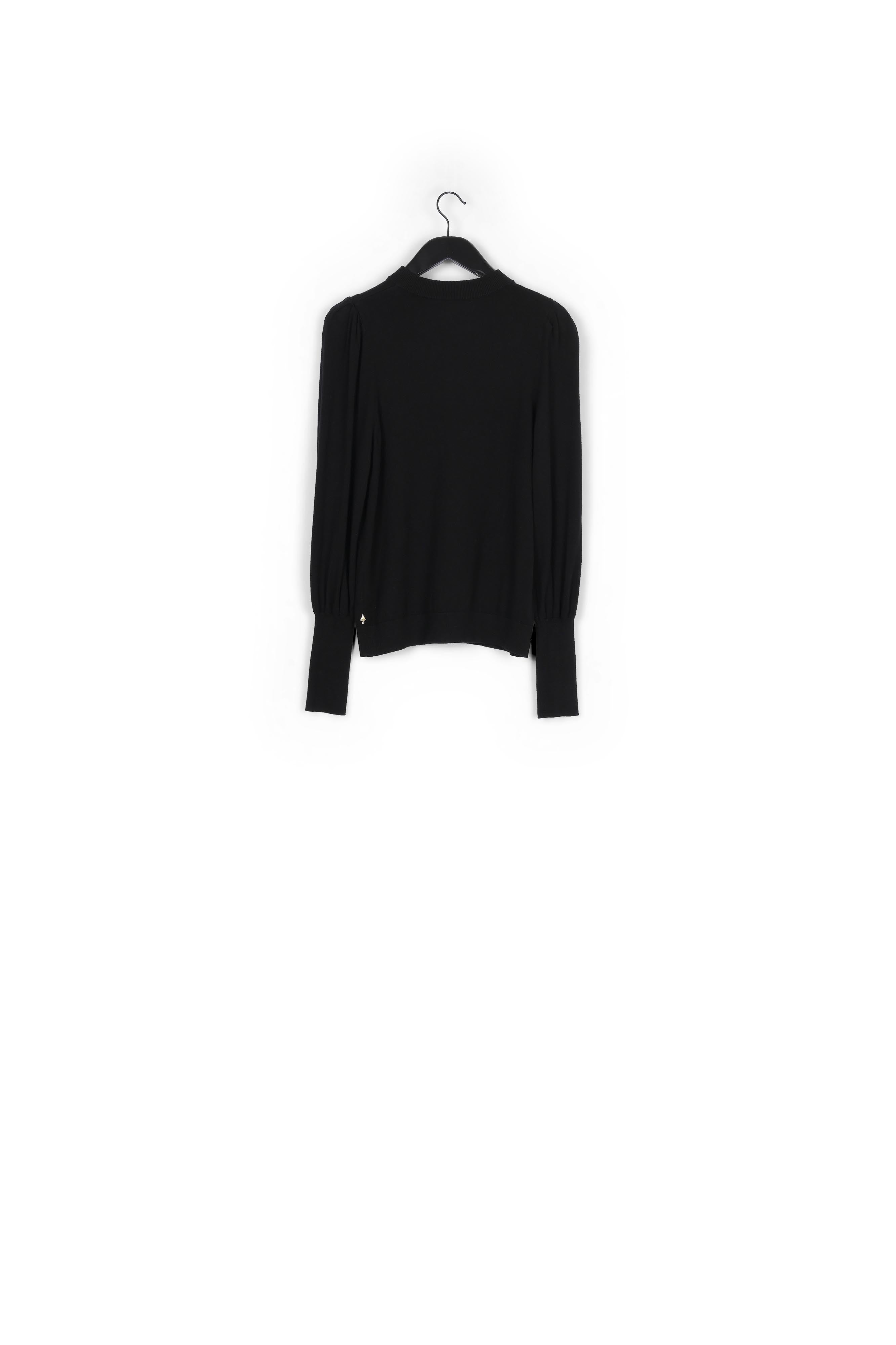Fine knit sweater with balloon sleeves and long cuffs. Beatrice Pullover has a round neckline with a beautiful bronze-coloured button. -