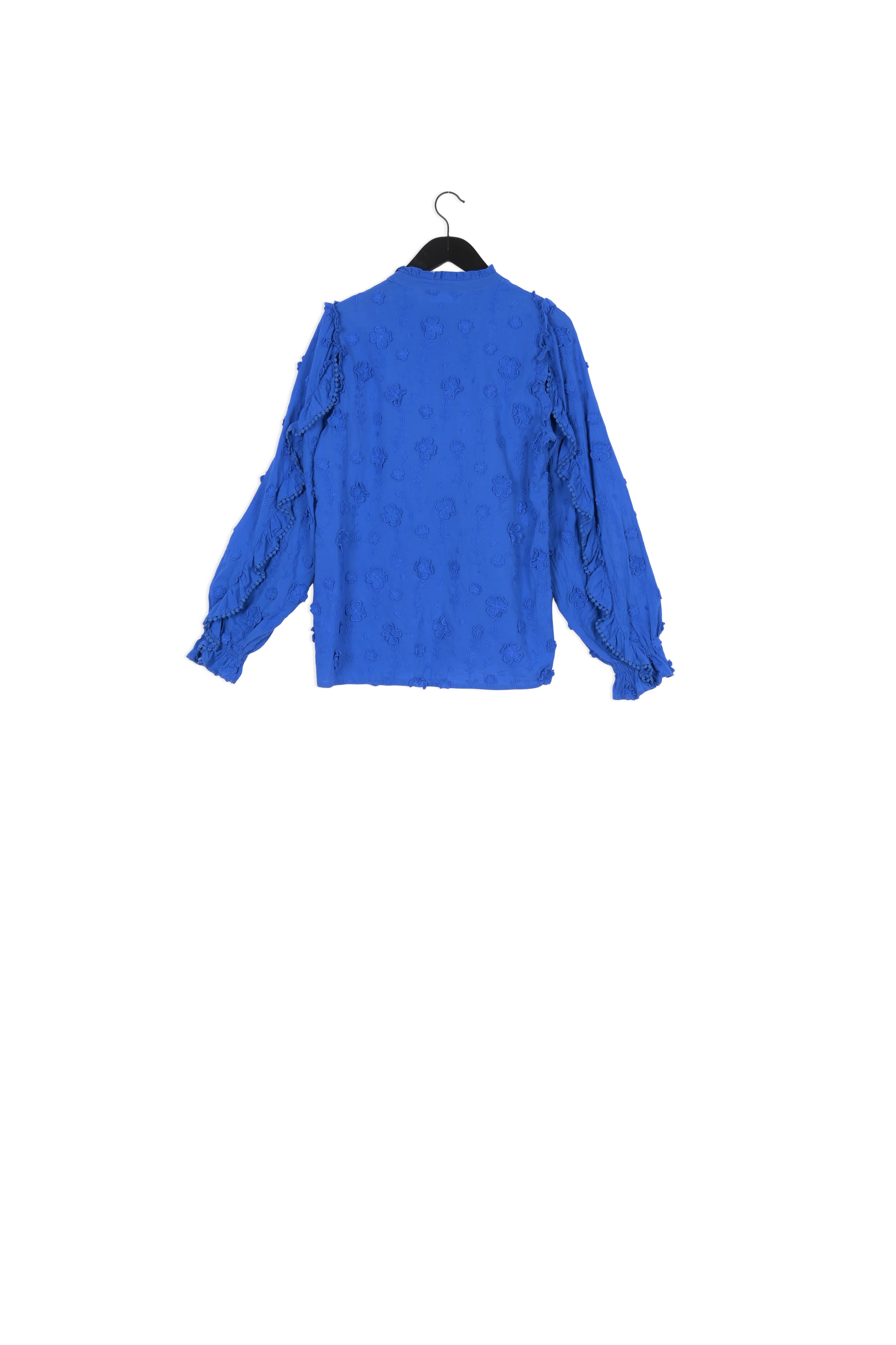 Blouse with button closure and ruffles on the sleeves. Josefin Blouse is made of a beautiful fabric. It is a 3D translation of our unique prints in a beautiful embroidery technique, making the flowers seem to grow out of the fabric. This blouse is made of 100% cotton.