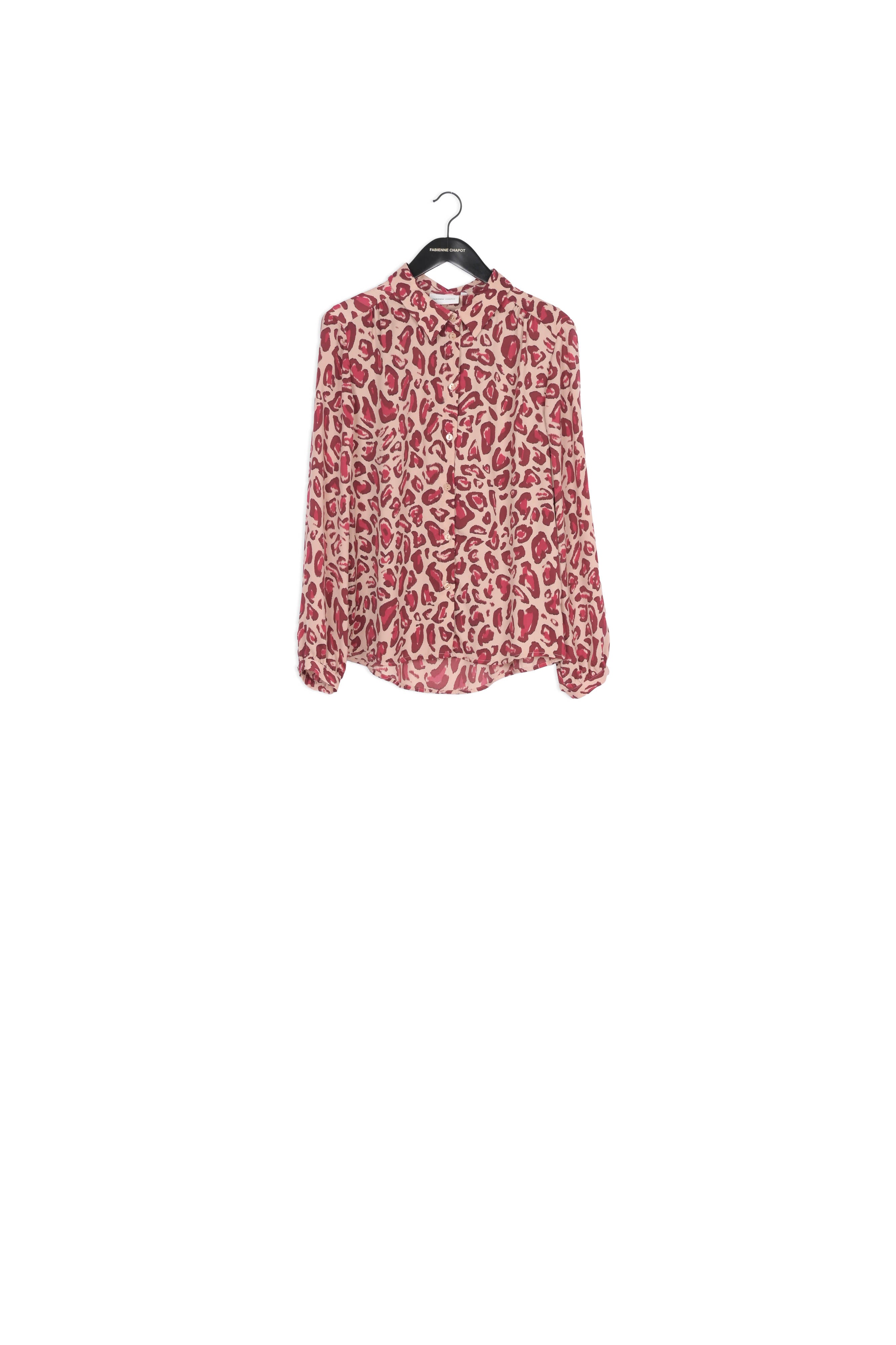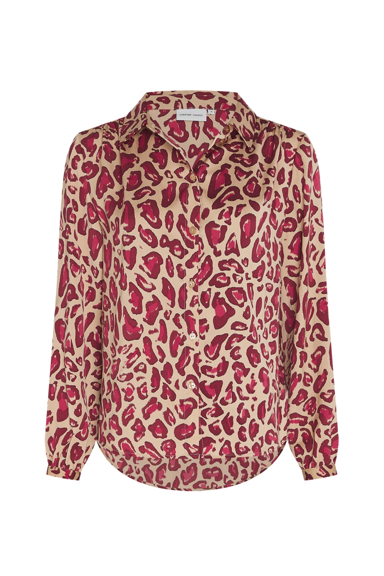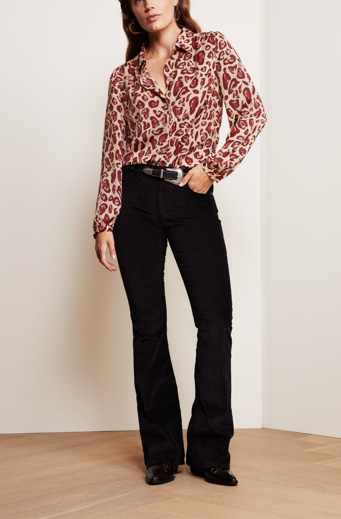 Flowing blouse with classic collar and button closure. Mira Blouse has light puffed sleeves, pleated details on the front and back and gold-colored buttons on the cuffs.