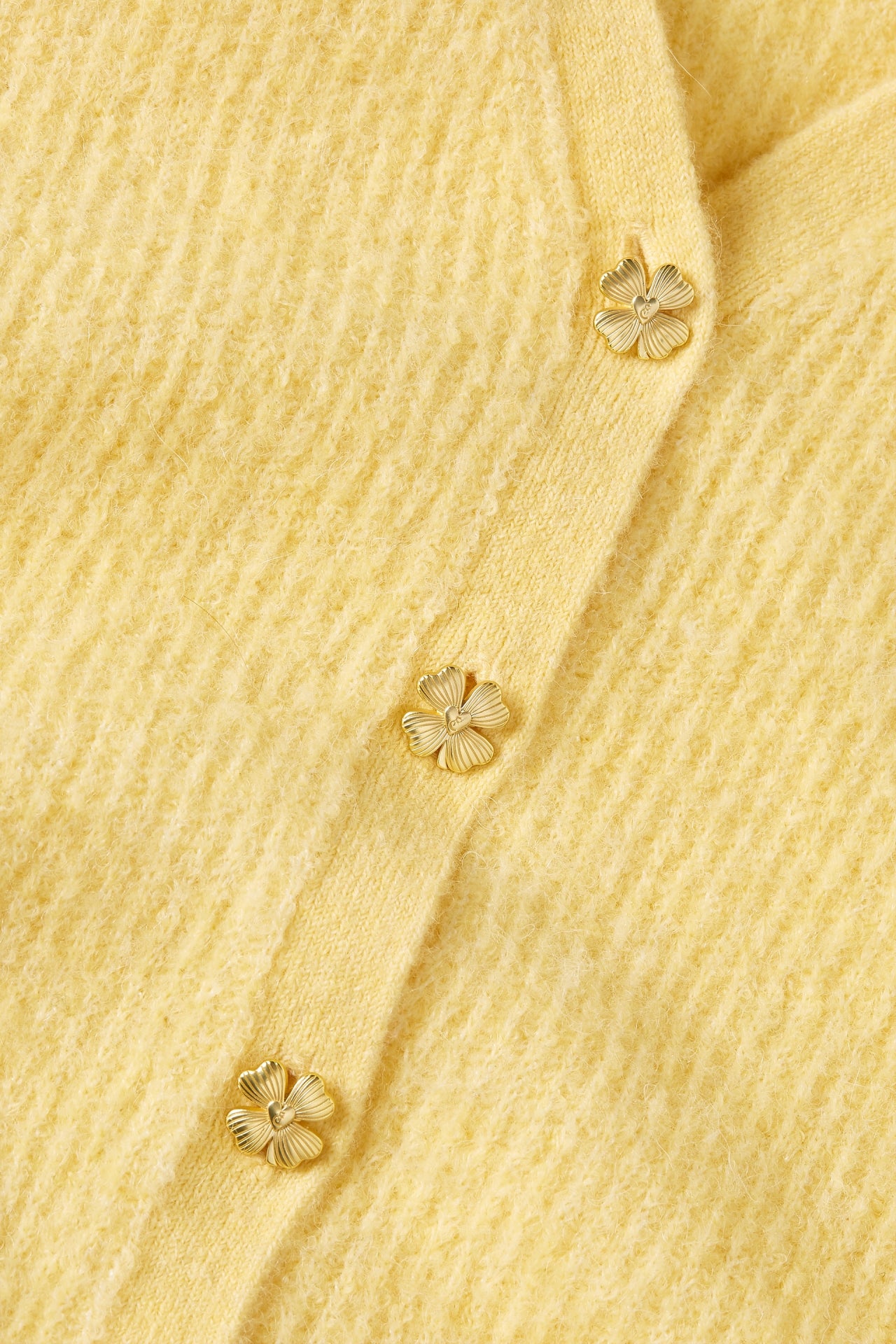Super soft cardigan with a feminine silhouette, V neck, signature gold-coloured buttons and long sleeves. Sally Cardigan is made from a blend of wool and alpaca wool.