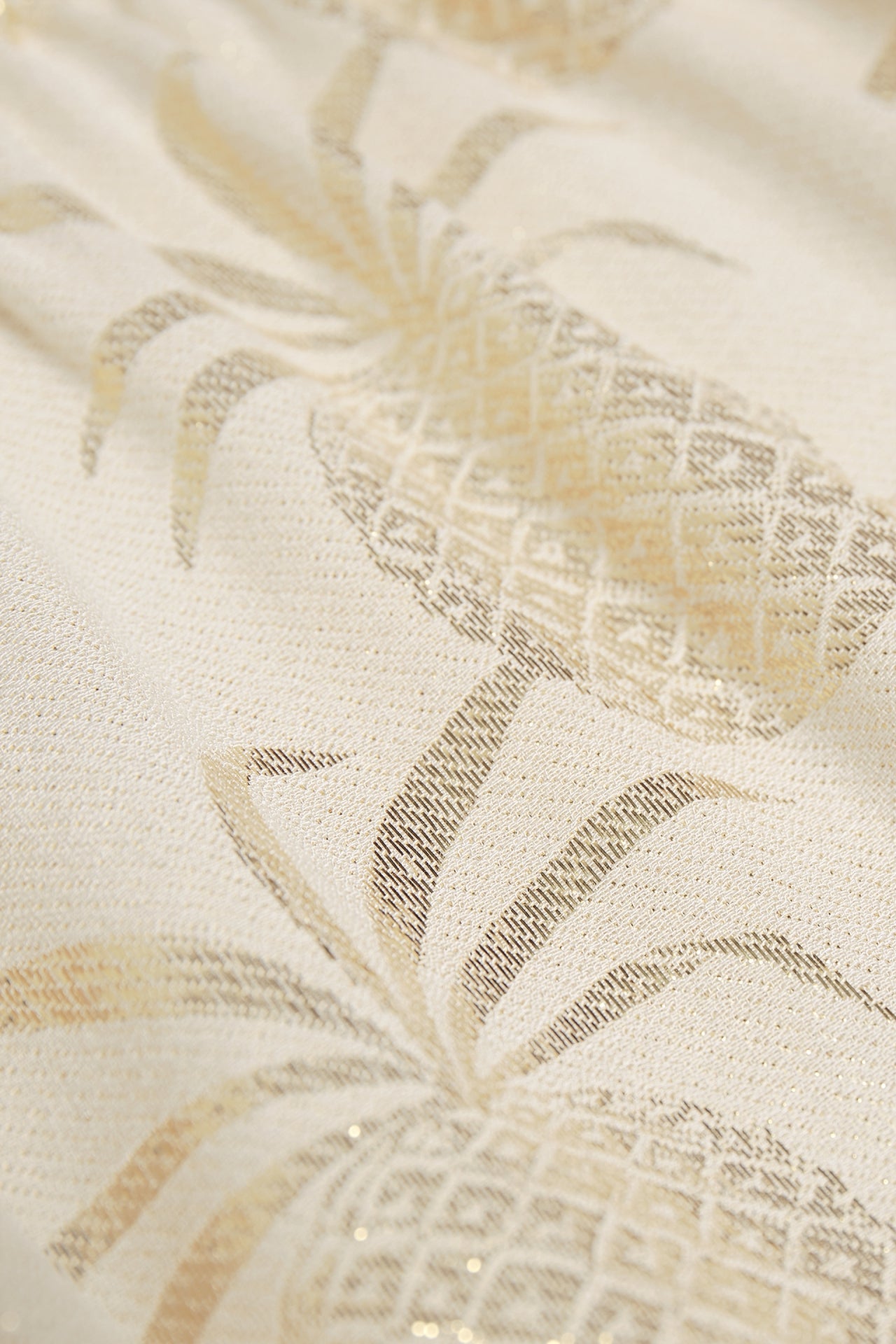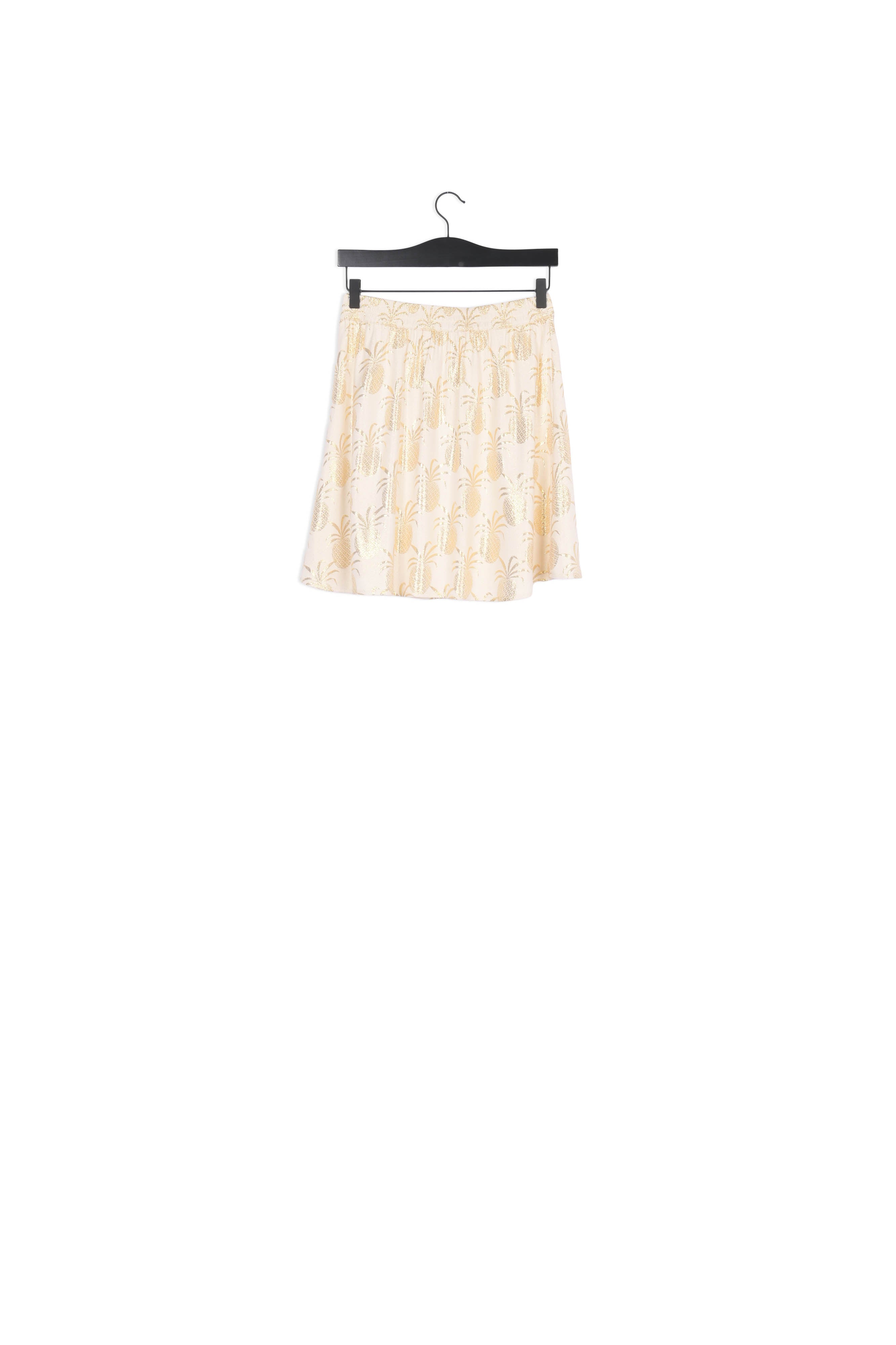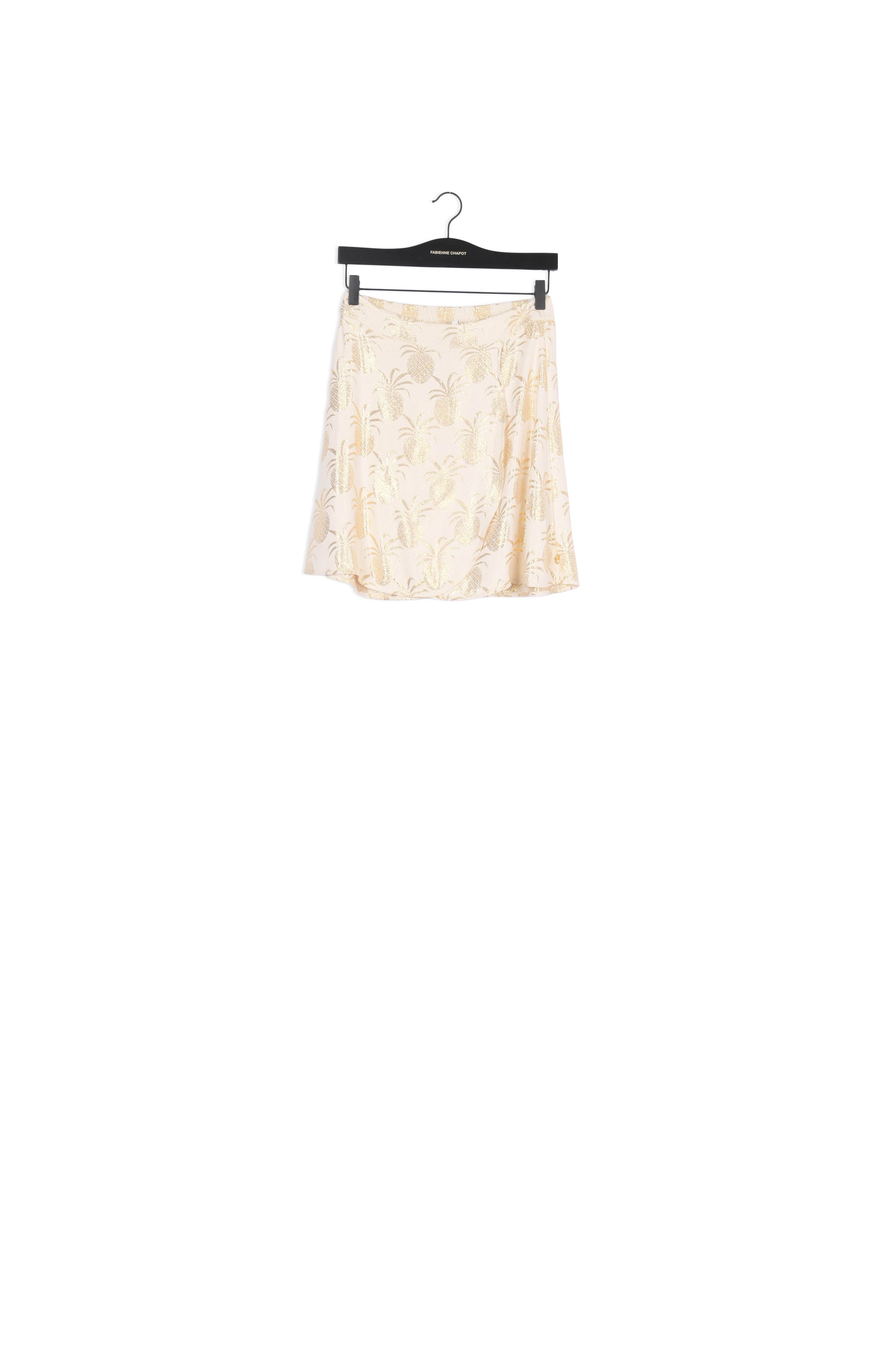 Short wrap dress with elastic waistband. Eyeland Skirt is made from a woven Pineapple jacquard. -