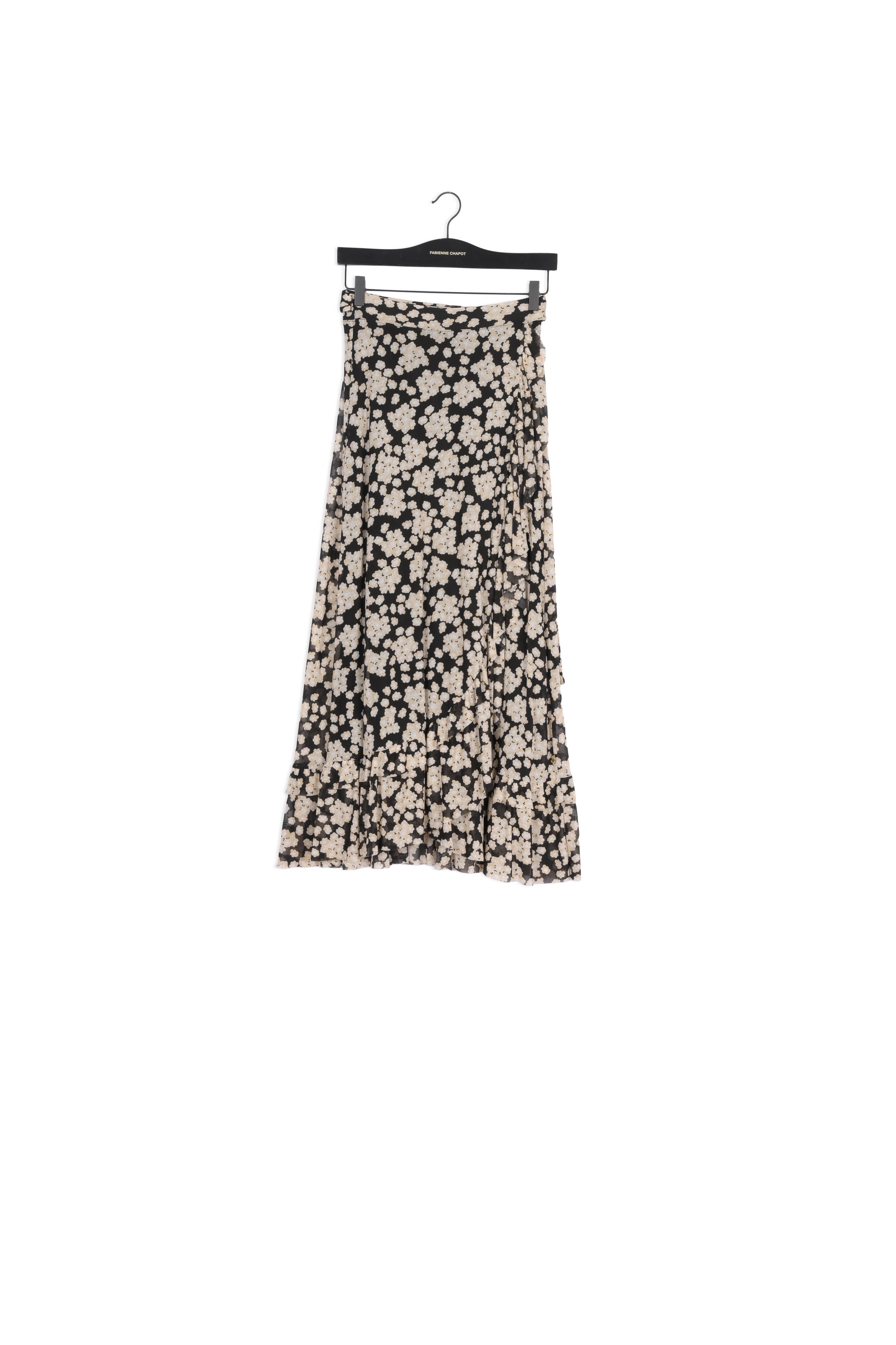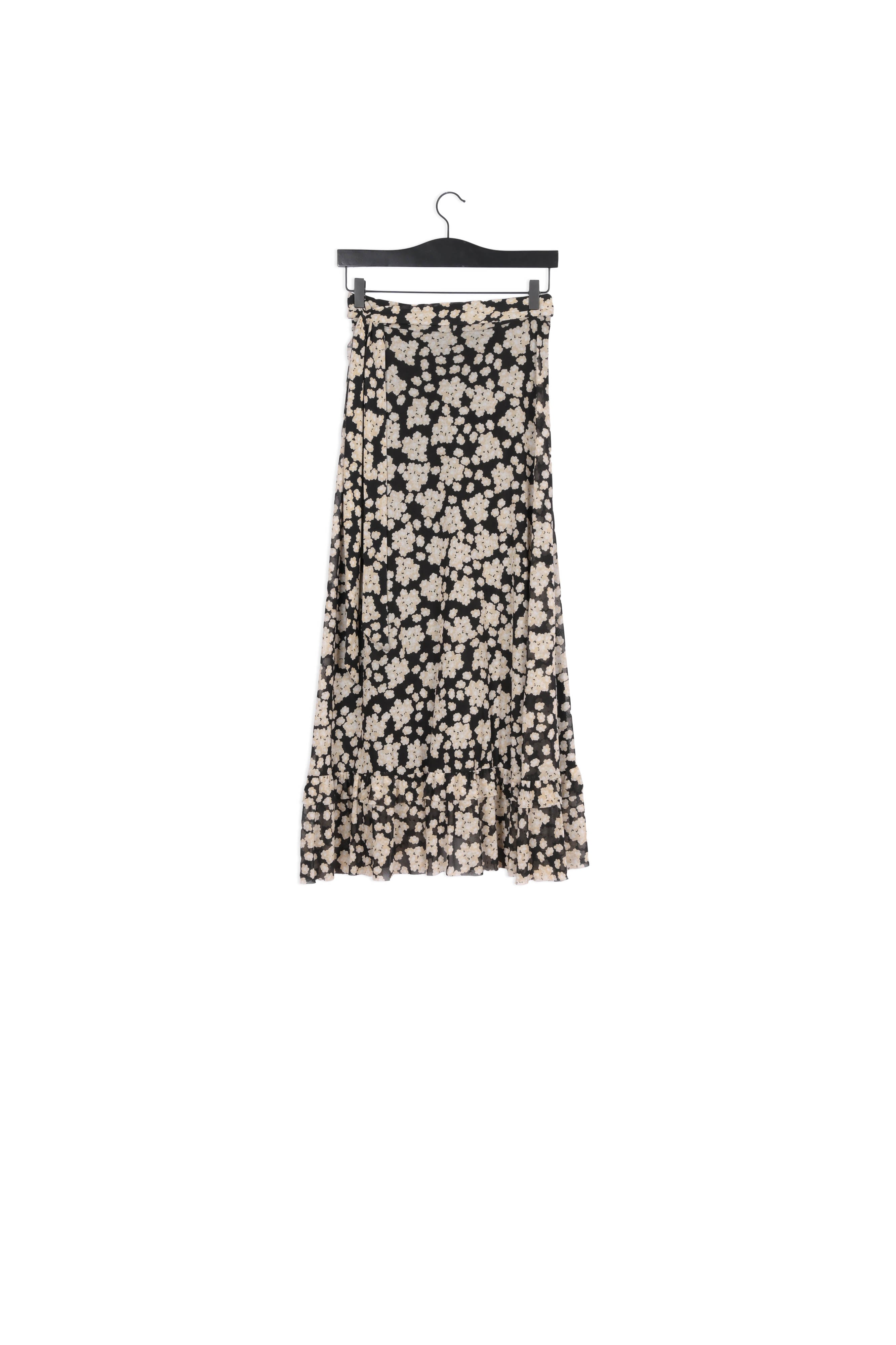 Bobo Skirt is a flowing A-line wrap skirt with a tie ribbon in the waist and ruffles at the bottom. The skirt is stretchy and very comfortable.