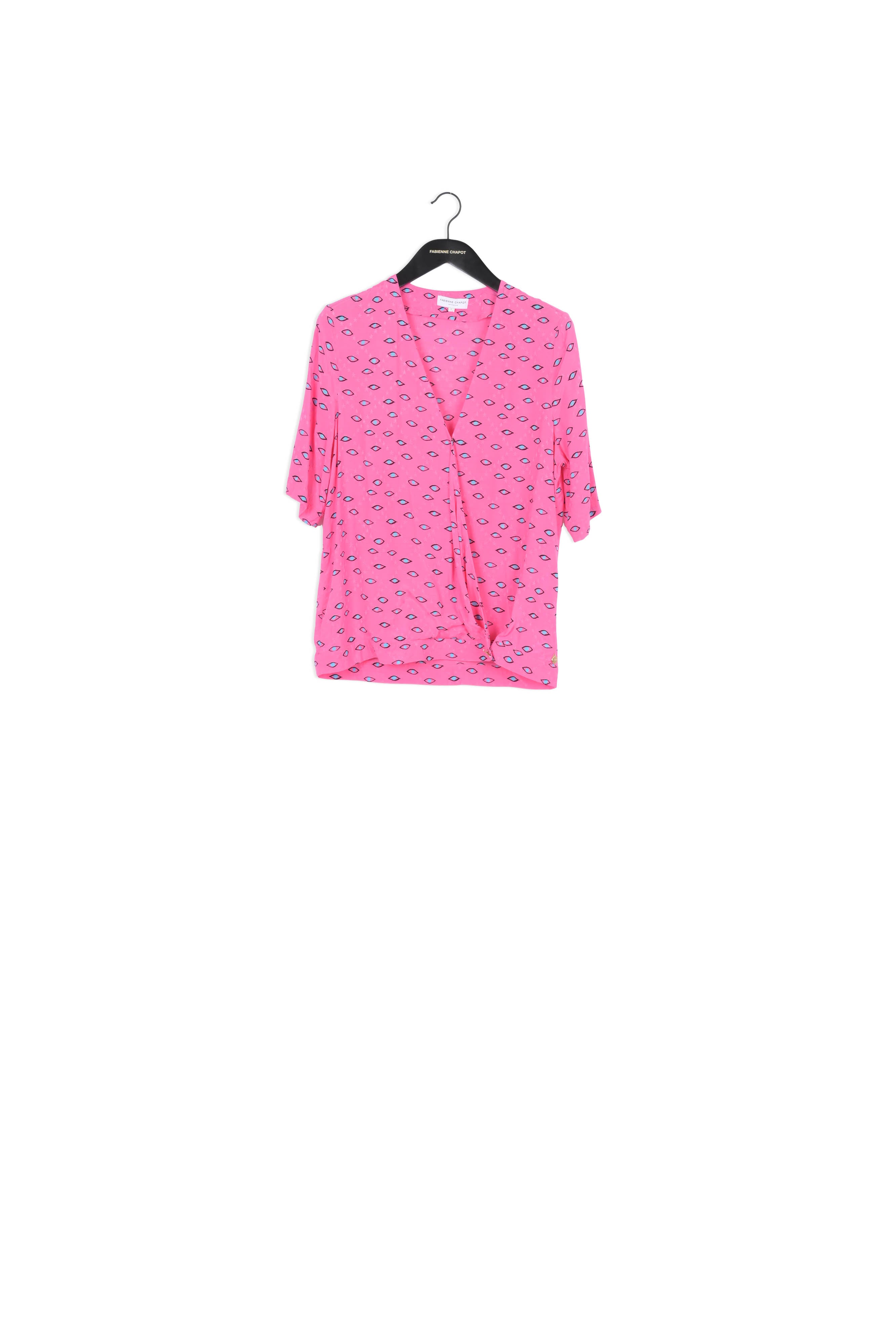 Flowing wrap top with V neck, waistband and short sleeves. Vera Skirt is made of a supple woven jacquard fabric with 'I Heart You' print and has a gold-coloured button shaped like a heart on the waistband. -