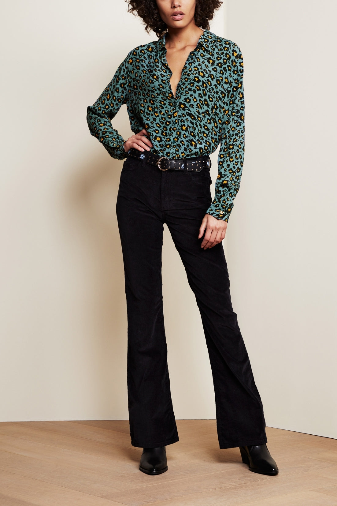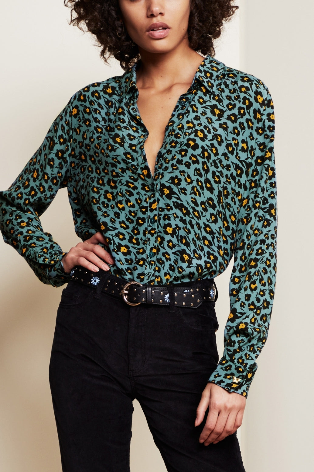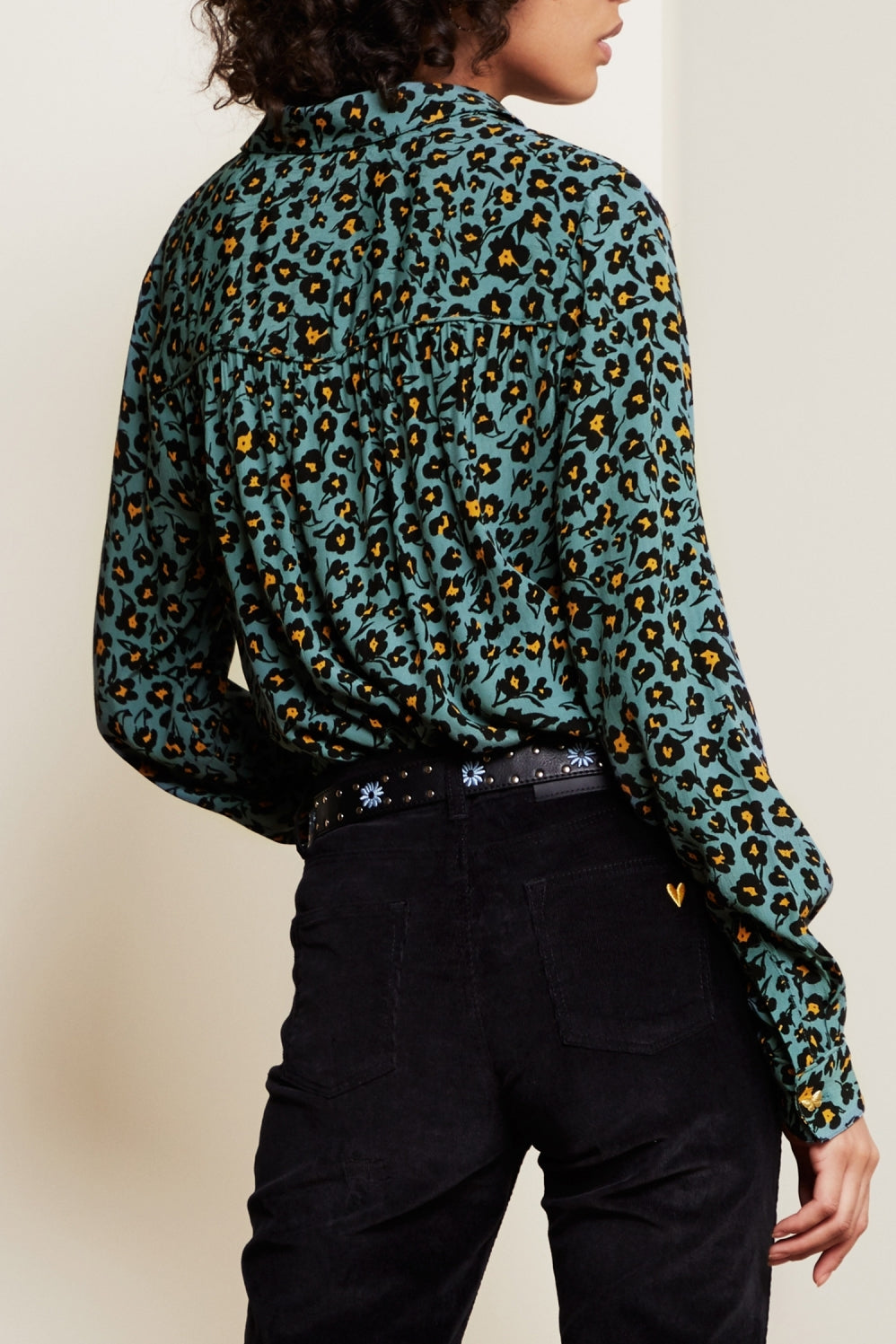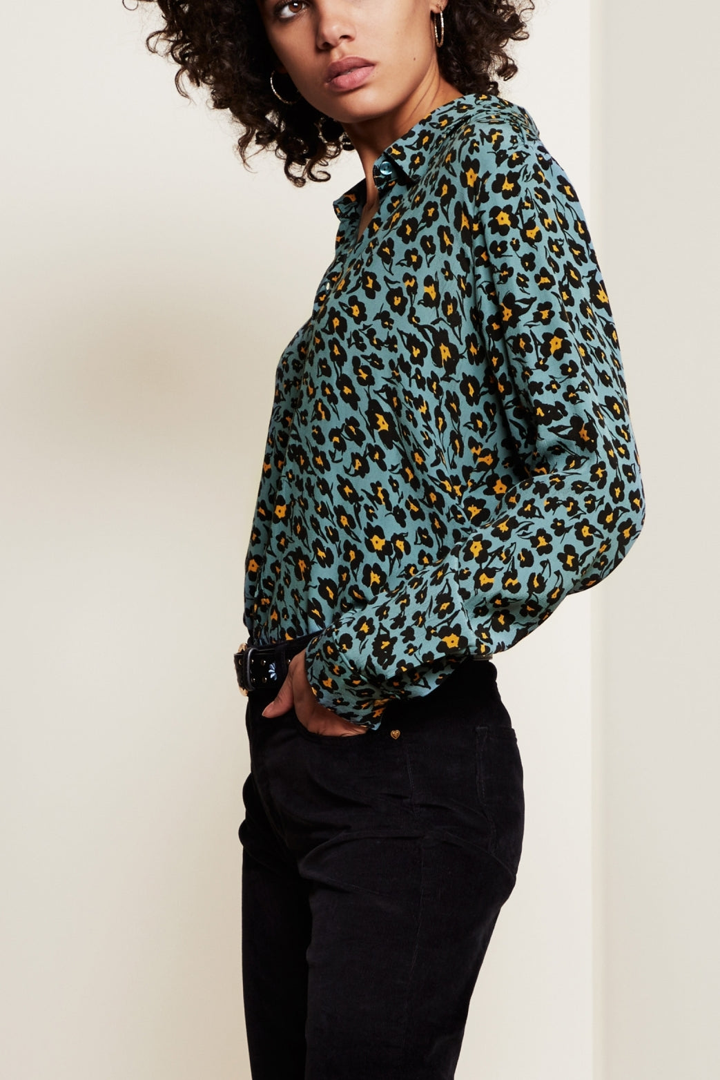 Flowing blouse with classic collar. Fez Blouse has two breast pockets and a gold-coloured button on the cuffs. -
