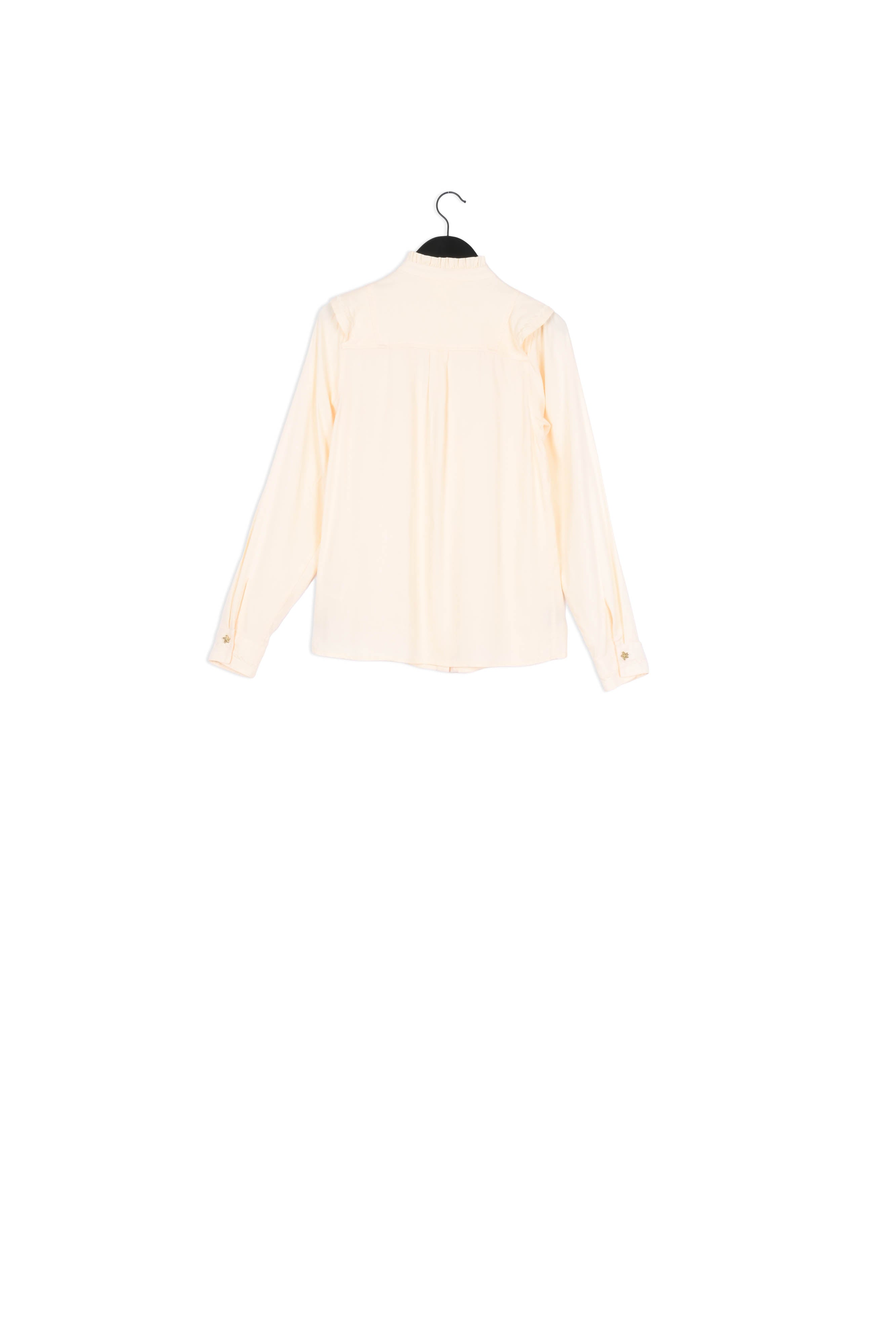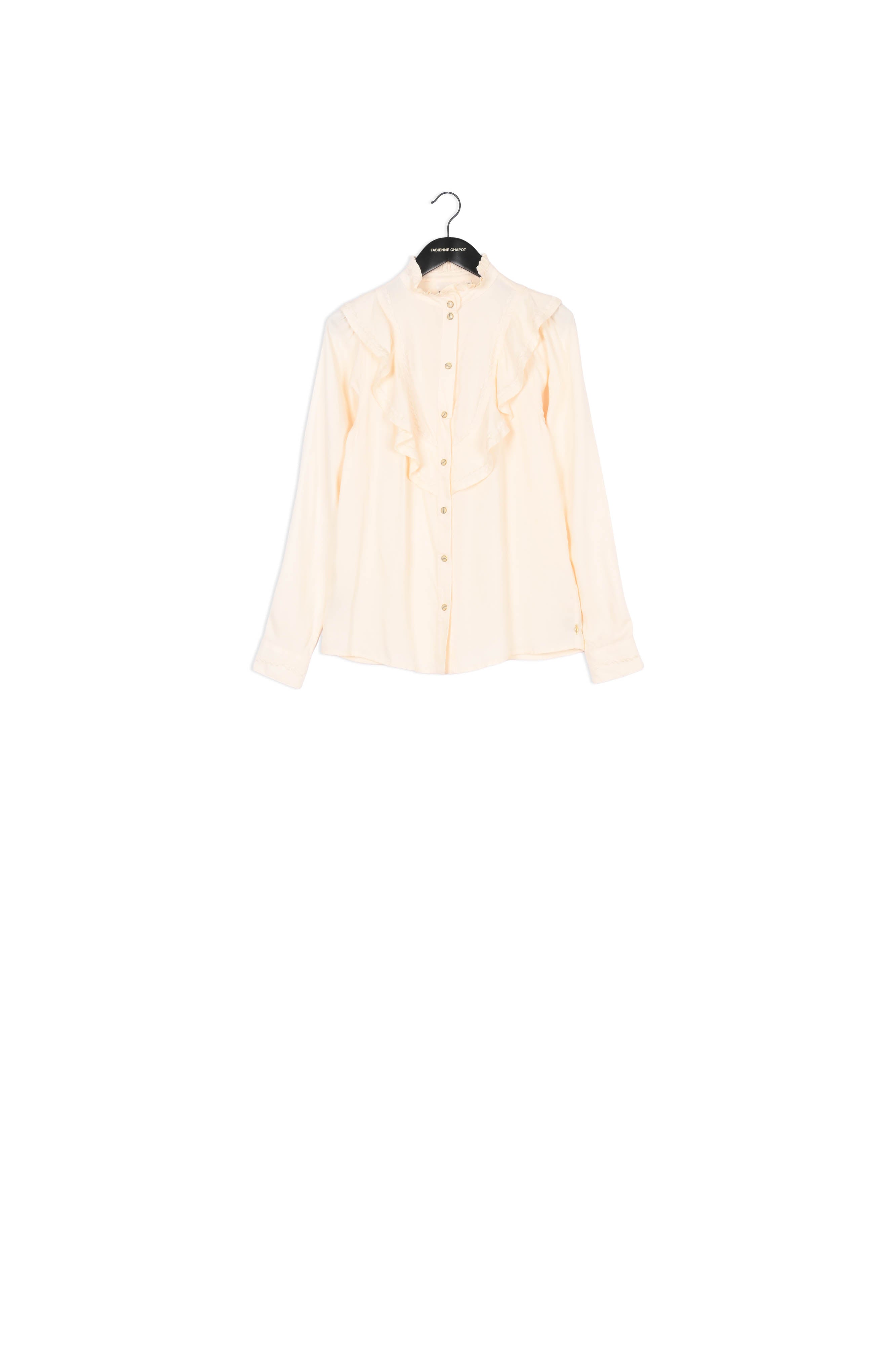 Blouse with special prong snap buttons, ruffle details with embroidered white hearts and gold cufflinks. Twilly Blouse has beautiful ruffle details along the mao collar and is made of 94% viscose which gives the fabric a feeling.