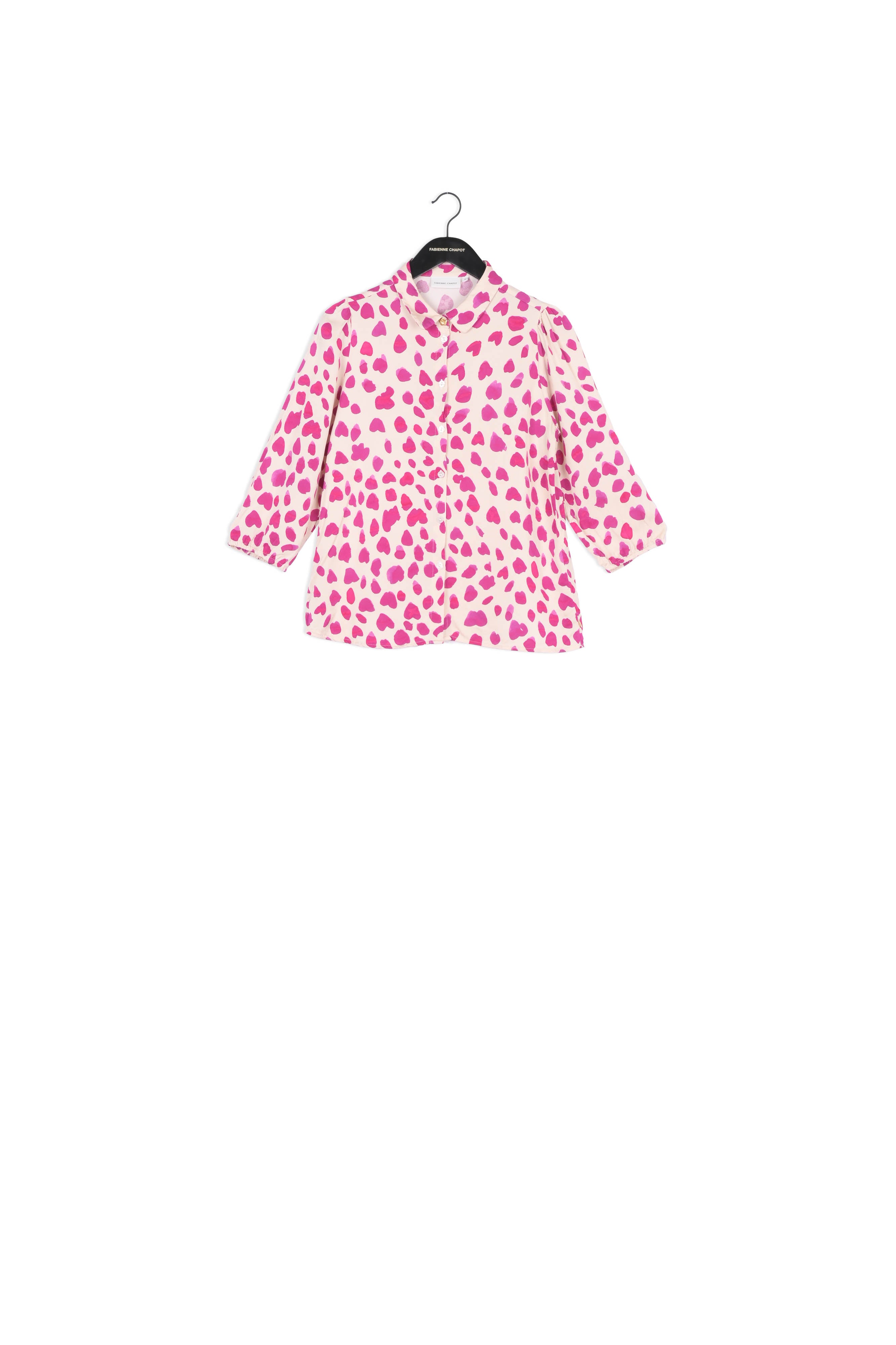Airy blouse with a classic collar and a gold-coloured button on the collar. Gina Blouse has puffed sleeves with an elastic band. -