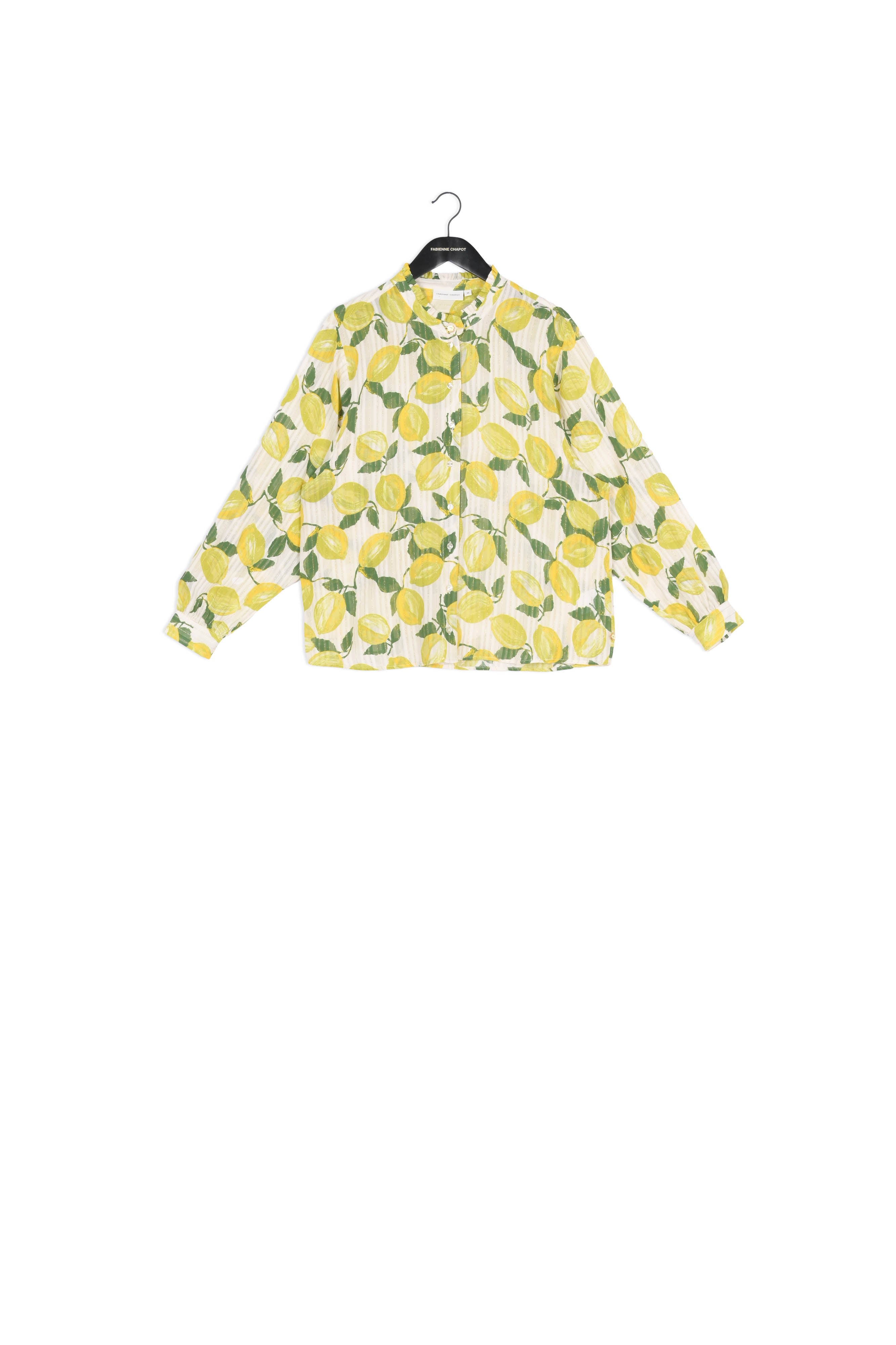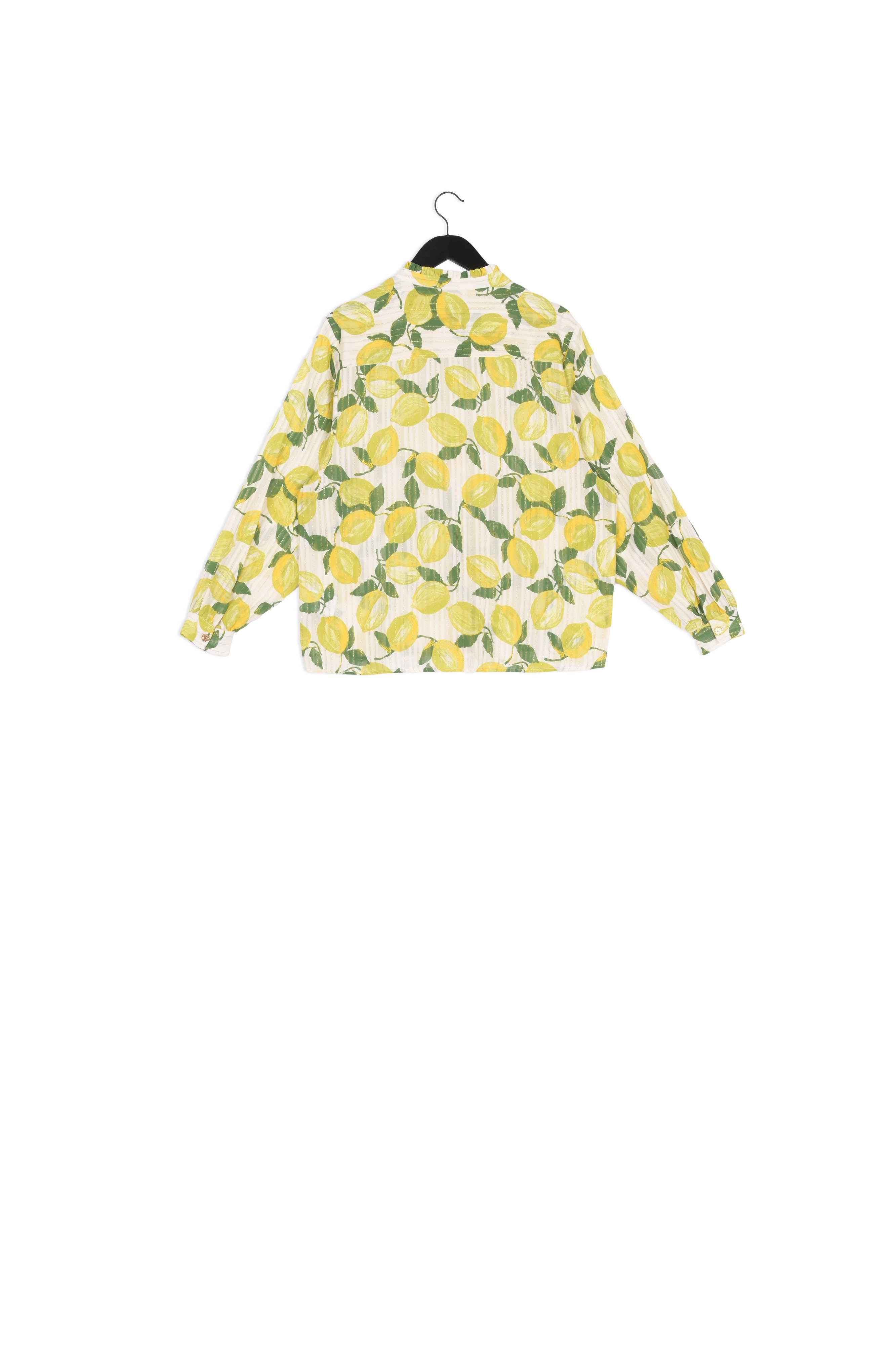 Oversized blouse with button closure and feminine mao collar. Jennifer Blouse has a stripe texture, gold lurex details and large supple sleeves with a gold-coloured button on the cuffs.