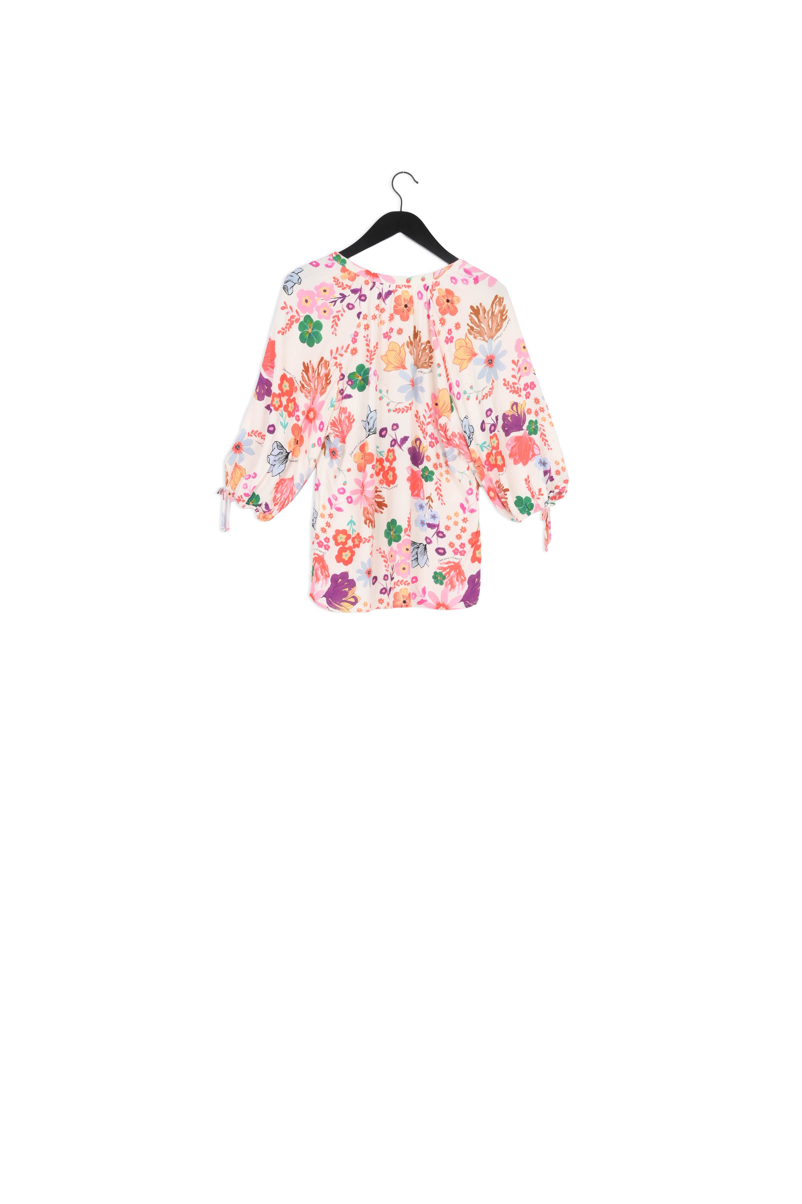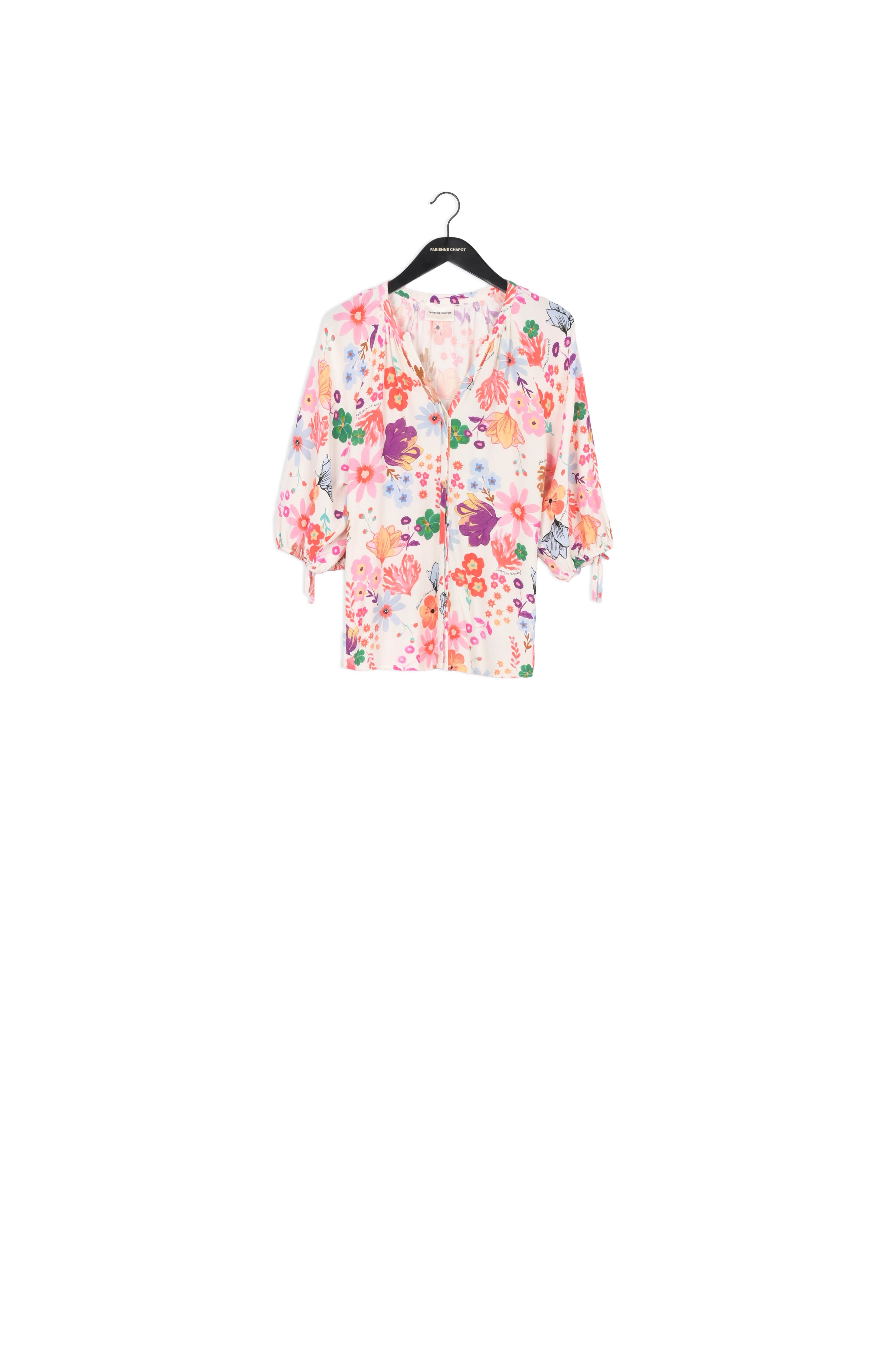 Blouse with three-quarter sleeves, button closure and V-neck. Cooper Blouse has elastic and a bow at the end of the sleeves and pleats on the back. This item is made of 55% Viscose (LENZINGâ„¢ ECOVEROâ„¢). LENZINGâ„¢ and ECOVEROâ„¢ are trademarks of Lenzing AG.