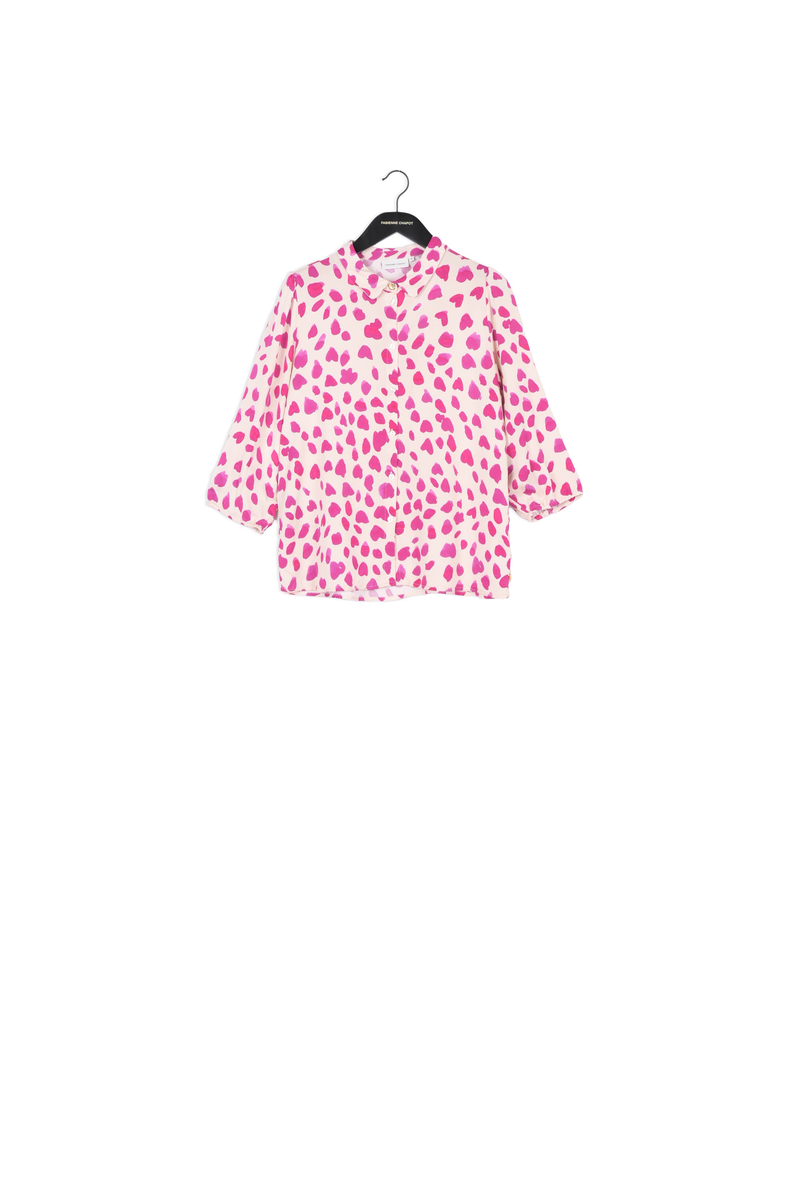 Airy blouse with a classic collar and a gold-coloured button on the collar. Gina Blouse has puffed sleeves with an elastic band. -