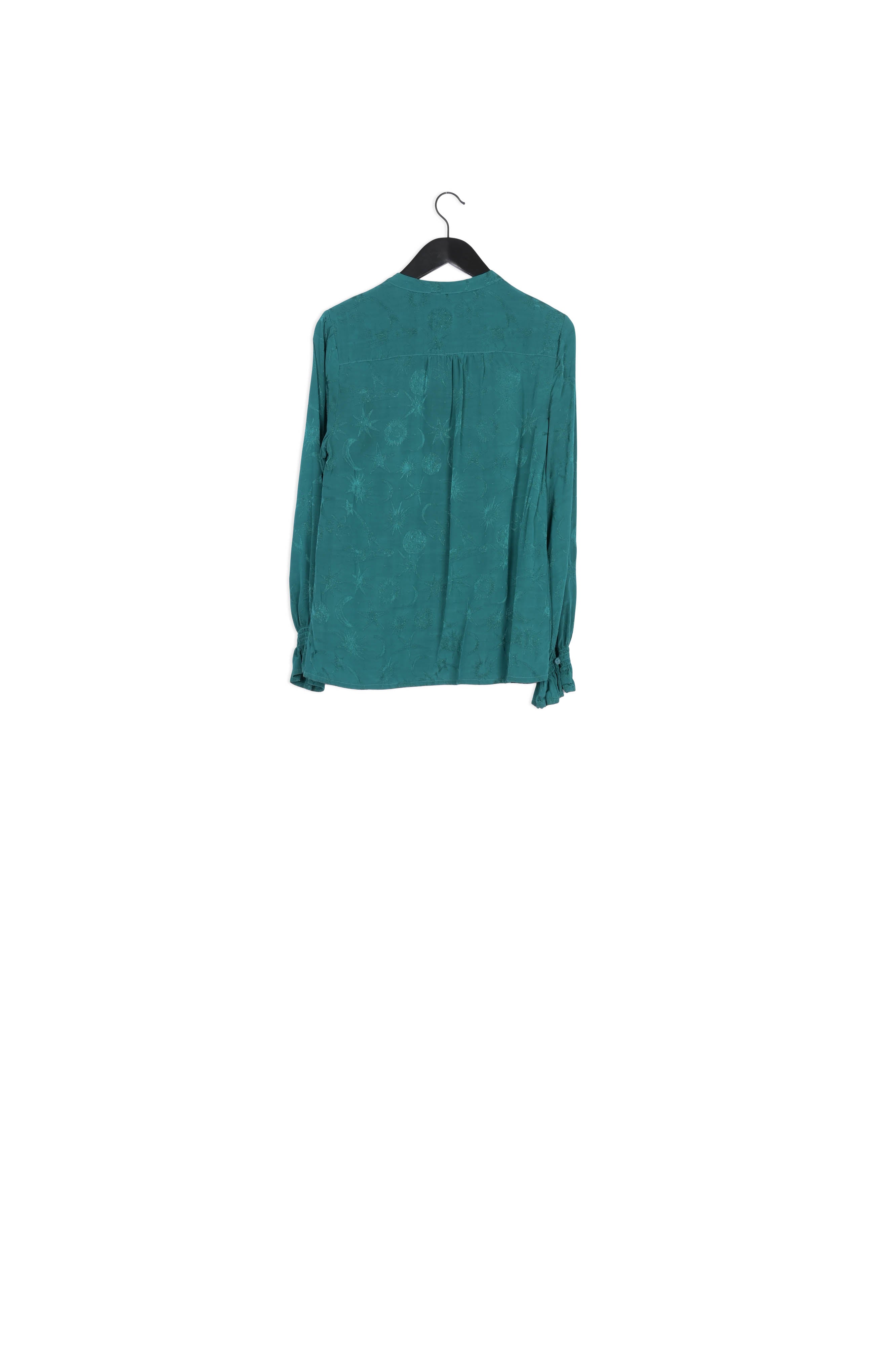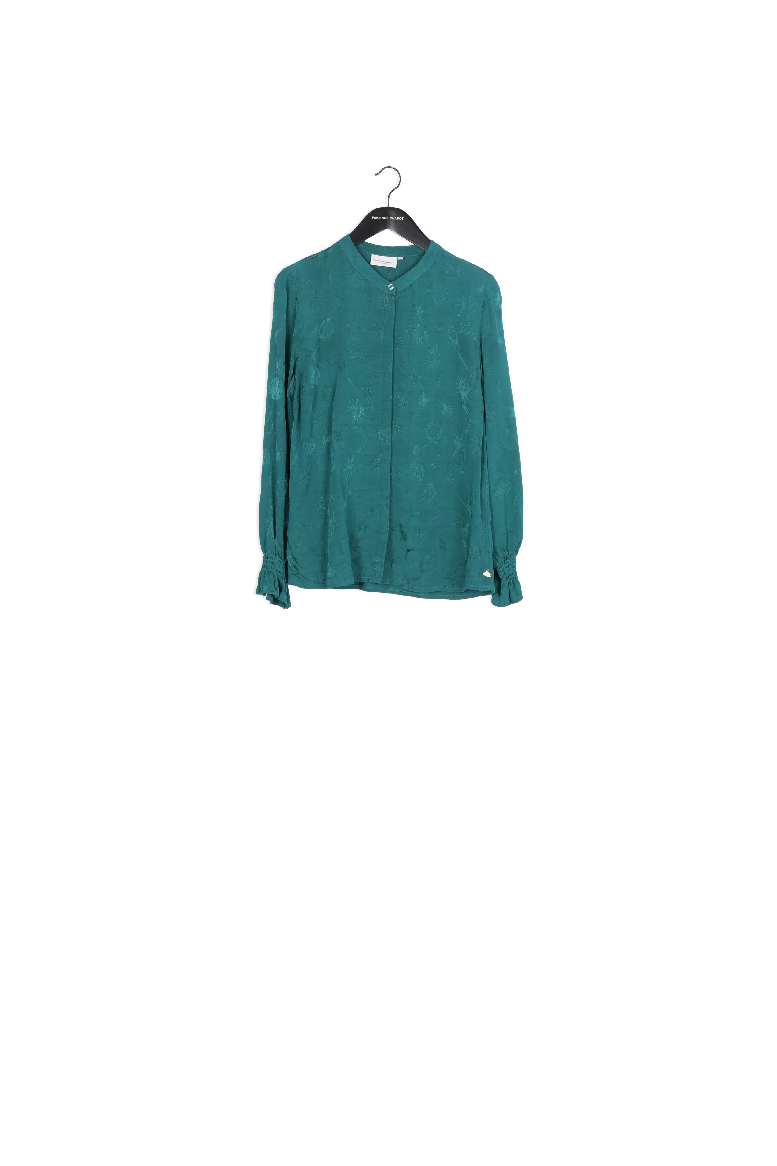 Flowing blouse with a Mao collar, a concealed button fastening and elasticated sleeves. The Studio Jac Blouse has jacquard weaving in the Cosmic print.