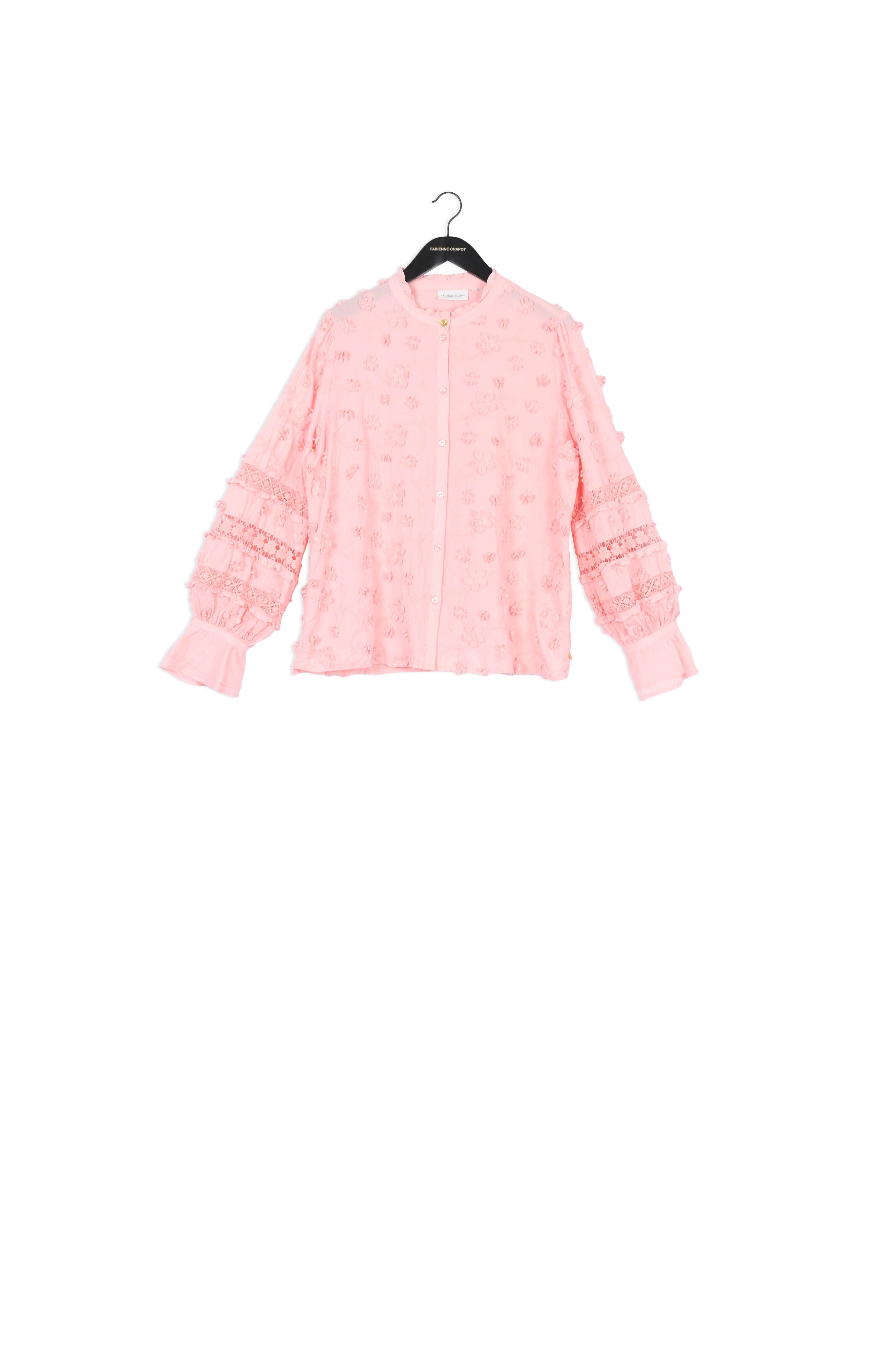 Blouse with button closure and voluminous long sleeves with lace details.Leo Blouse is made of a beautiful fabric. It is a 3D translation of our unique prints in a beautiful embroidery technique, making the flowers seem to grow out of the fabric. This blouse is made of 100% cotton. -