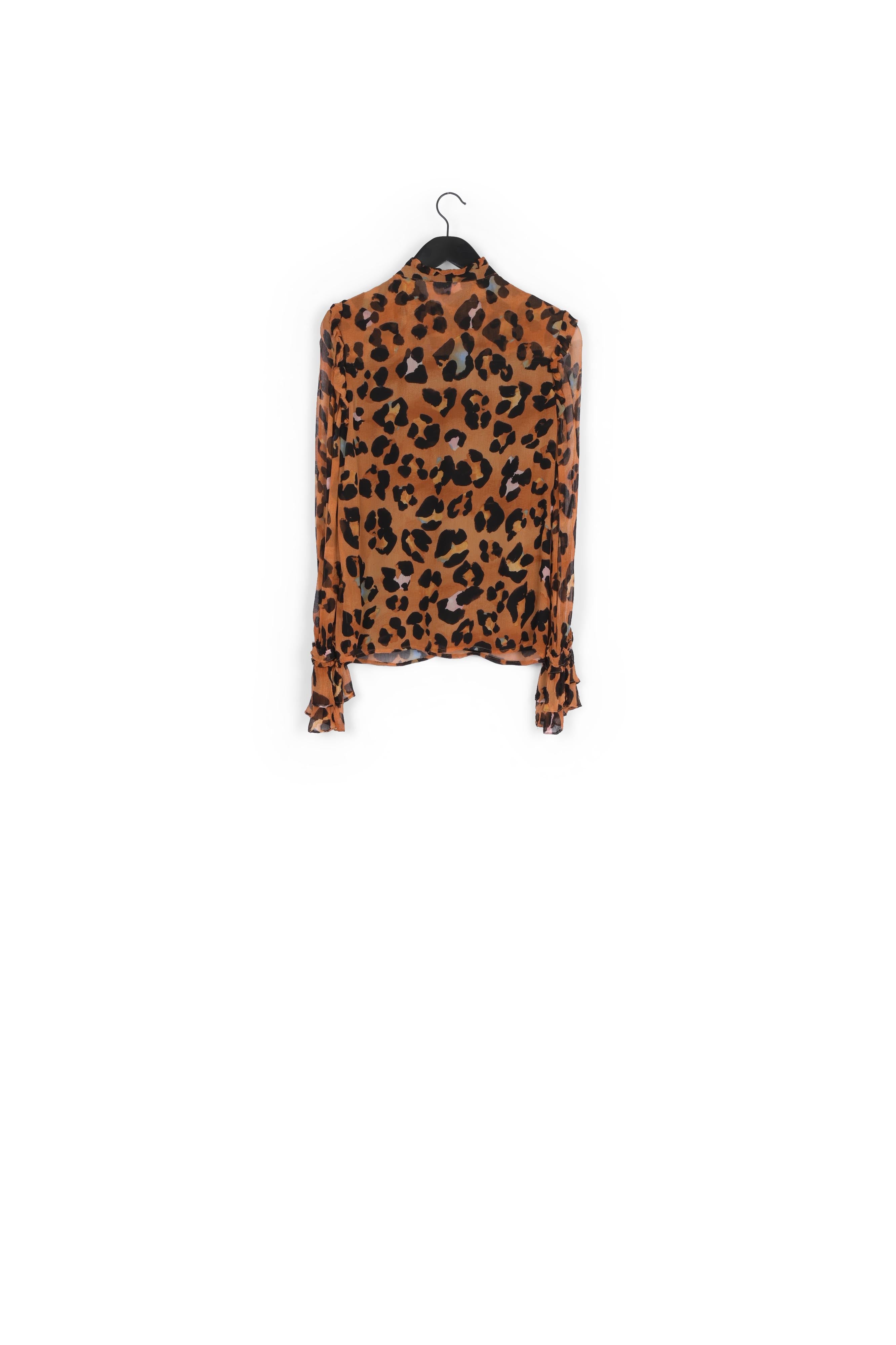 Blouse with mao collar. Carmen Blouse has ruffle details on the slightly see-through sleeves.