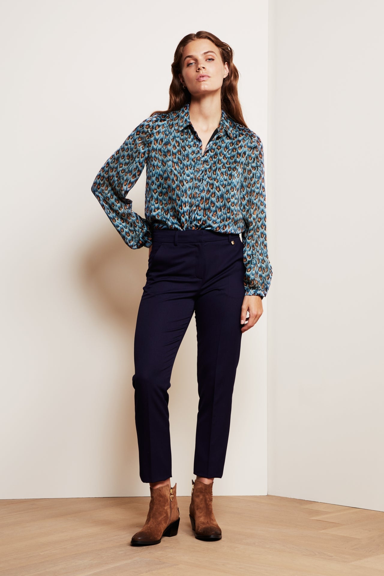 Fitted trousers with stretch, button and zip fastening and a small side split. Hugo Trousers has slit pockets on the front, welt pockets on the back and belt loops.
