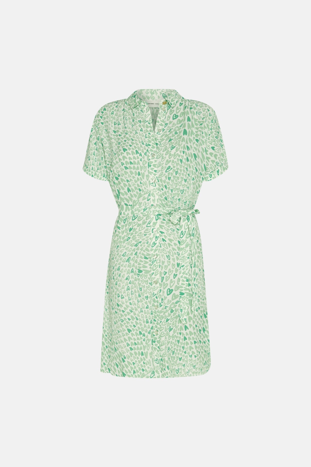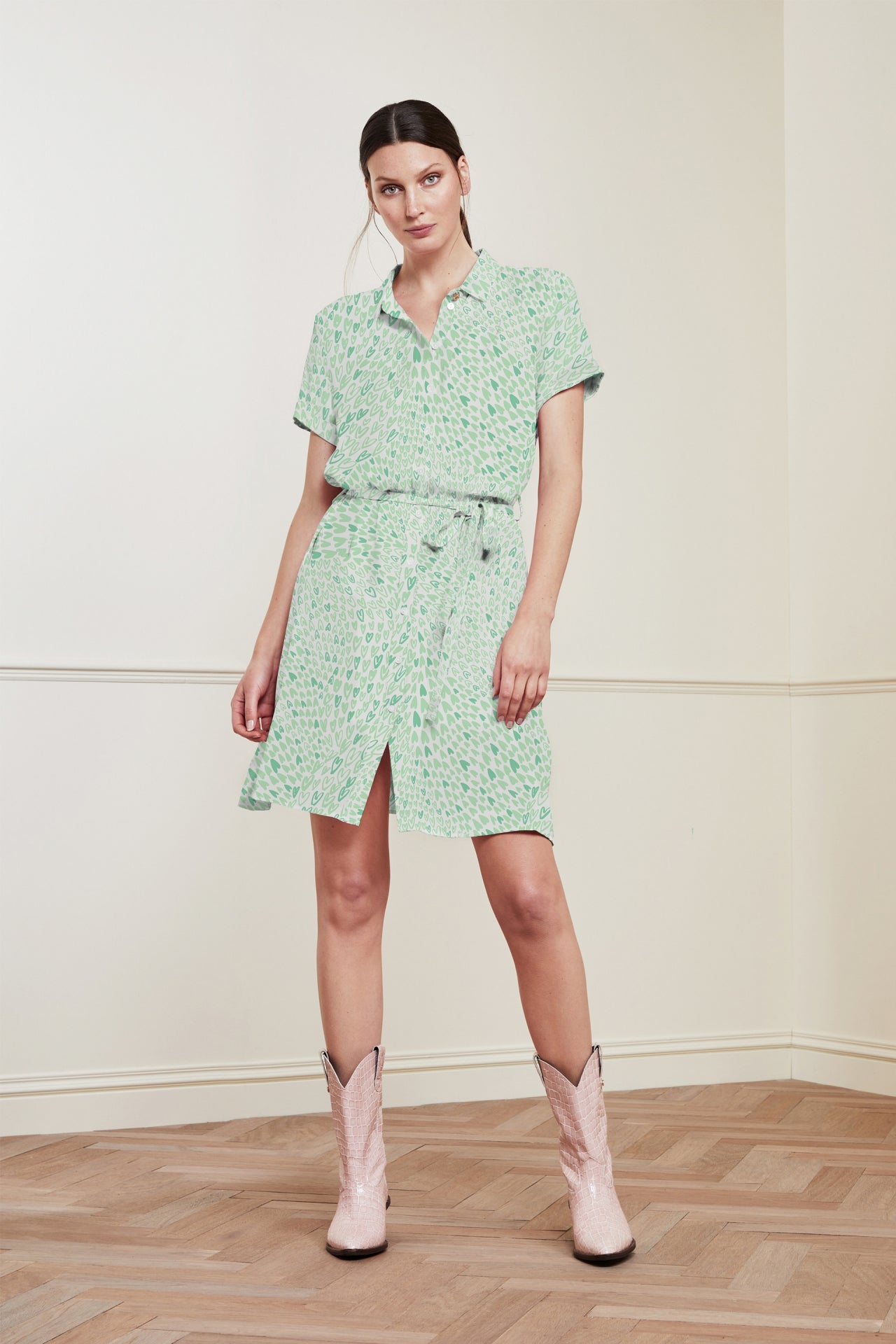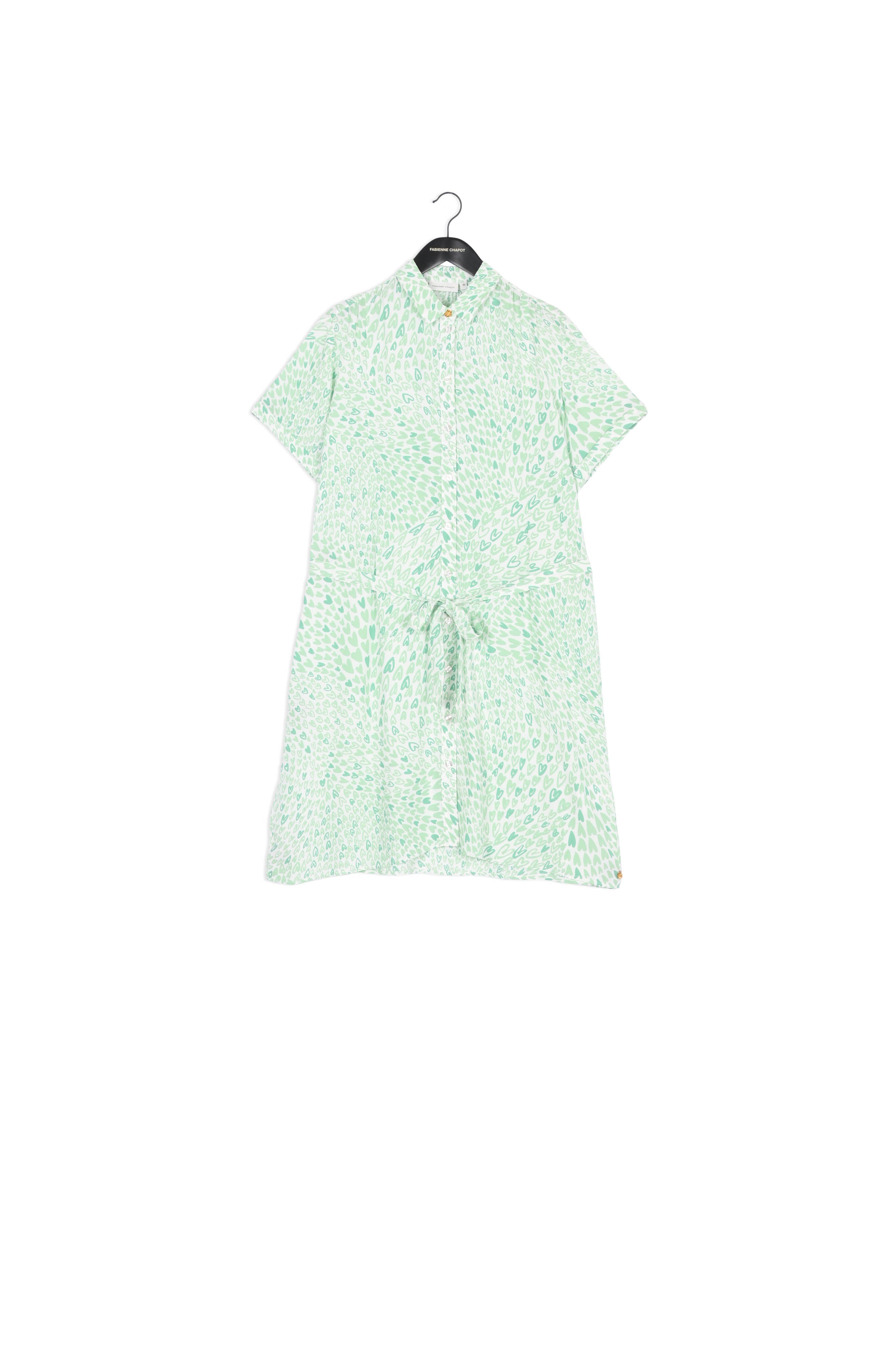 Oversized dress with tie belt, full length button closure and short turn-up sleeves. Boyfriend Dress has a gold coloured button on the neck trim. This item is made of 100% Lenzing™ EcoVero™ Viscose: breezy, supple and conscious. -
