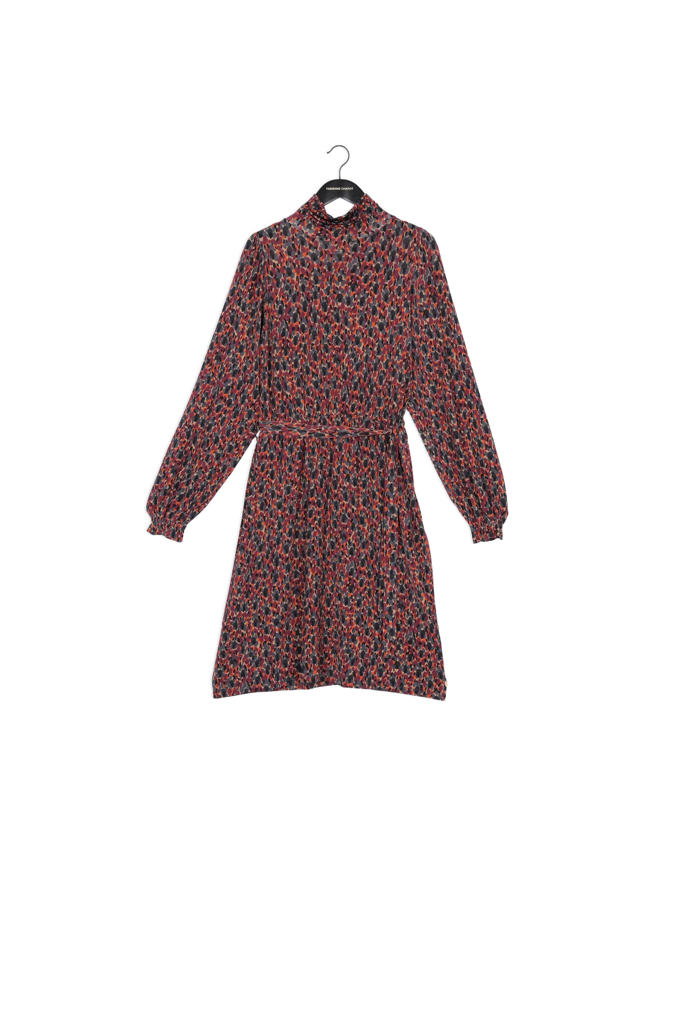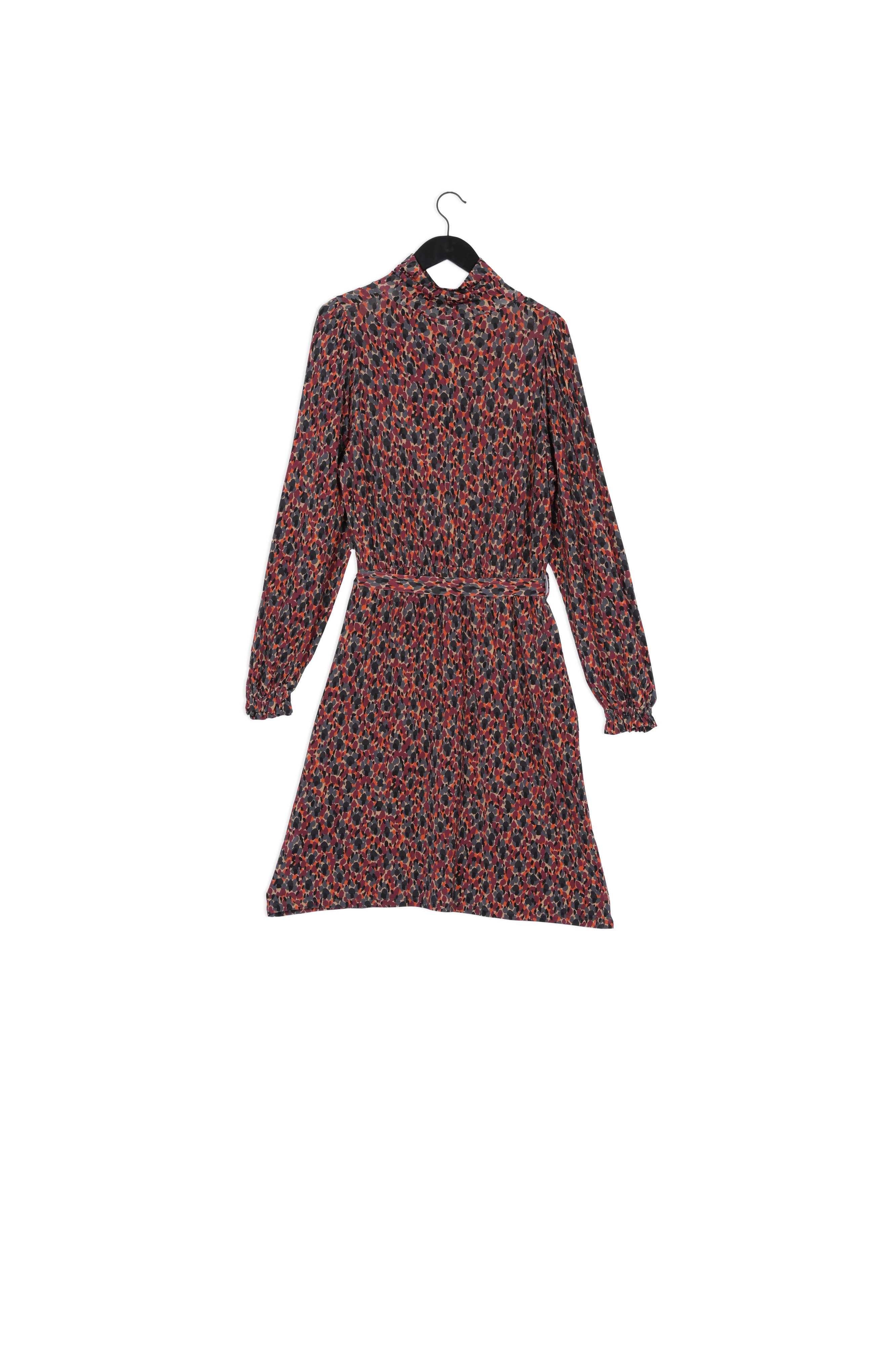 Short dress with turtleneck and a tie belt. Billy Dress has long puffed sleeves with elastic at the cuffs and an elastic band at the waist. -