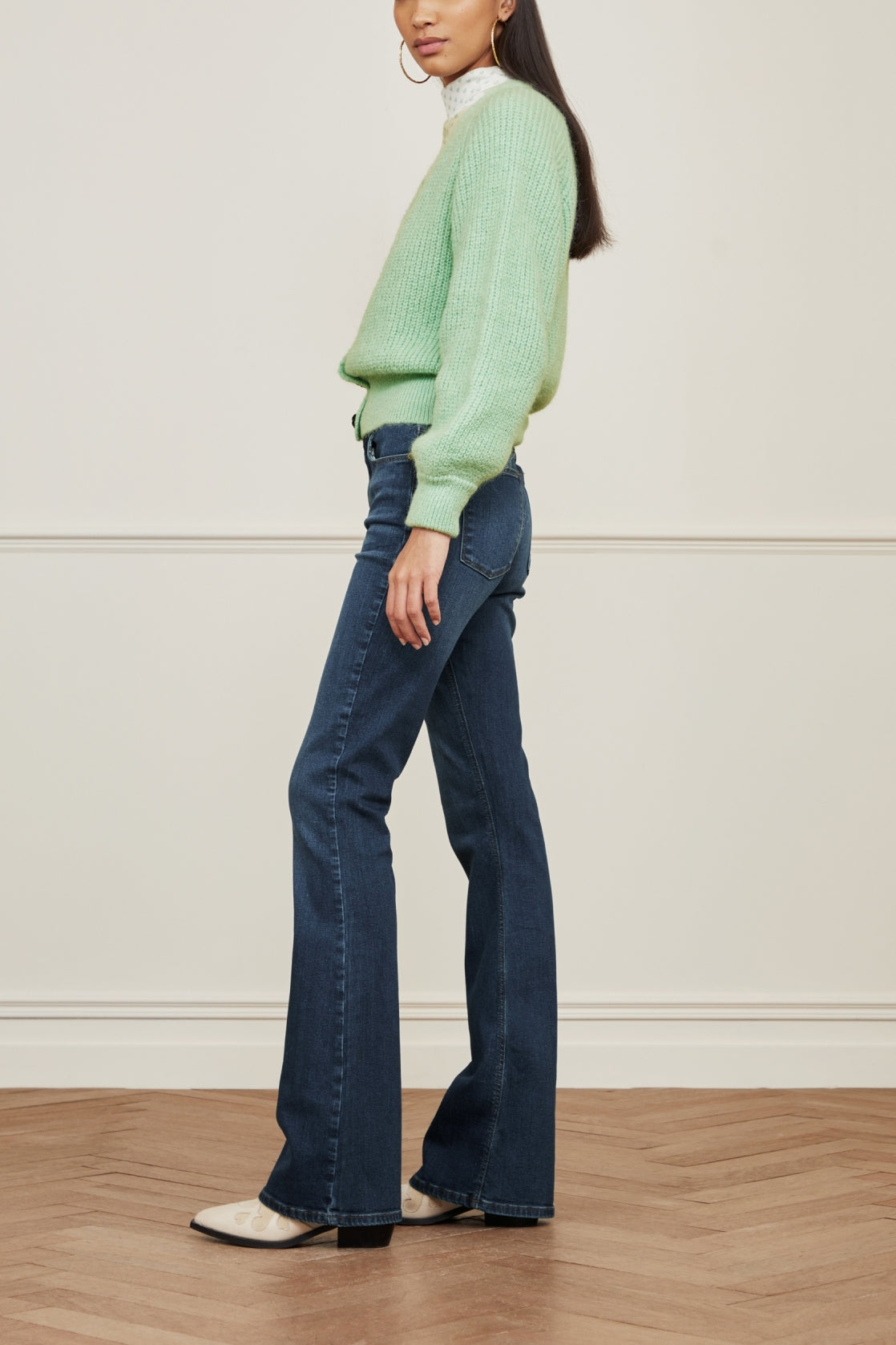 Mid-rise pants with the ultimate fit! Eva Flare Jeans has a medium waist, extra flared legs and an embroidered heart on the back pocket. -