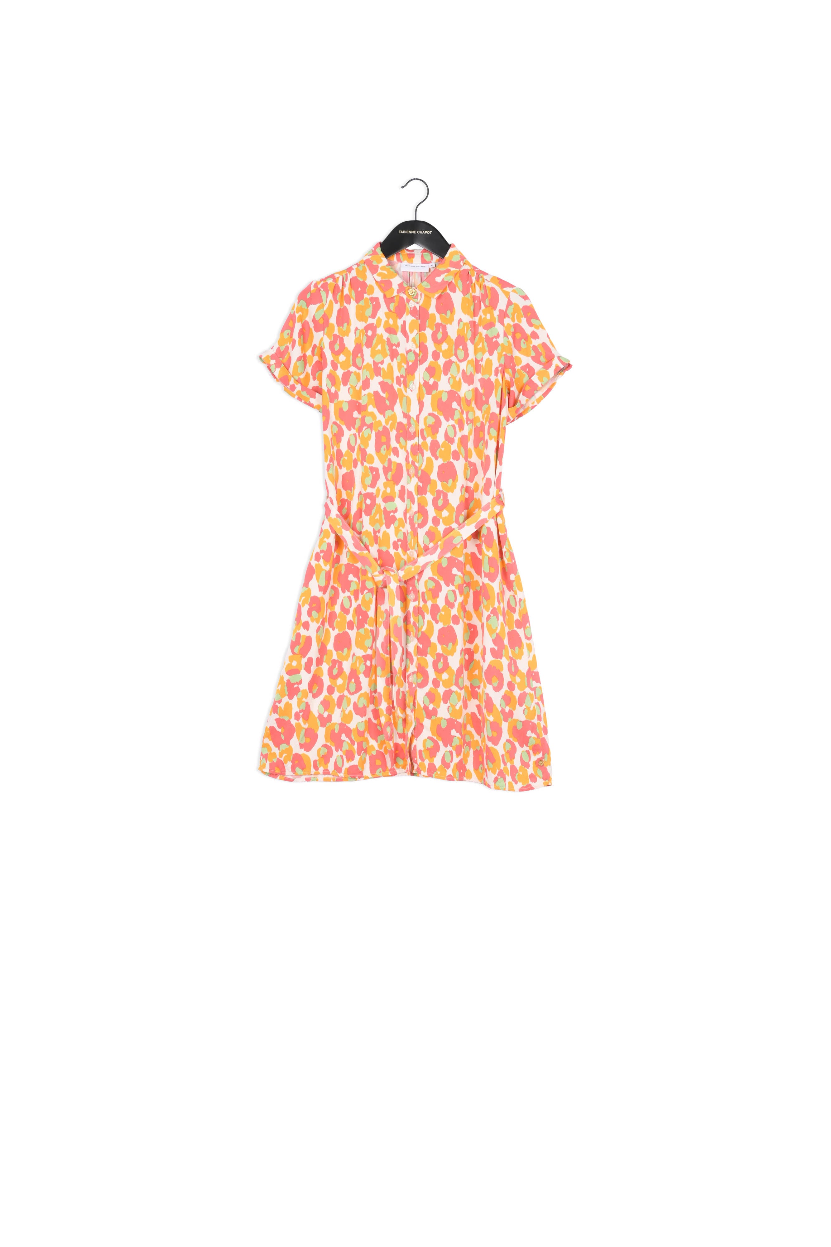 Oversized dress with tie belt, full length button closure and short turn-up sleeves. Boyfriend Dress has a gold coloured button on the neck trim. -