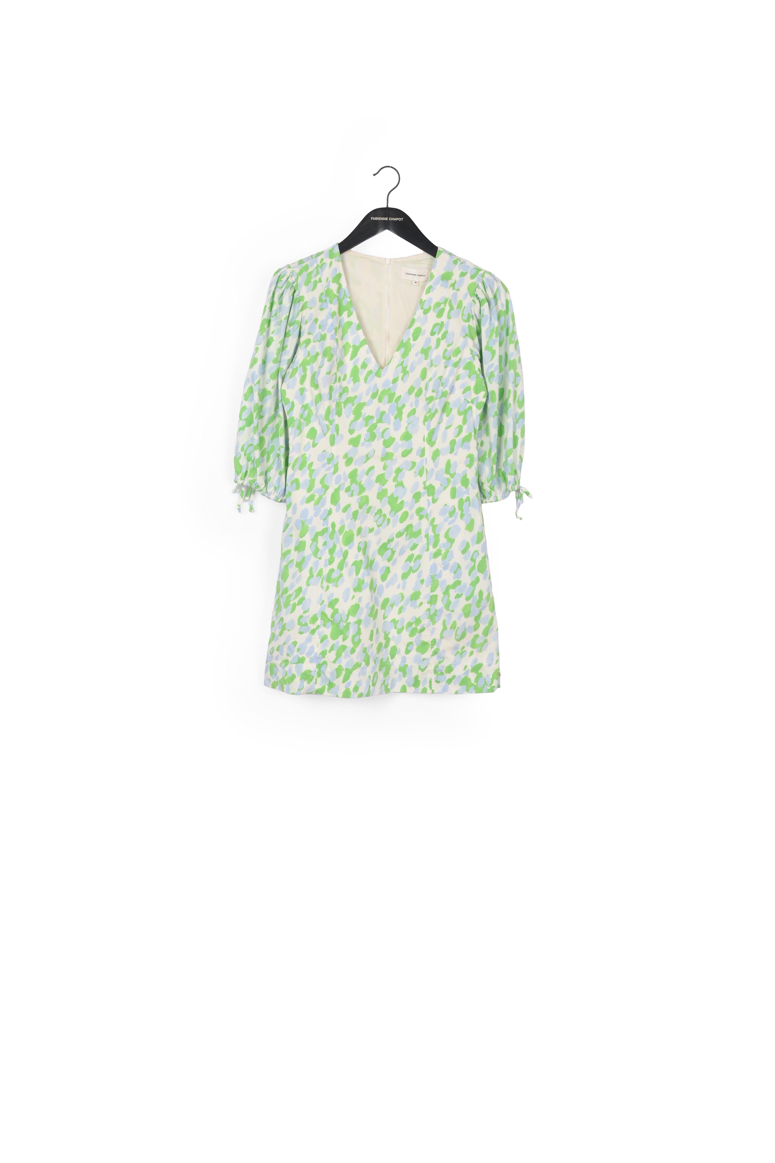 Short V-neck dress with voluminous three-quarter sleeves. Iris Dress features a back zipper closure and an all over Sugar Storm print. -
