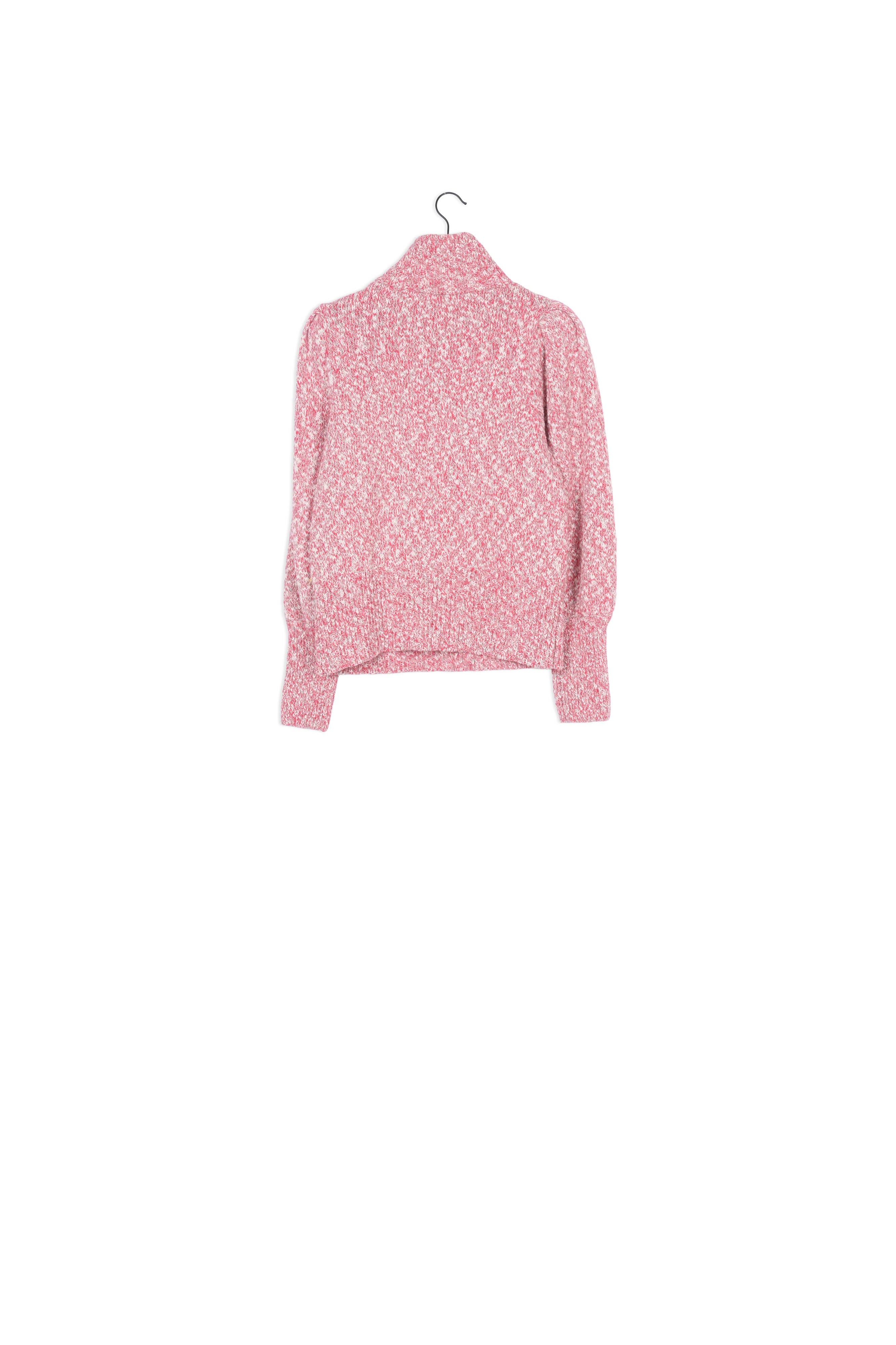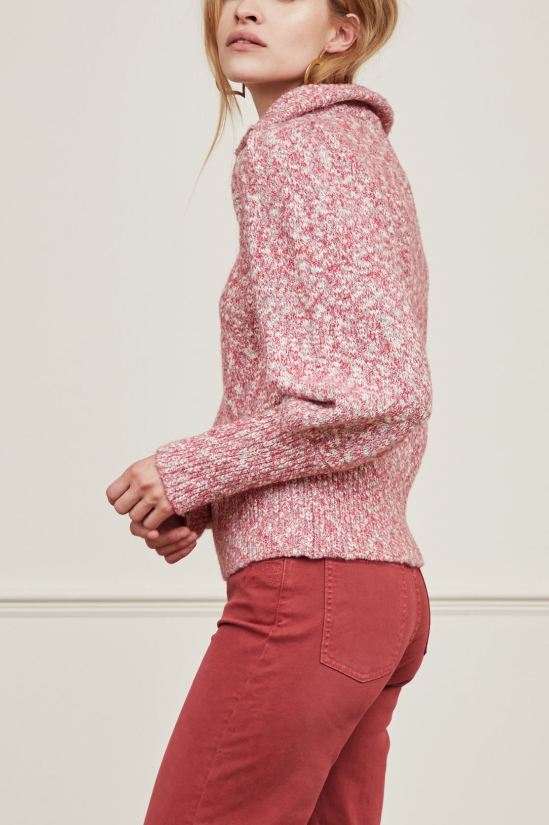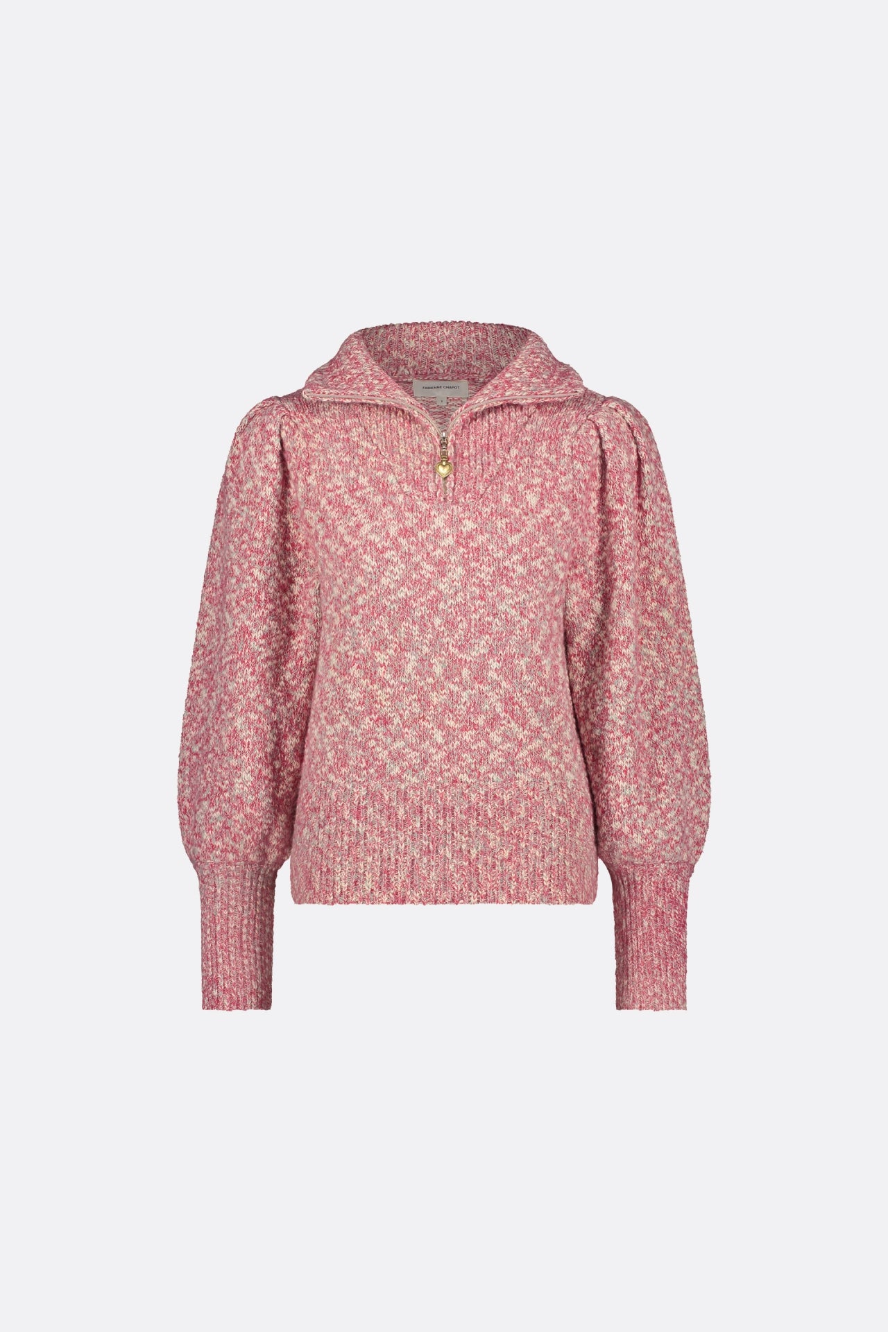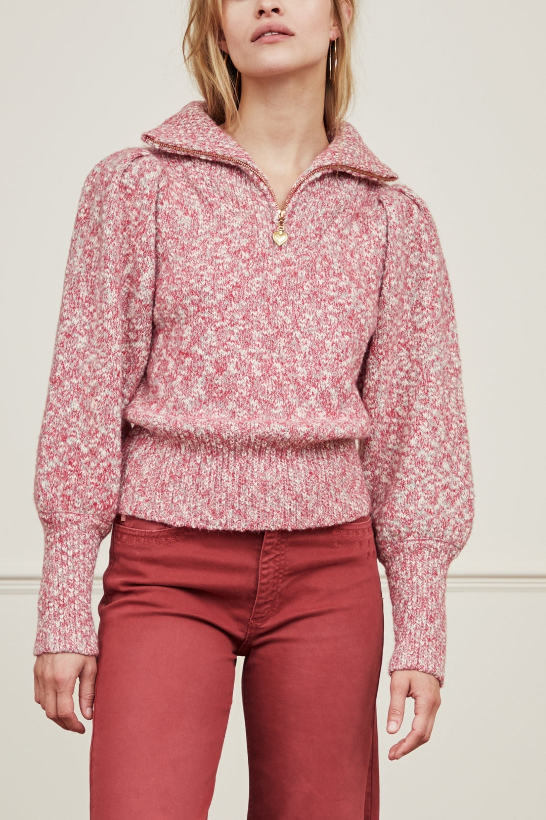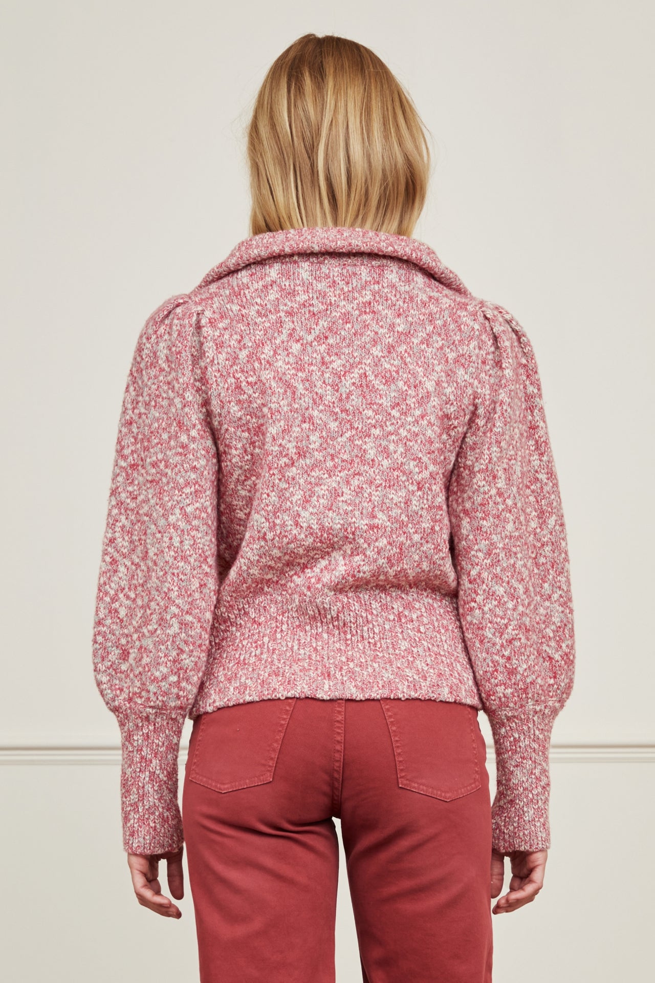 Chunky knit, melange pullover with balloon sleeves and long cuffs. Eddie Pullover has a zip closure at the neck and is perfect for layering with a pretty blouse. -