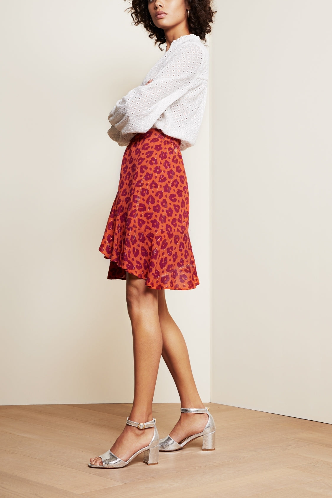 Short lined wrap dress with zip on the side. Lulu Skirt has a gold lurex thread woven through the fabric. -
