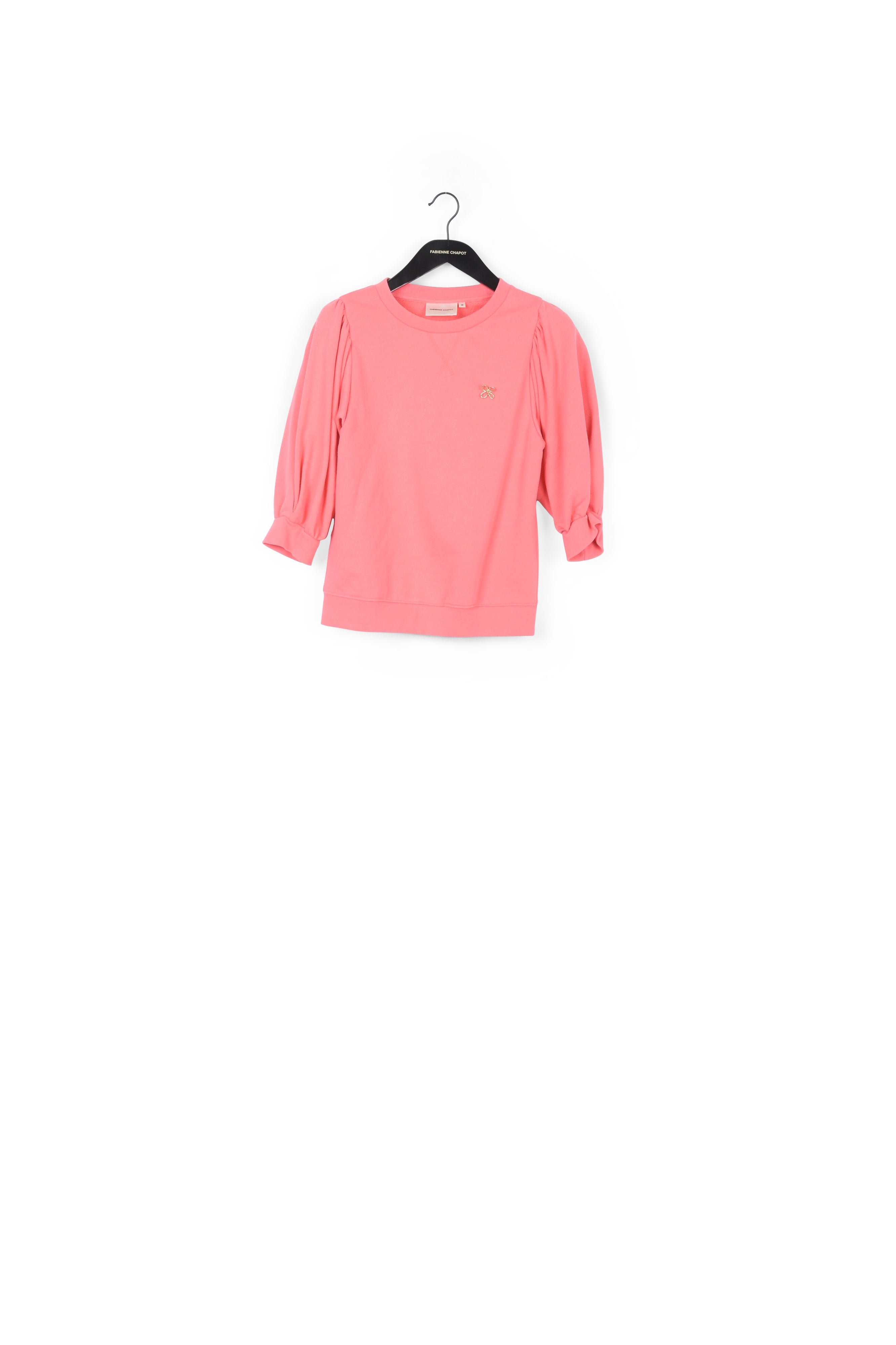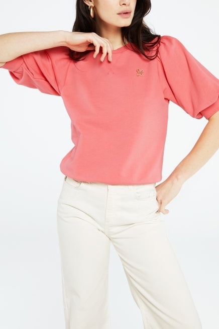 Pullover with round neckline and short puff sleeves. Jana Sweater Short Sleeve has a gold-tone detachable brooch on the left chest. -