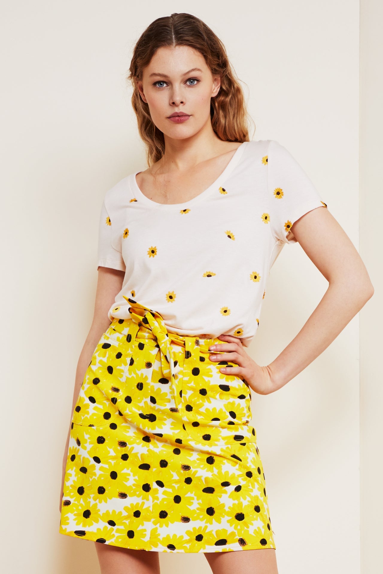 Cotton T-shirt with a round neck, short sleeves and an embroidered print.