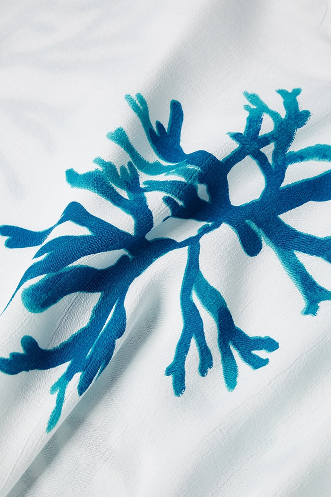 Loose-fitting top with V-neck and short turn-up sleeves.